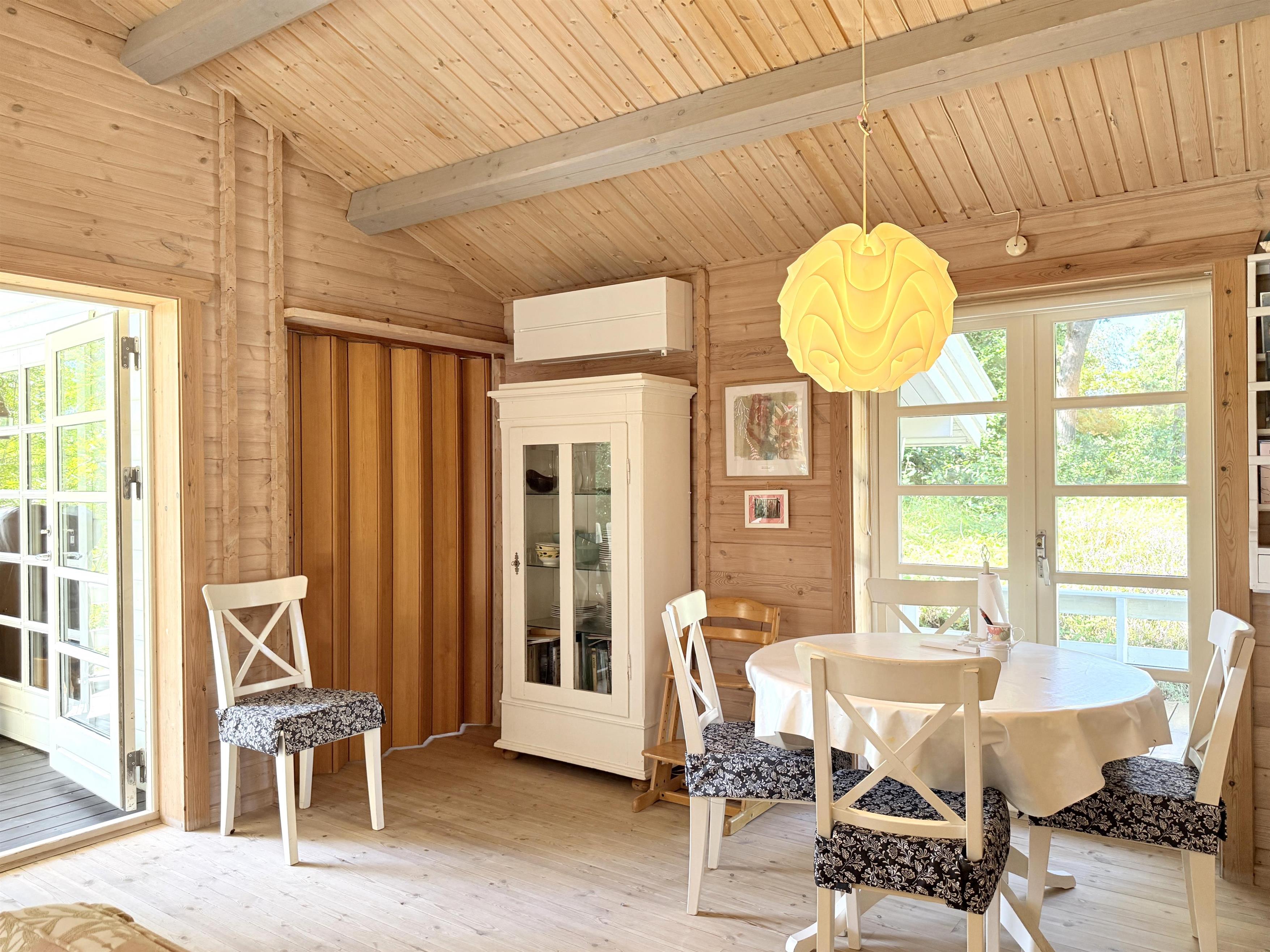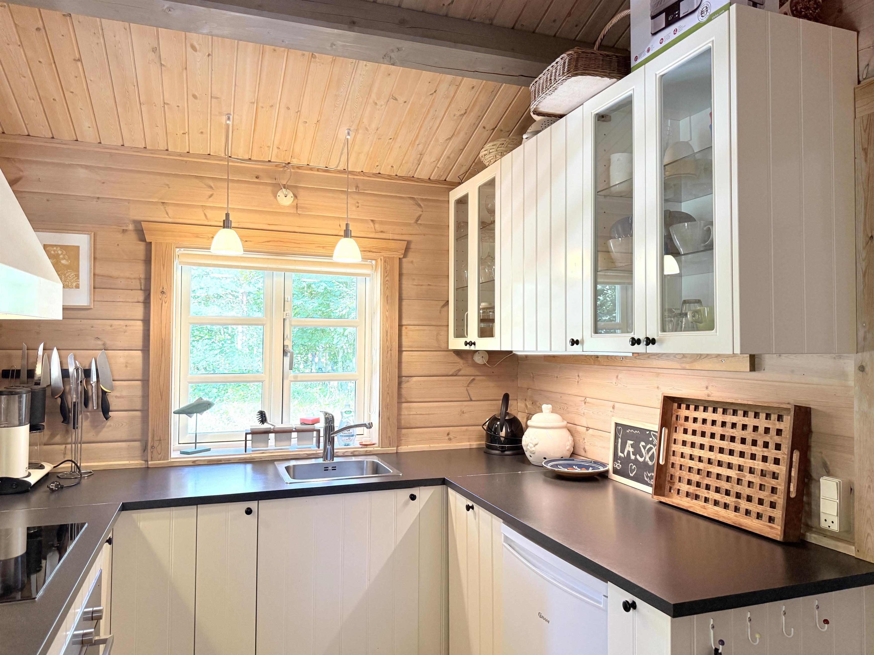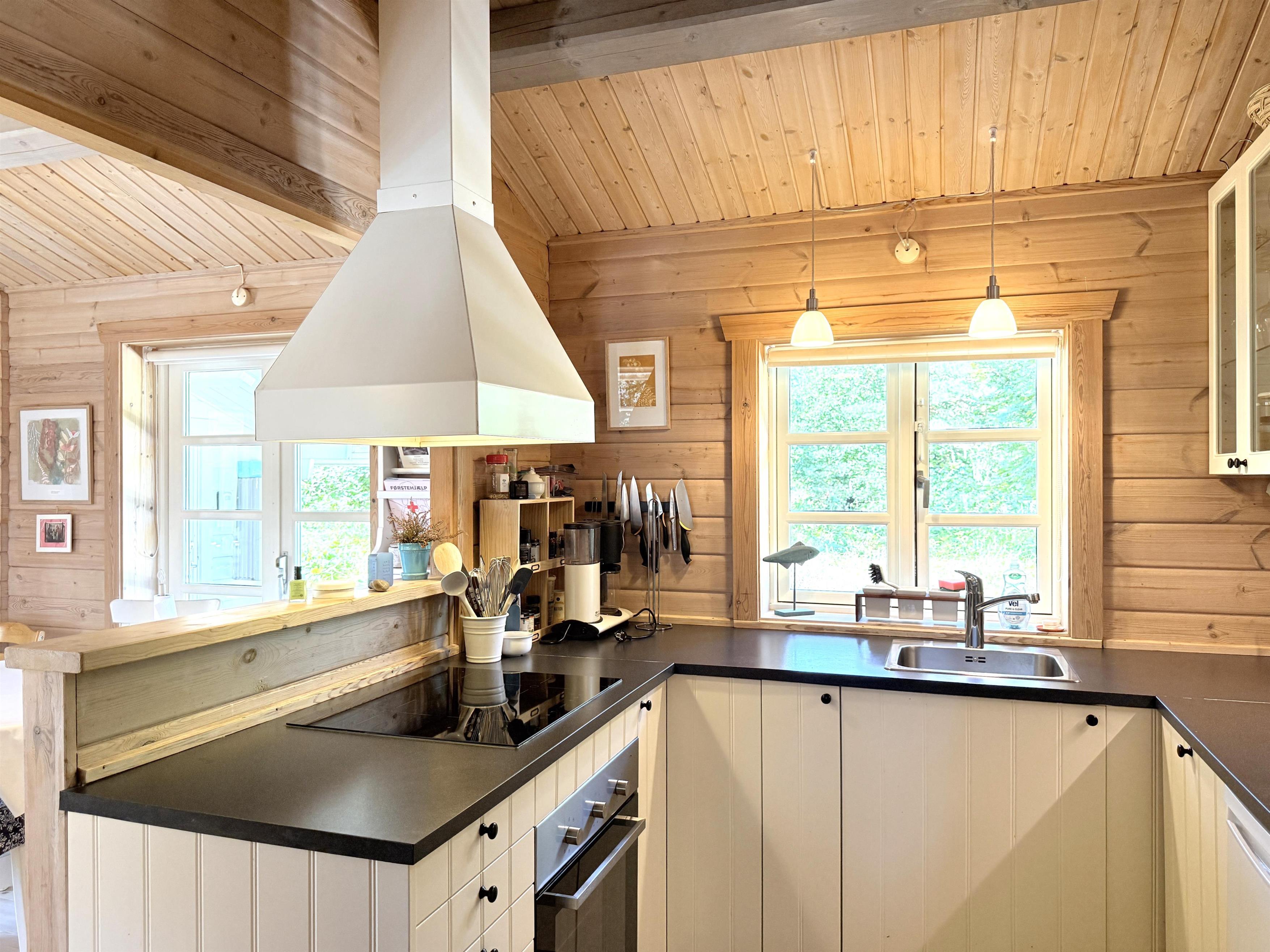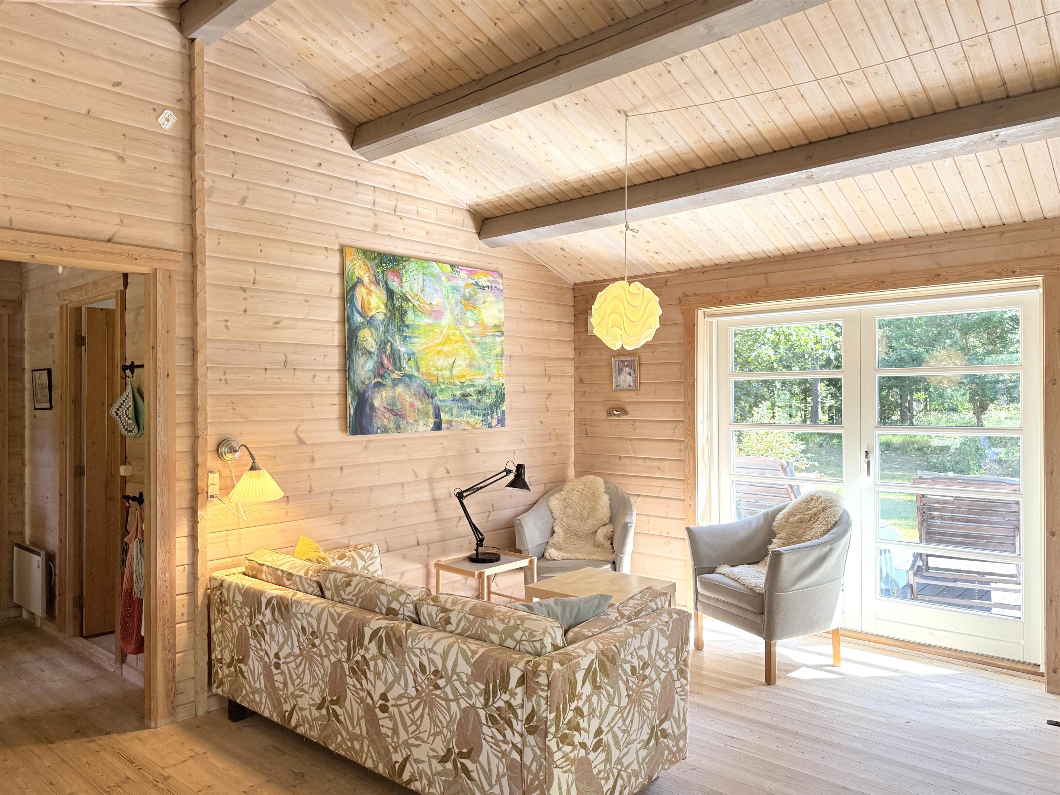 Rigtigt skønt feriehus beliggende på stor uforstyrret naturgrund blot 350 meter fra Læsøs nok bedste badestrand, Kongestranden. Selve huset har et dejligt, lyst køkken- alrum med sofaafdeling og spiseplads. Fra stuen er der udgang til fin, stor træterrasse med solsenge og en overdækket terrassedel med havemøbler og grill, der skaber rammerne for mange hyggelige sommeraftener. Huset har desuden et moderne badeværelse med brus og tre komfortable soveværelser med fin skabsplads. To soveværelser har dobbeltsenge og et værelse har to enkeltsenge. Der er udgang fra et af soveværelserne til træterrassen. Ved husets indgang er der ligeledes træterrasse med morgensol, og der er også udgang til terrassen fra stuen. Den store grund ligger naturskønt og er omkranset af træer, og med beliggenheden i det rolige område ved Kongestranden fornemmes den ægte sommerhusstemning, hvor man samtidigt mærker den særlige Læsø-ro.