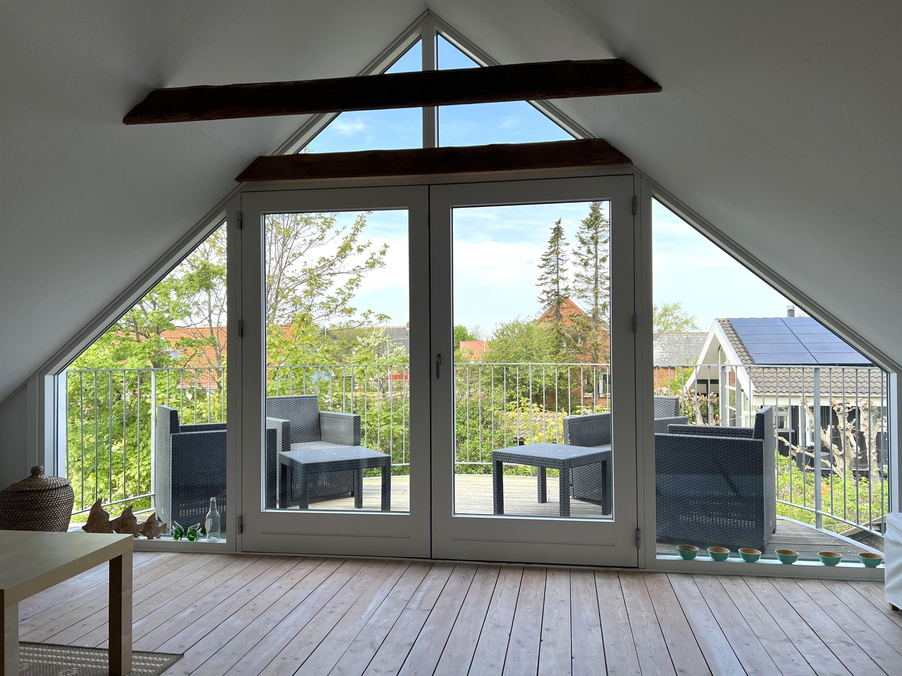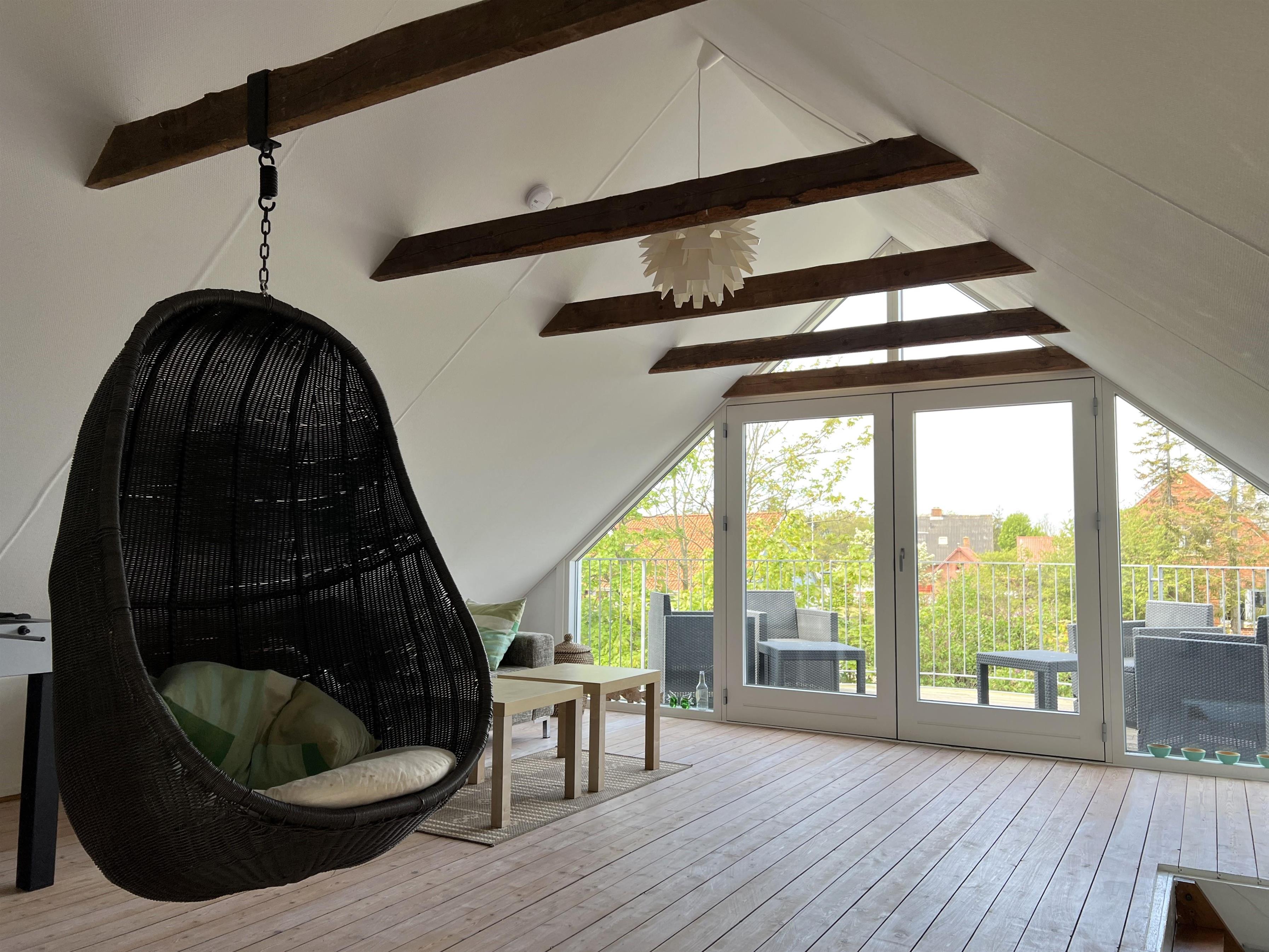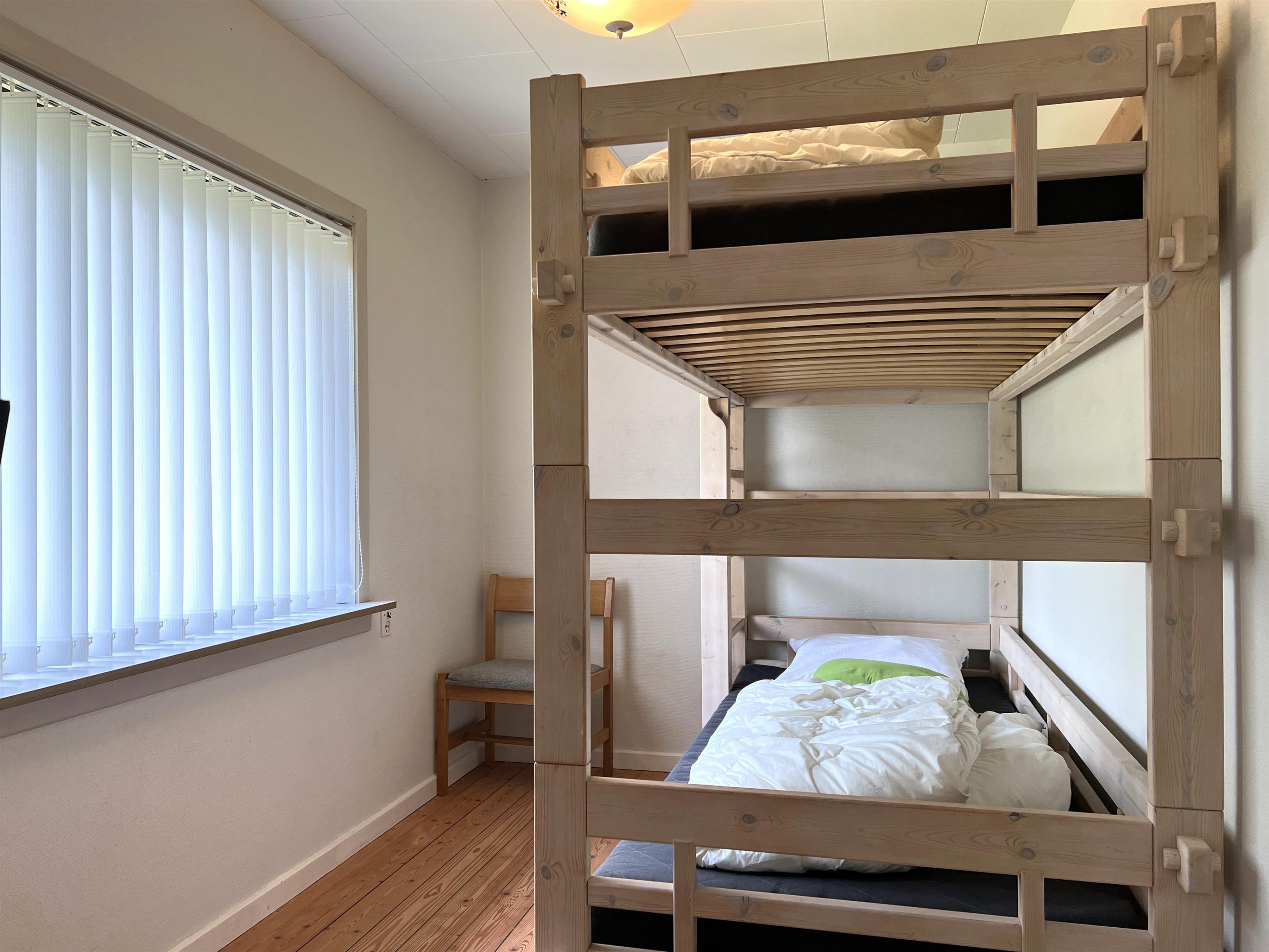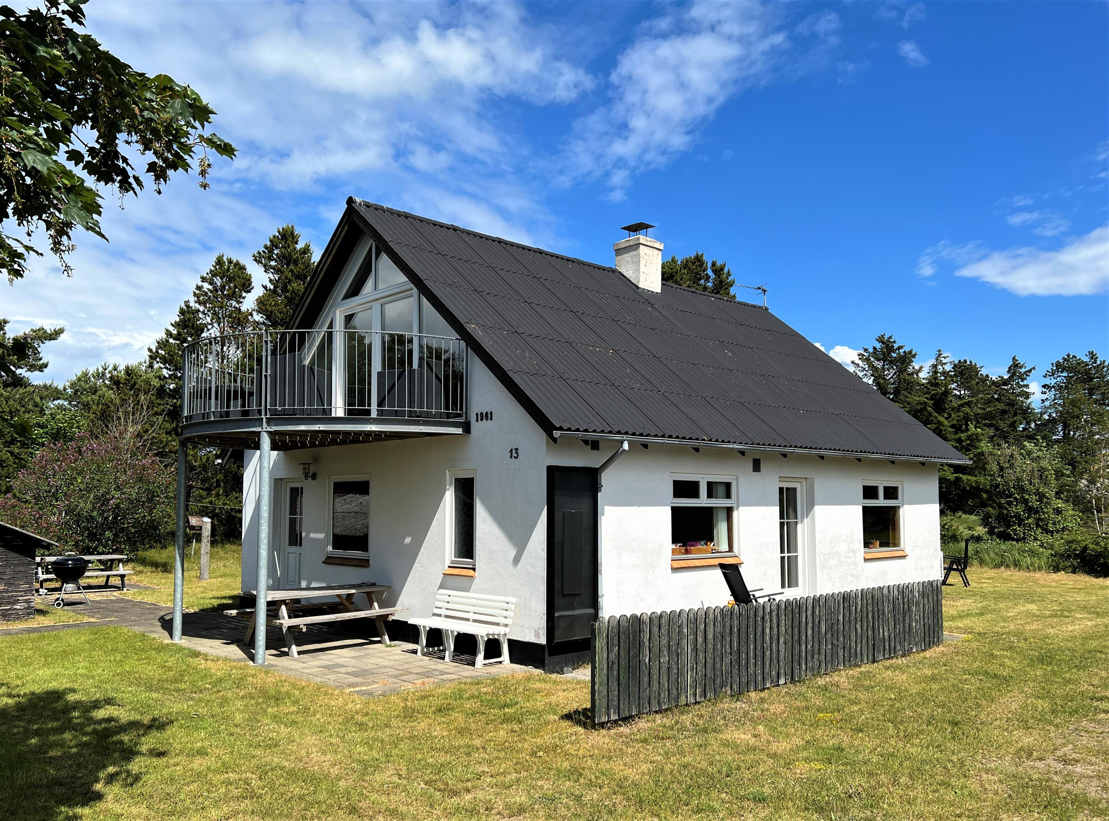 Selve huset har masser af plads til både store og små. Fint, lyst køkken med spiseplads og i forlængelse heraf stue med brændeovn. To soverum, et med dobbeltseng og et med køjeseng. Badeværelse med brus og stort brygger med trappe til 1.sal. På 1. sal er der en hyggelig lille sovekrog med dobbeltseng, og rummet fremstår indbydende med åbent til kip og masser af lys. Det store aktivitetsrum har bordfodbold og masser af lejetøj og behagelige møbler. Stor balkon med havemøbler. To terrasser på hver sin side af huset giver mulighed for at nyde solen hele dagen.