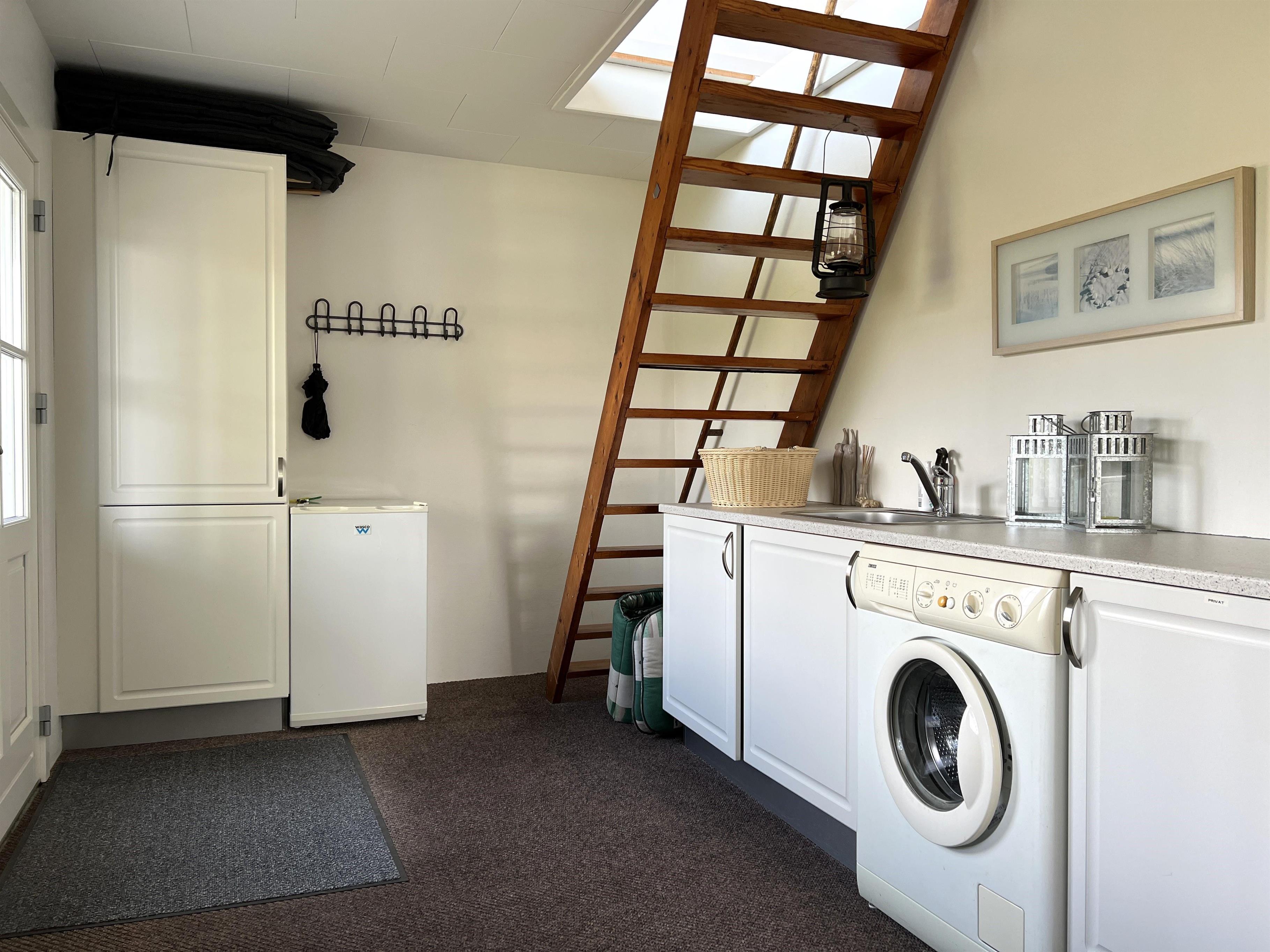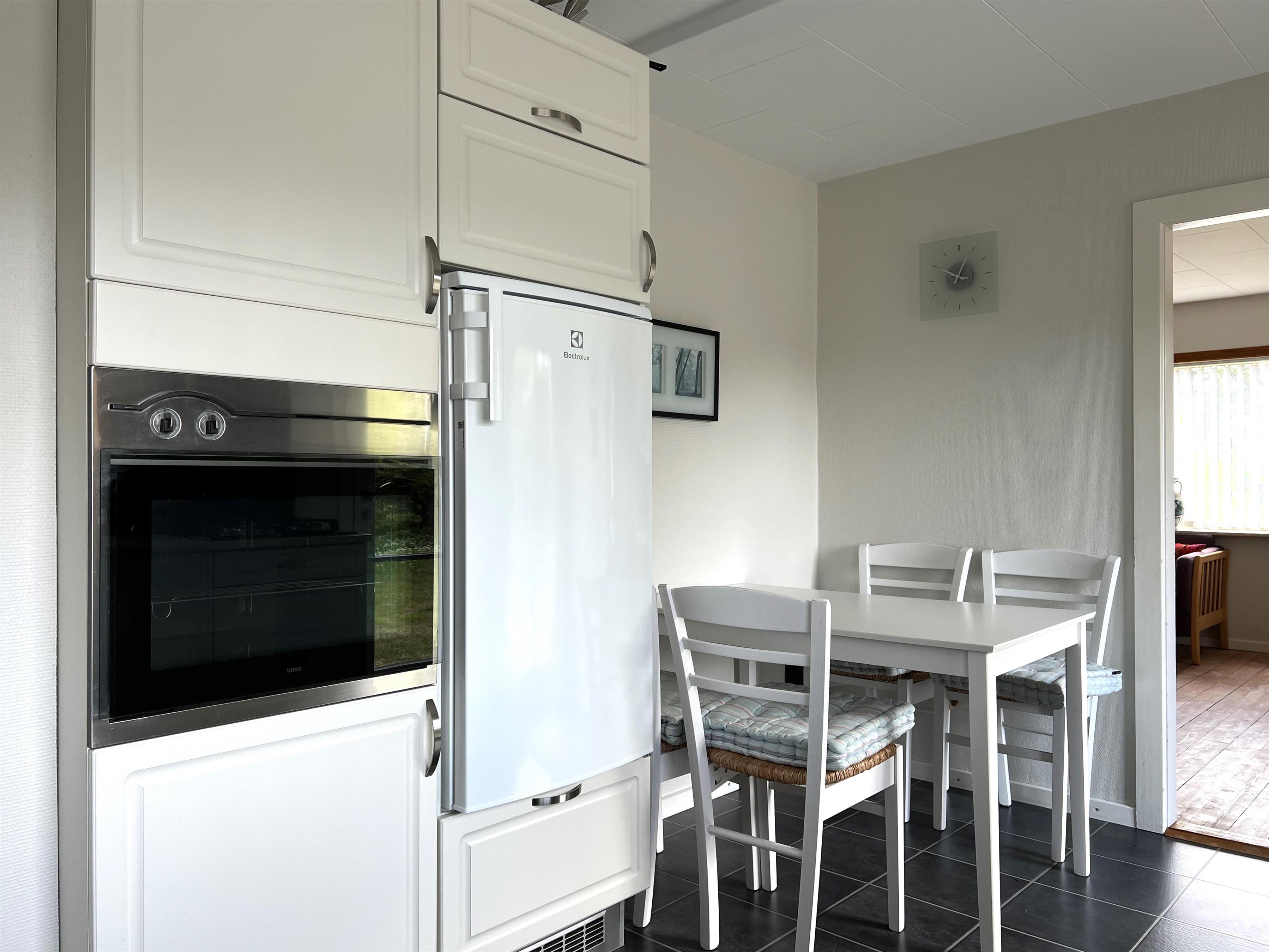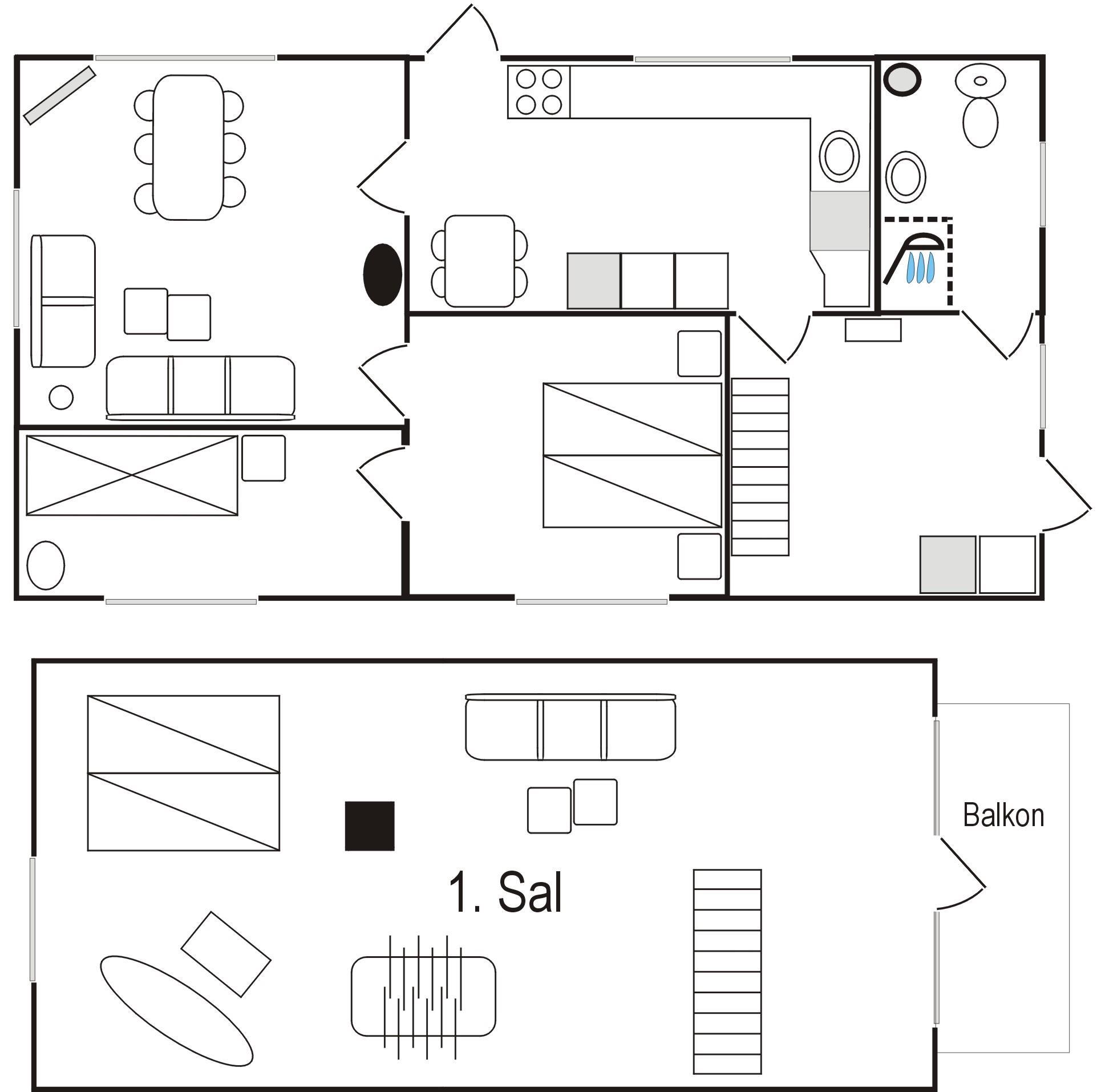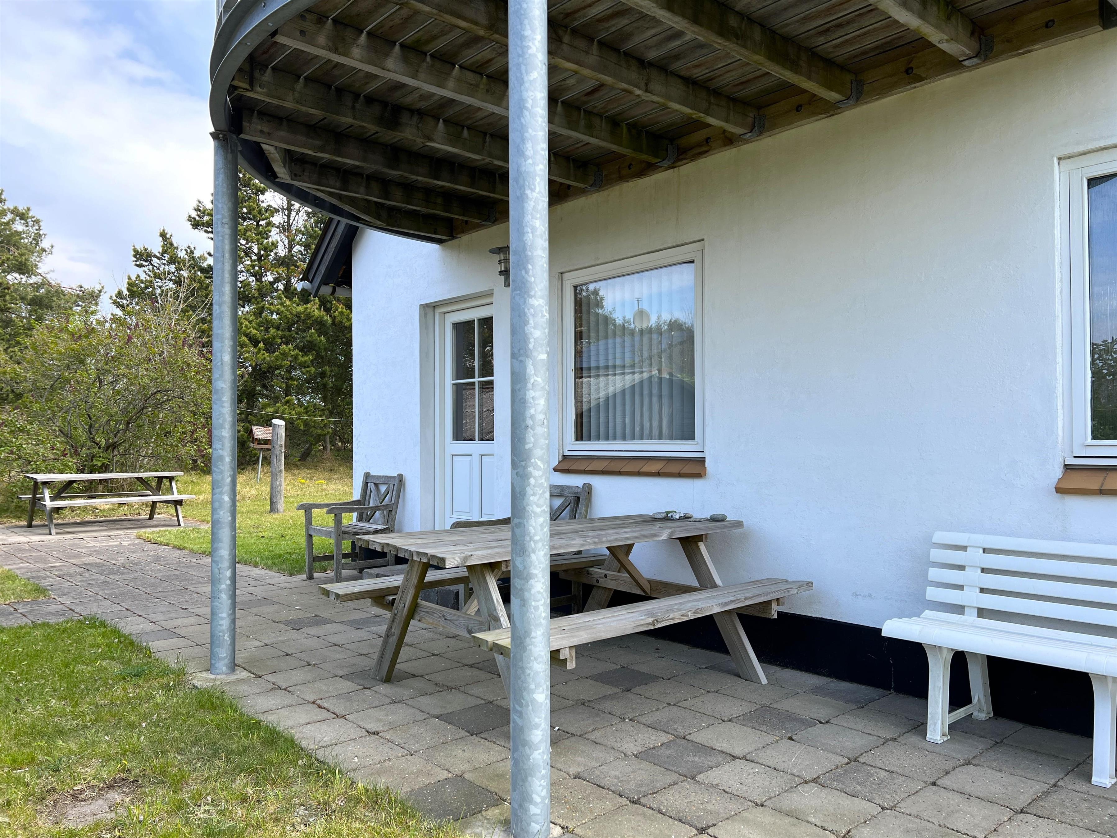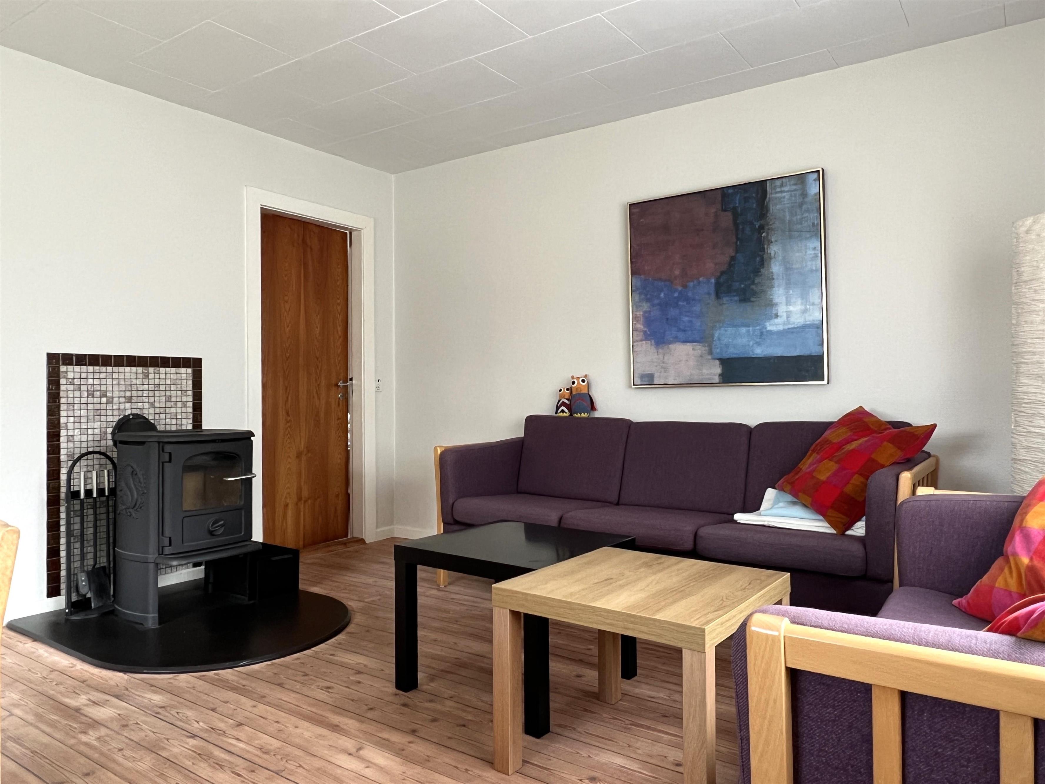 Selve huset har masser af plads til både store og små. Fint, lyst køkken med spiseplads og i forlængelse heraf stue med brændeovn. To soverum, et med dobbeltseng og et med køjeseng. Badeværelse med brus og stort brygger med trappe til 1.sal. På 1. sal er der en hyggelig lille sovekrog med dobbeltseng, og rummet fremstår indbydende med åbent til kip og masser af lys. Det store aktivitetsrum har bordfodbold og masser af lejetøj og behagelige møbler. Stor balkon med havemøbler. To terrasser på hver sin side af huset giver mulighed for at nyde solen hele dagen.