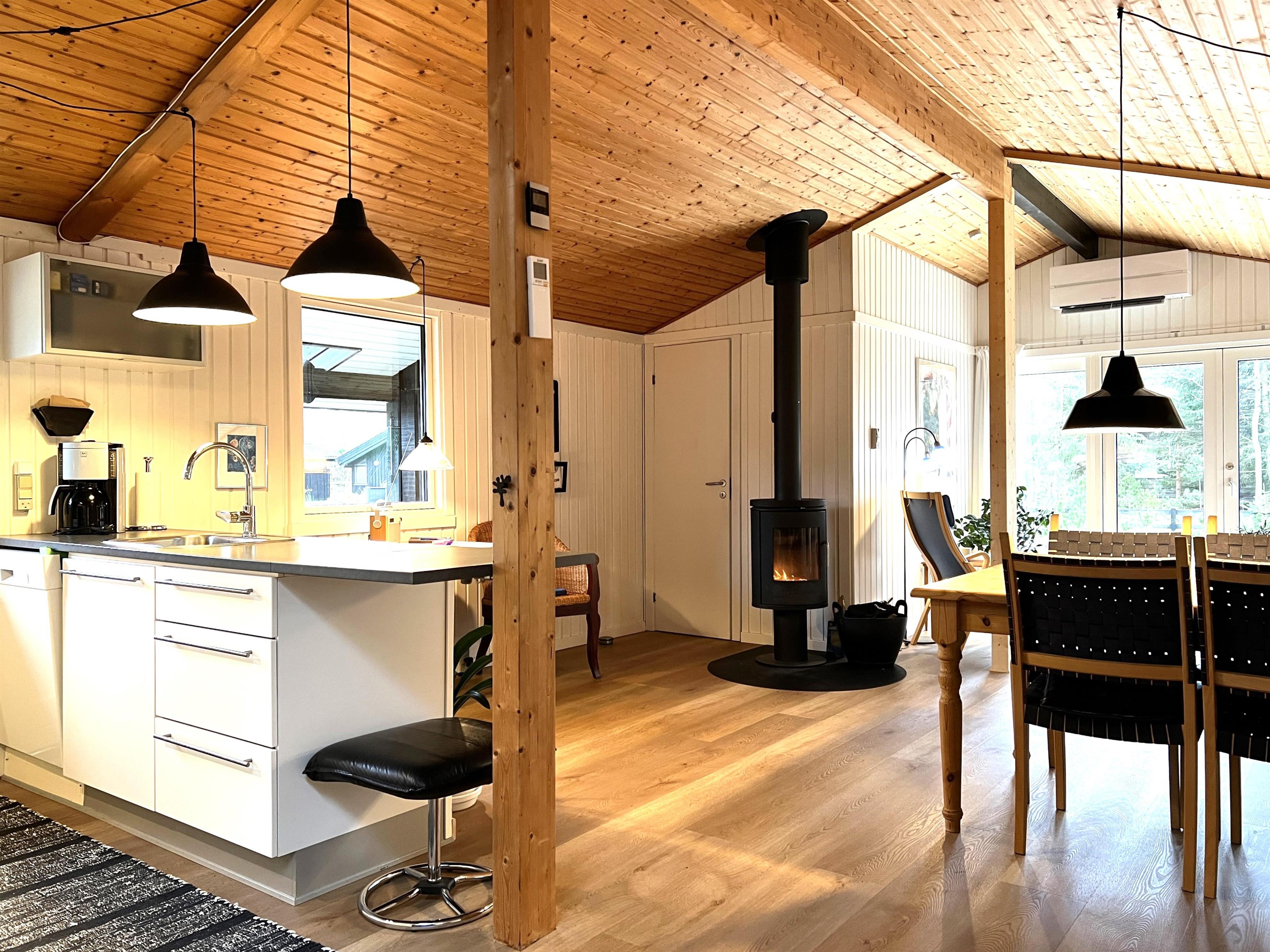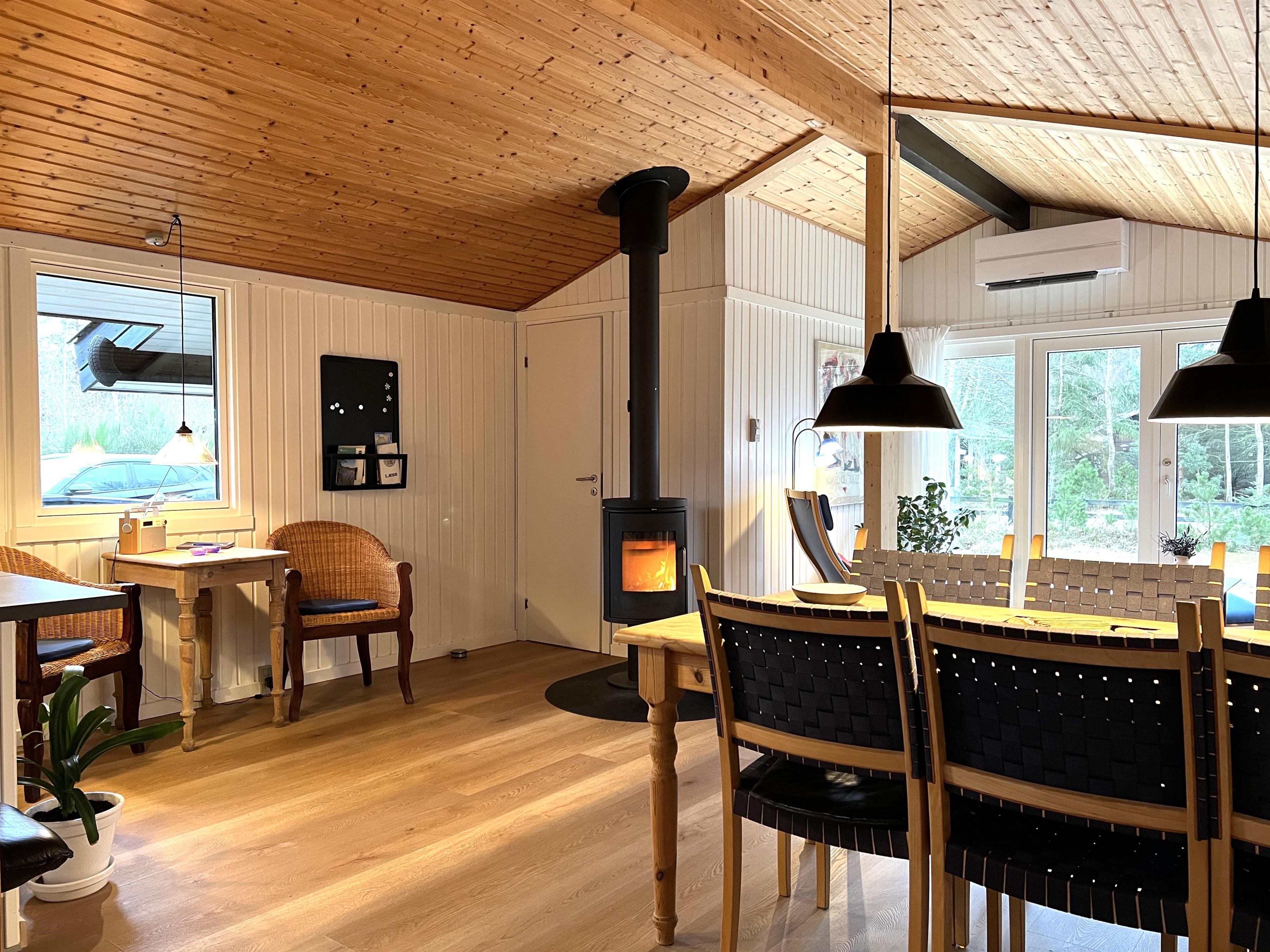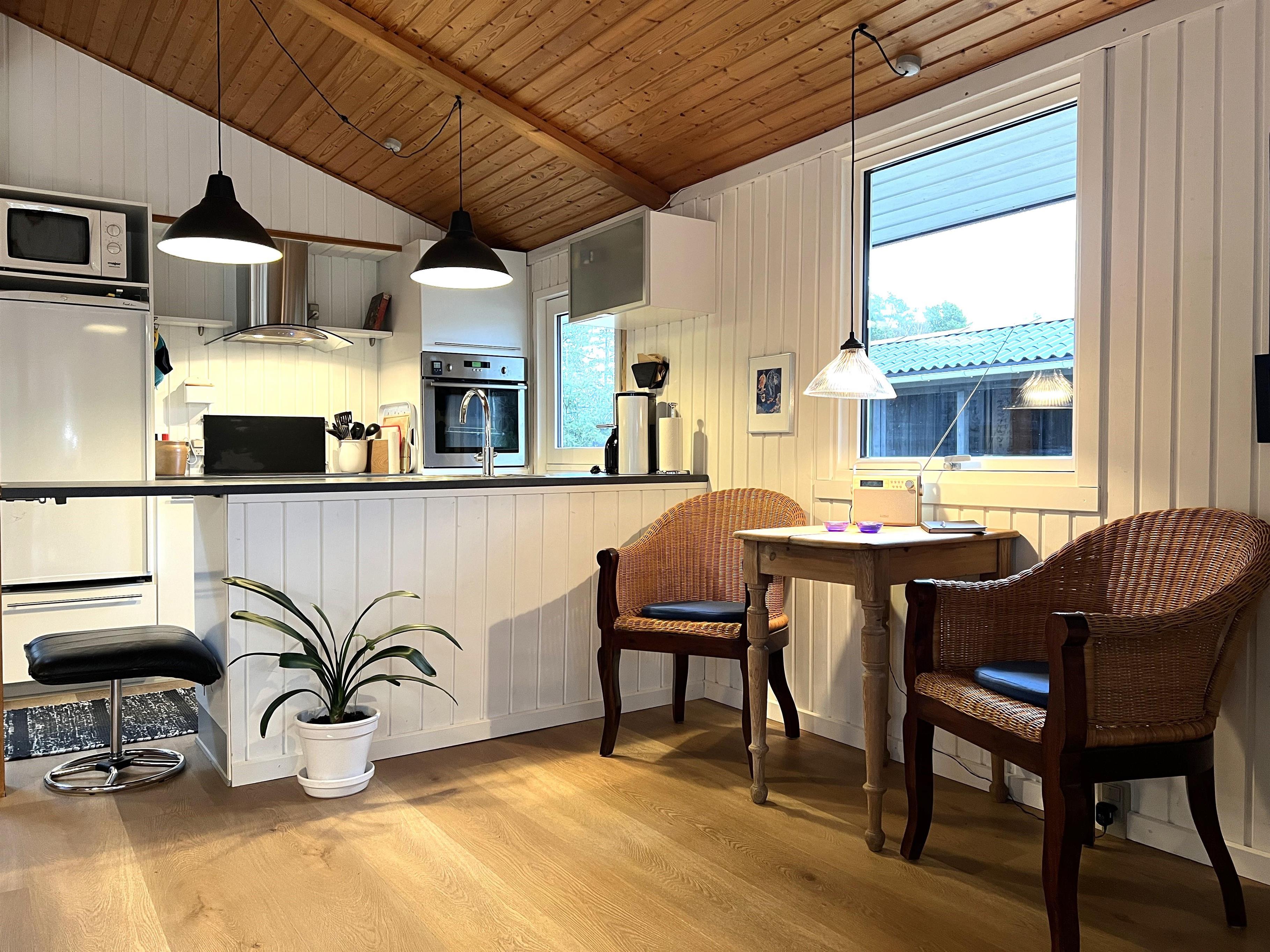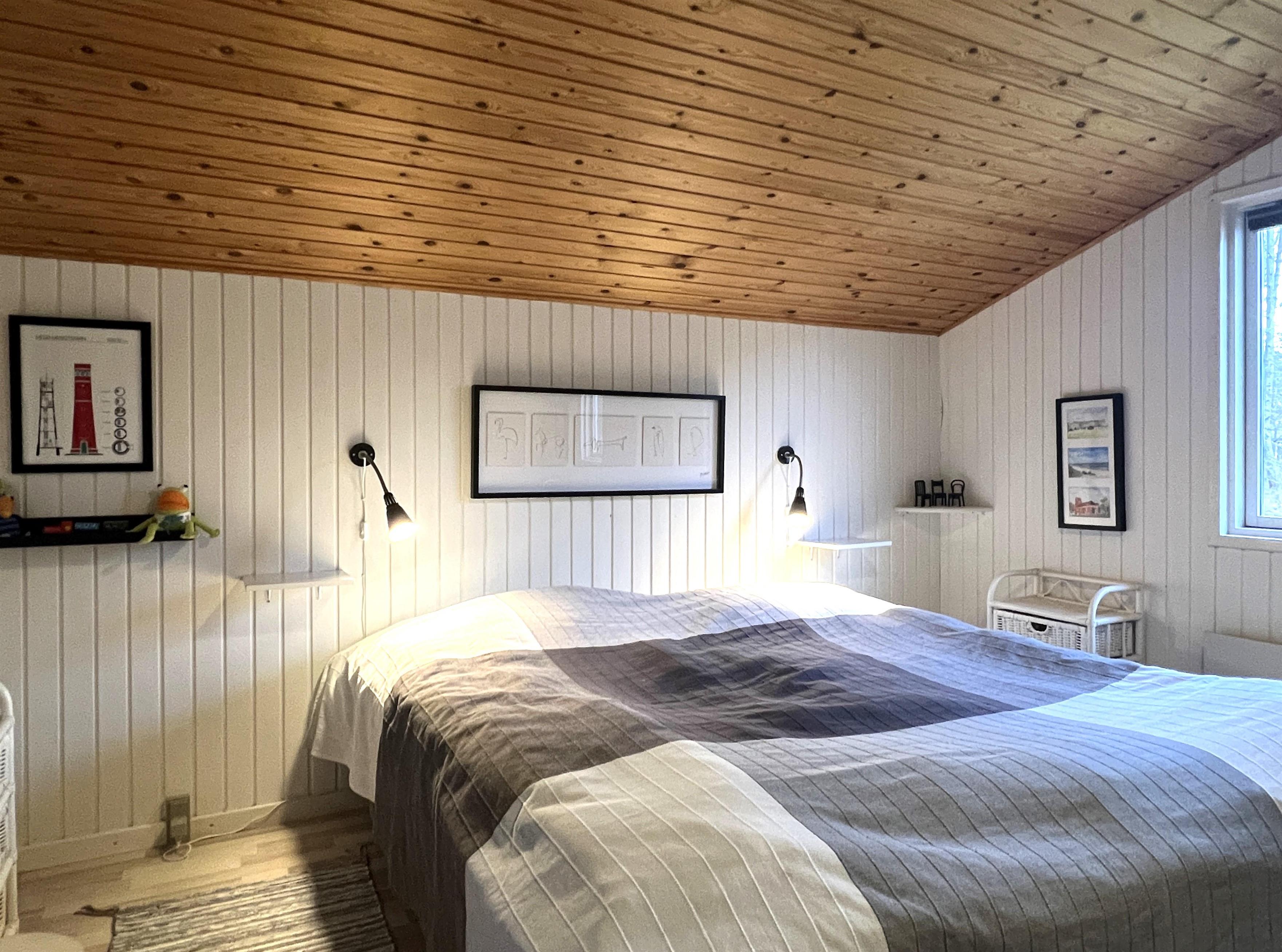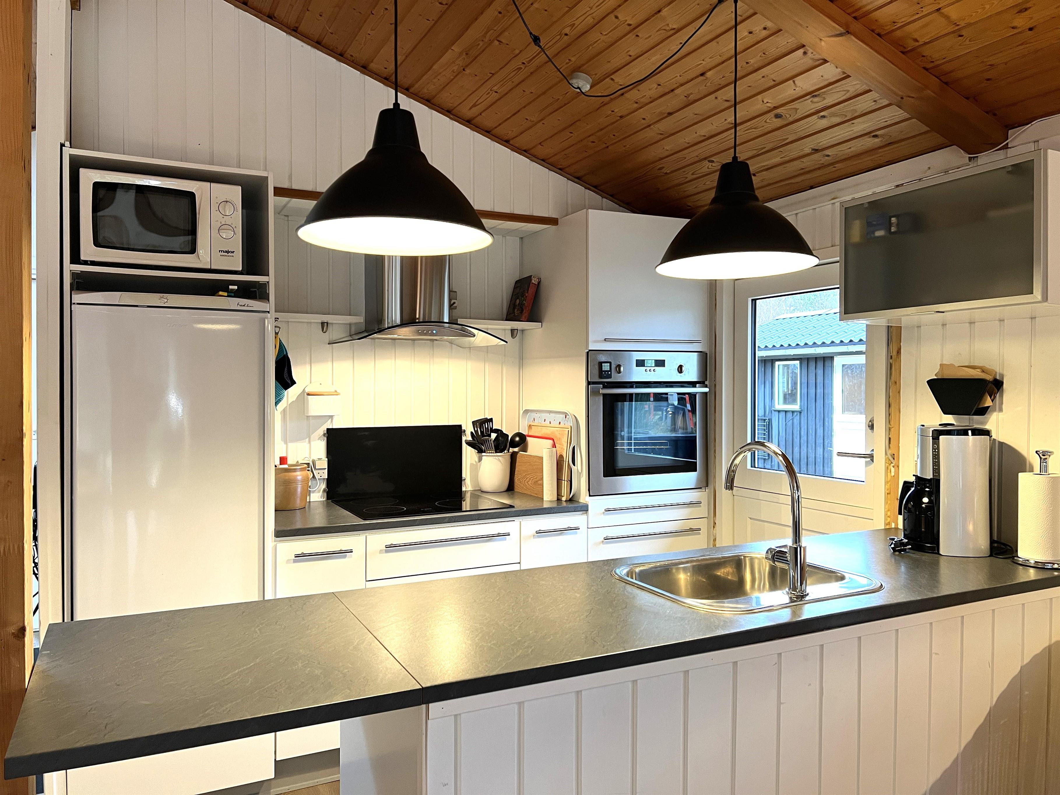Skønt feriehus, nyrenoveret i 2023. Huset har et fint moderne køkken, åbent til rummelig, hyggelig stue med spiseplads, brændeovn og sofakroge. To dejlige soveværelser, hvor et er med dobbeltseng, og et med 2 enkelt senge. Fint badeværelse med brus. Huset har også et praktisk grovkøkken, hvor de friske fisk og skaldyr kan tilberedes.