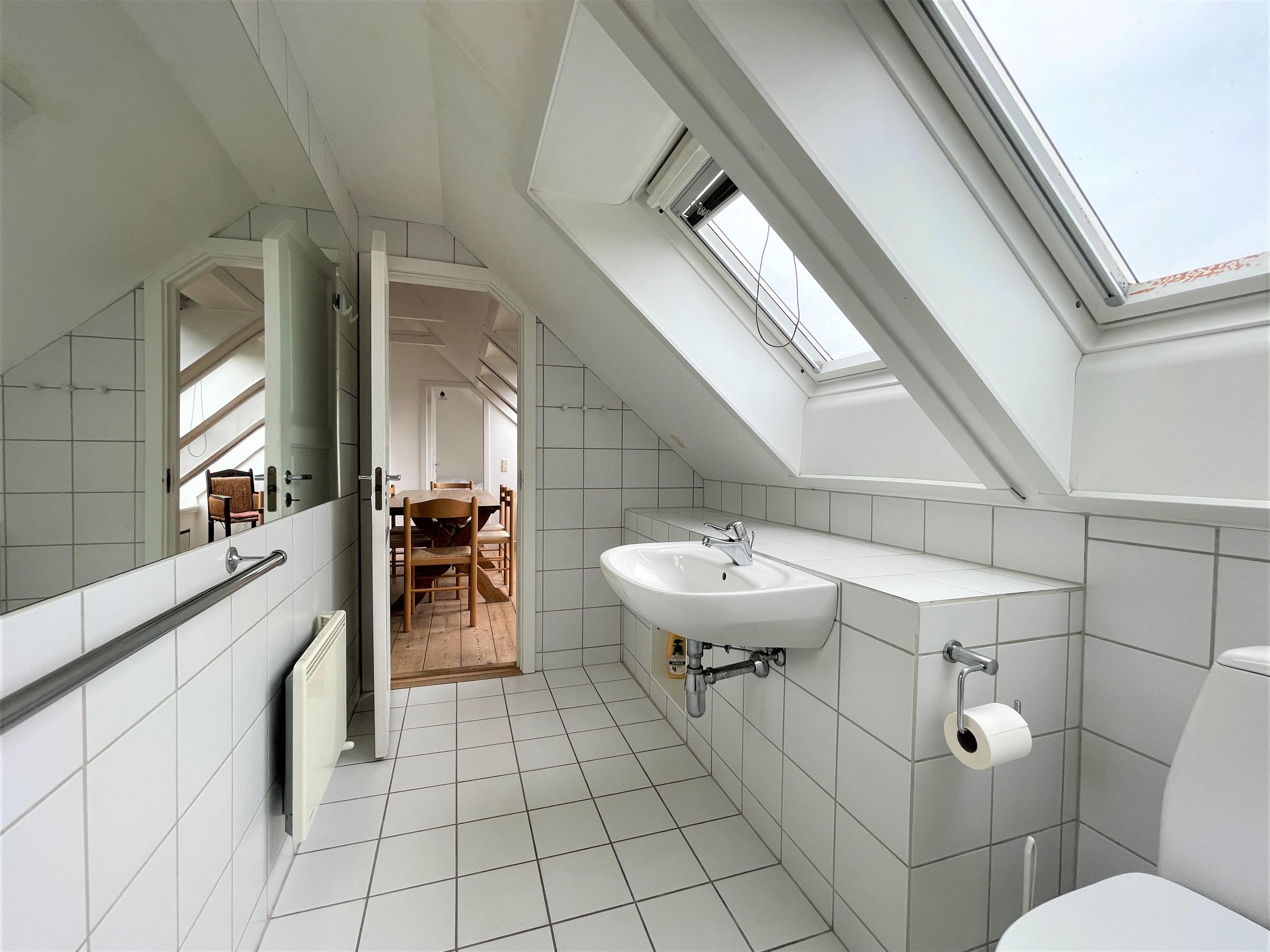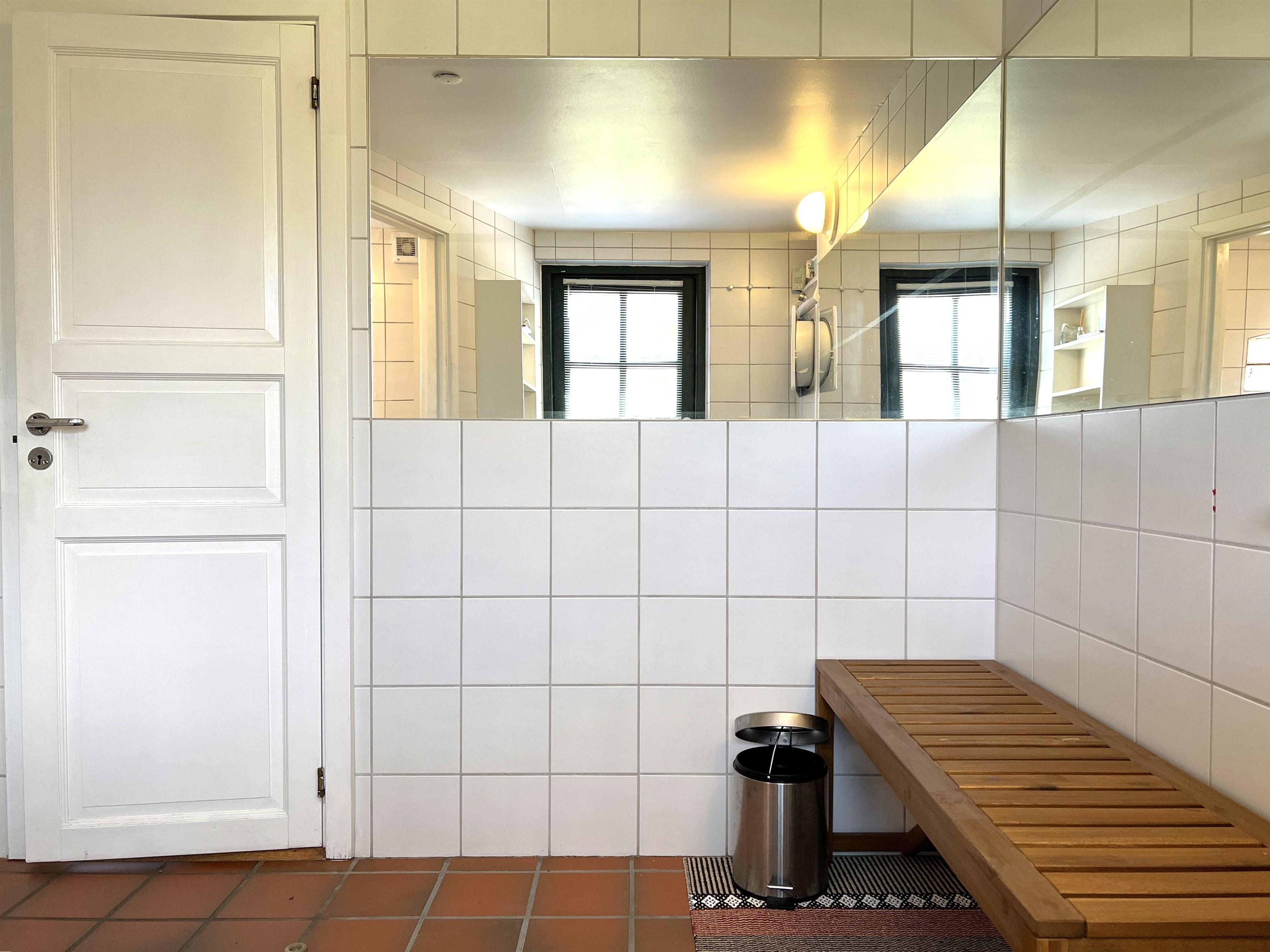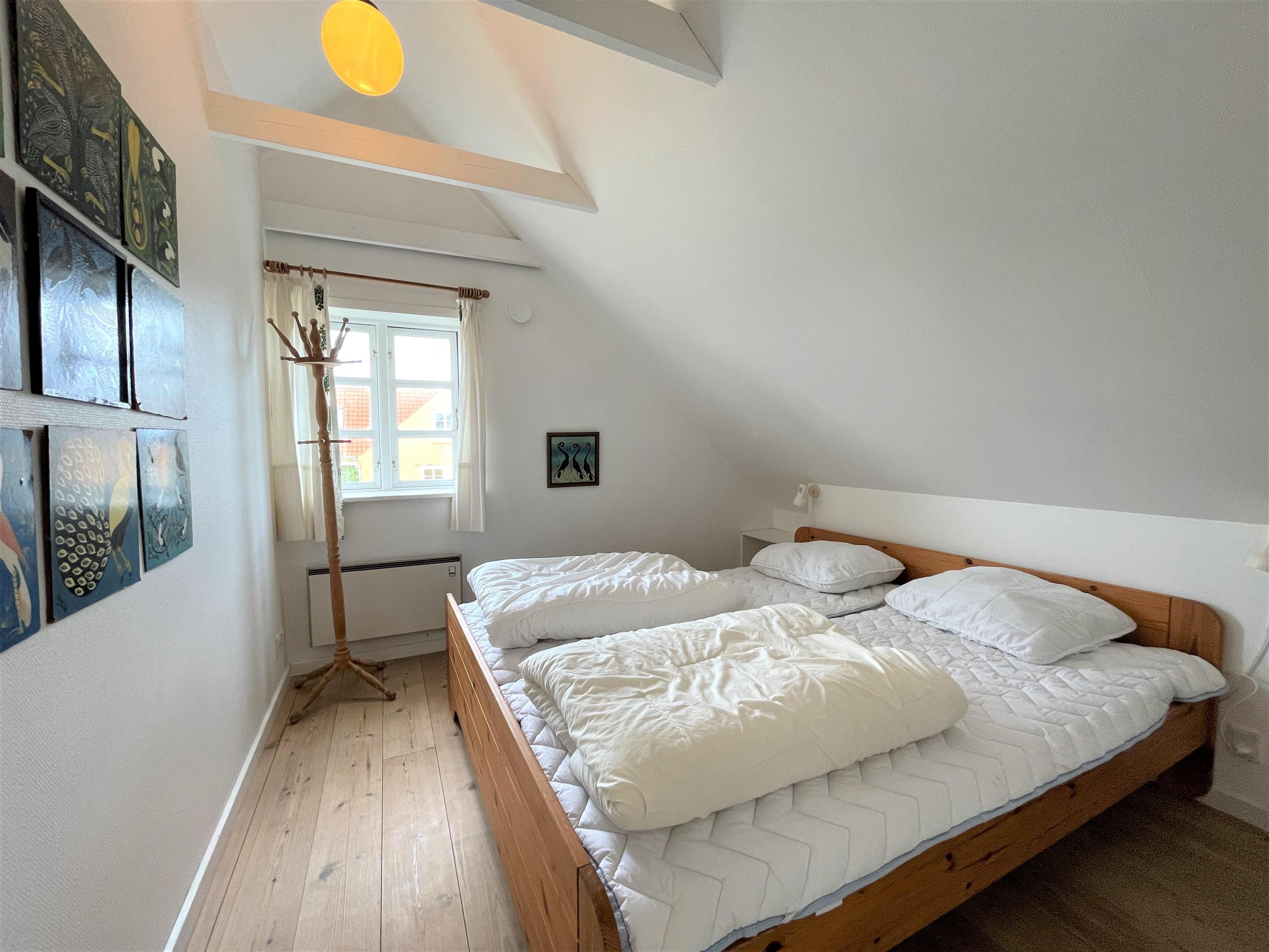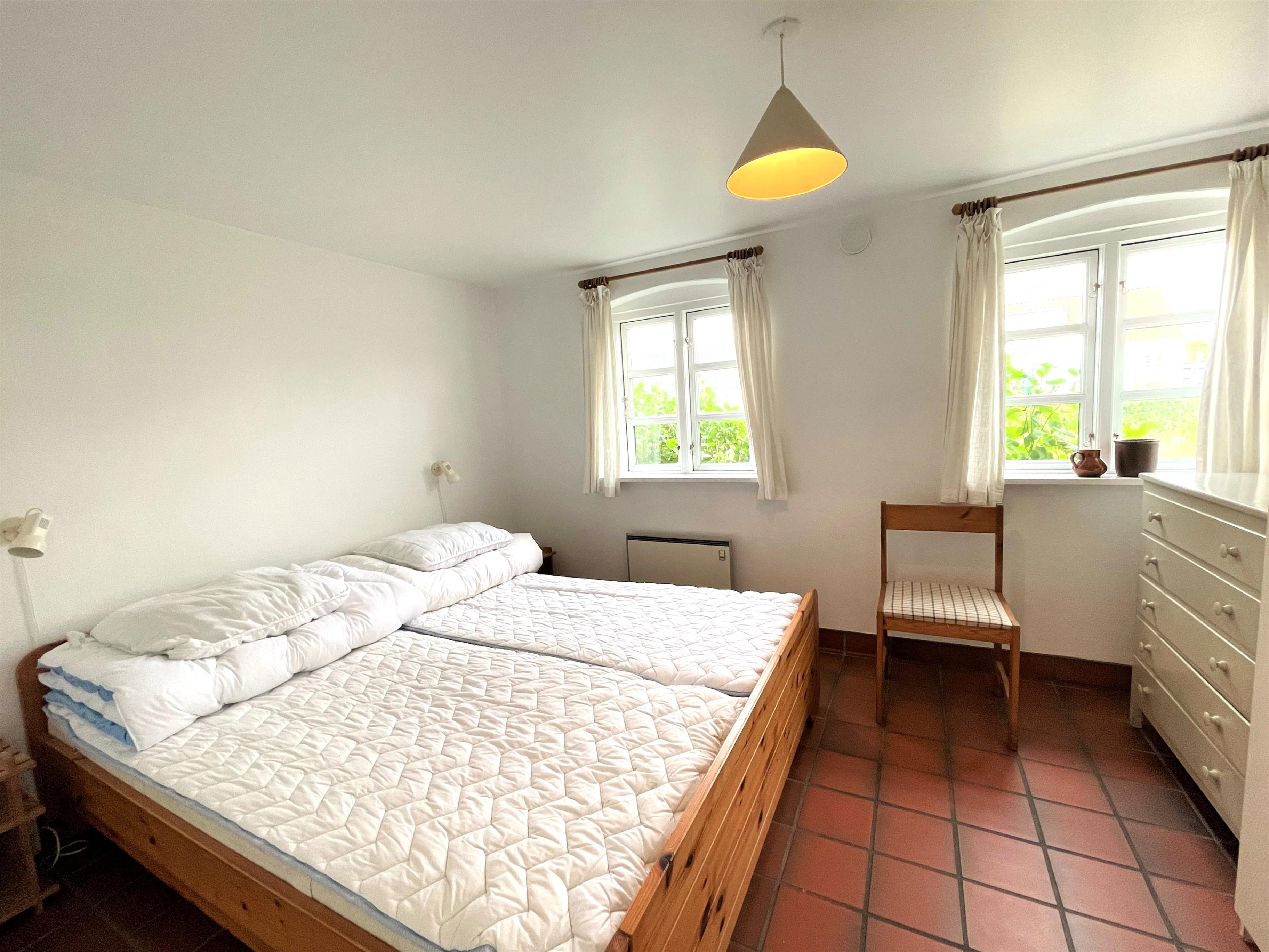 1. sal med hyggeligt lyst repos, indrettet med stort bord, hvor der er plads til hyggelige aktiviteter, læsning, spil og selskabelige stunder. Herudover er der tre soverum, et med dobbeltseng, et med to enkeltsenge (70x190) og et med en enkeltseng (70x190). Toilet og brus. Flot havudsigt fra 1.salen.