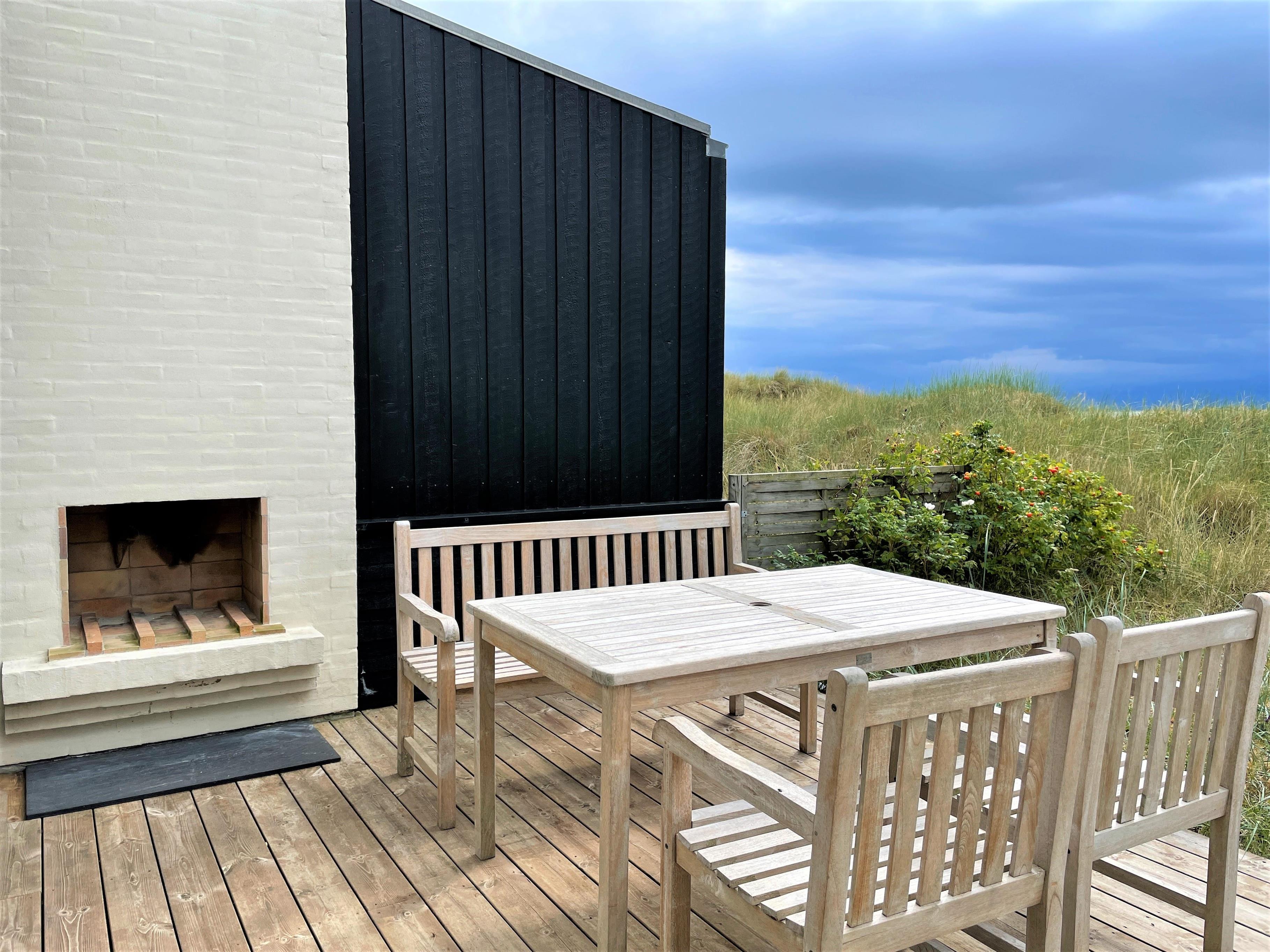 Midt i klitterne og med fuld havudsigt ligger dette fantastiske strandhus. Der er tale om en af Læsøs absolut bedste beliggenheder ved badestranden, hvor man virkelig kan nyde strand og natur, og samtidigt være tæt på det hyggelige havnemiljø i Vesterø. Selve strandhuset indeholder éntre, stort, lyst og moderne køkken/alrum med spiseplads og sofaafdeling med pejs indbygget i væggen. Huset har to soveværelser med en dobbelt- samt to enkeltsenge. Fra soveværelset med dobbeltseng og fra stuen er der udgang til terrasse med panorama havudsigt. Via udgangen står man direkte i marehalm og omkranset af klitroser. Denne terrasse har desuden udendørs pejs og behagelige havemøbler. Østvendt terrasse på den anden side af huset. Stort, lyst badeværelse med brus.