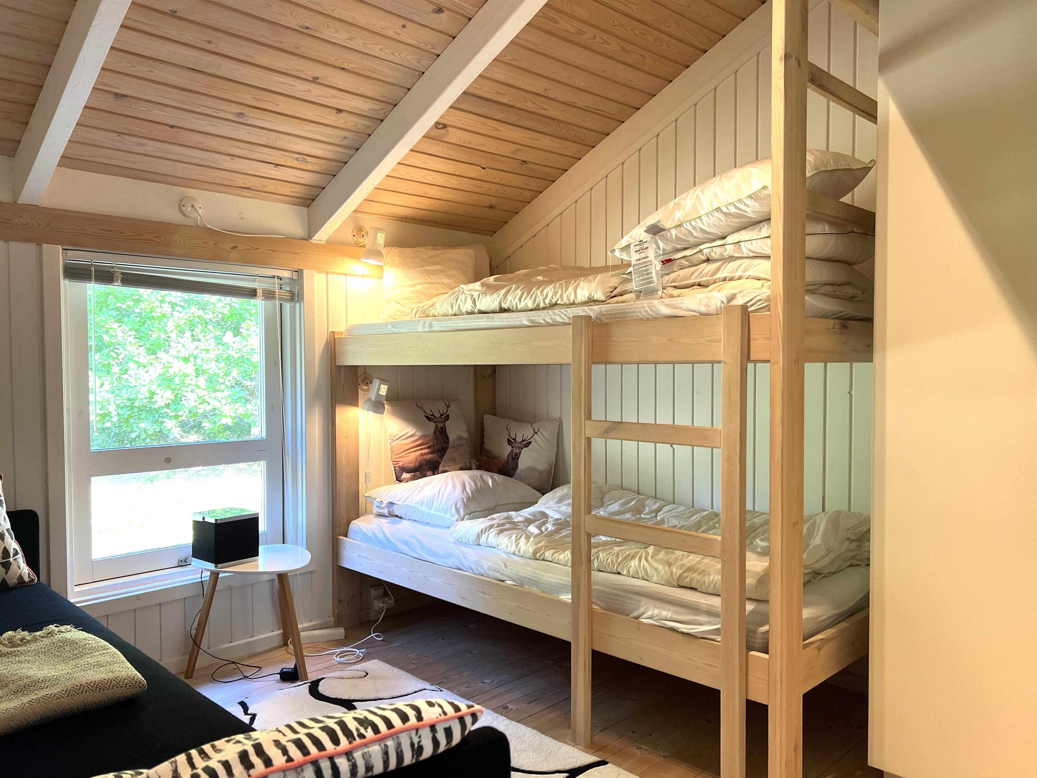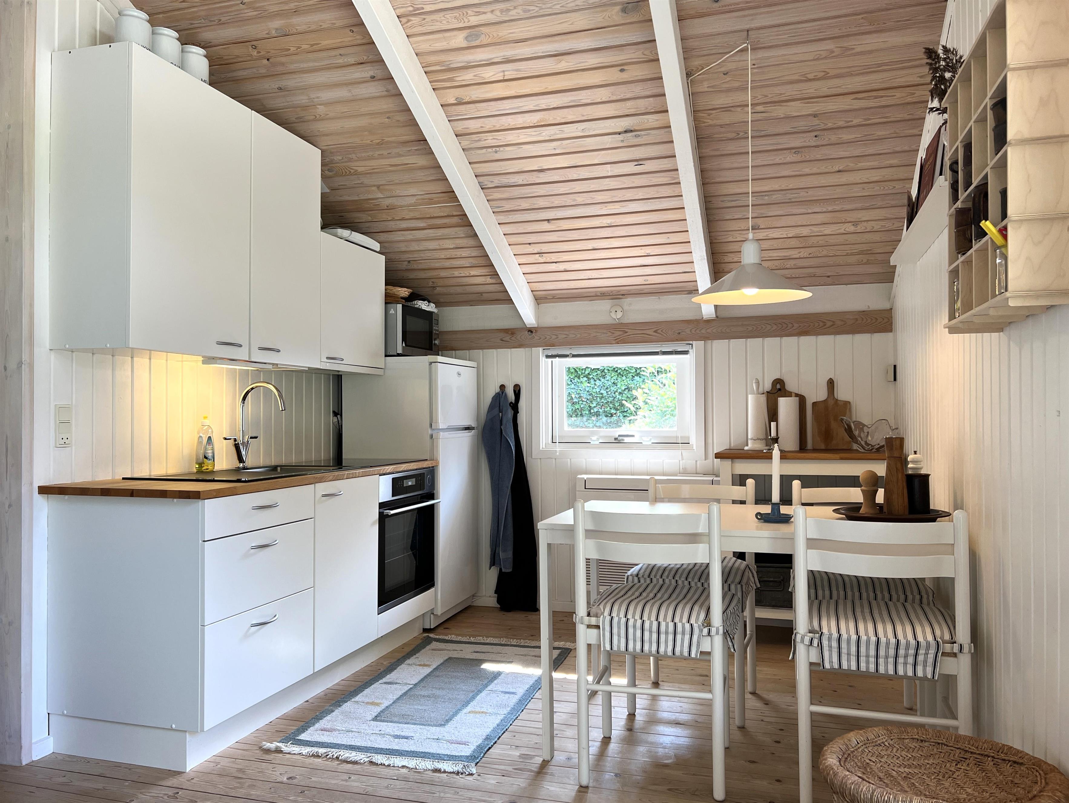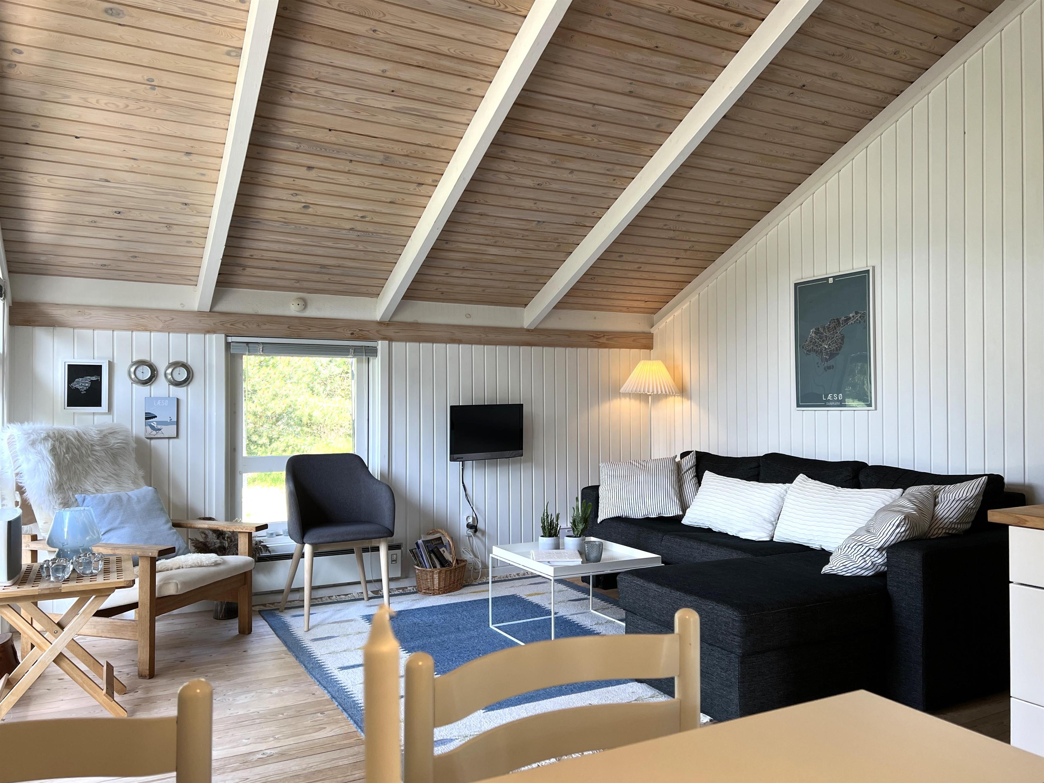 Skønt velplejet feriehus i Vesterø med dejlig beliggenhed på lyng/naturgrund. Hyggeligt køkken med spiseplads, åbent til en lys sydvendt stue, der er indrettet med behagelige møbler. To soveværelser, hvor et er med dobbeltseng (140x195), og et med slå ud sovesofa og en køjeseng. Fint badeværelse med brus.