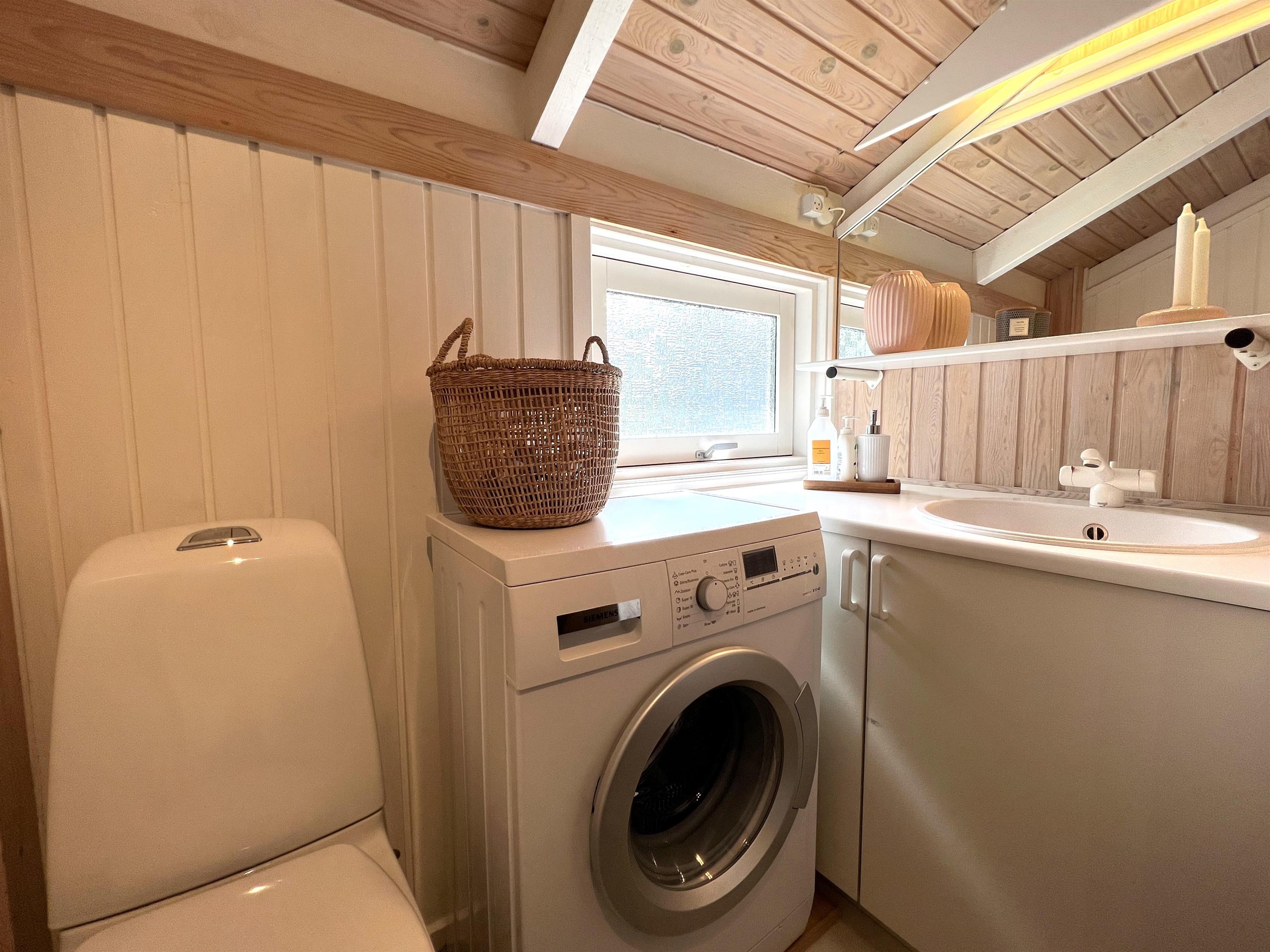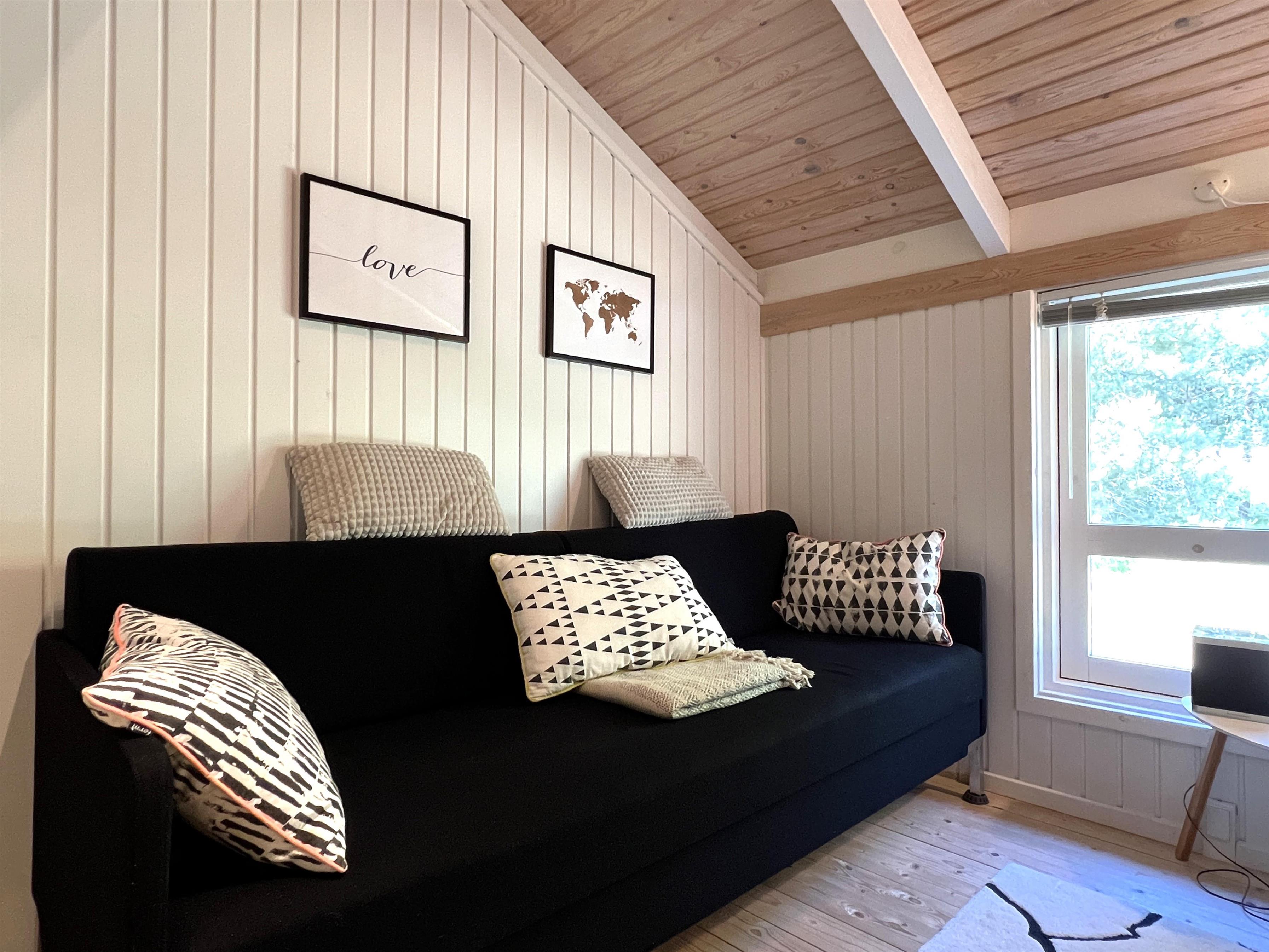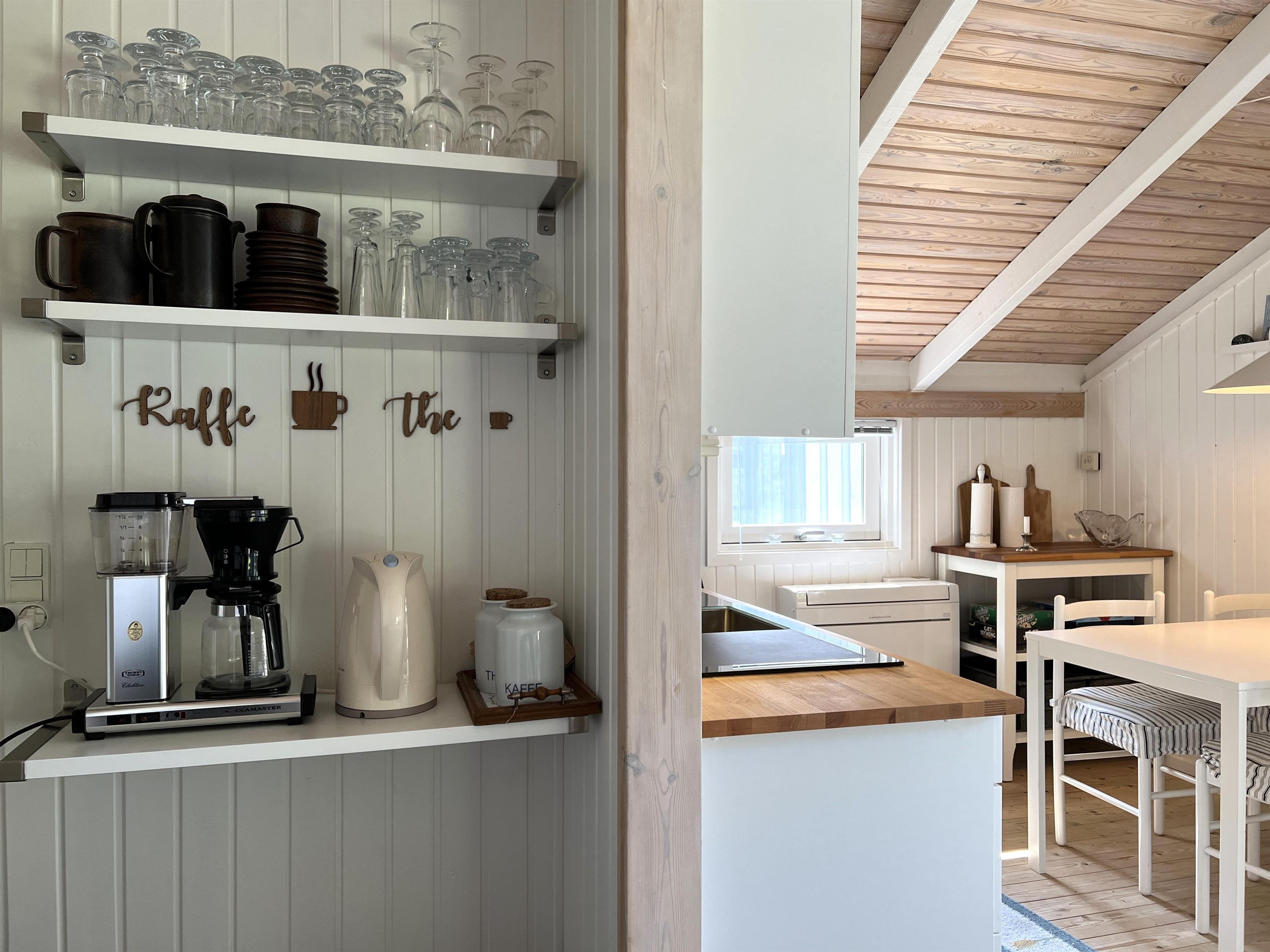 Skønt velplejet feriehus i Vesterø med dejlig beliggenhed på lyng/naturgrund. Hyggeligt køkken med spiseplads, åbent til en lys sydvendt stue, der er indrettet med behagelige møbler. To soveværelser, hvor et er med dobbeltseng (140x195), og et med slå ud sovesofa og en køjeseng. Fint badeværelse med brus.