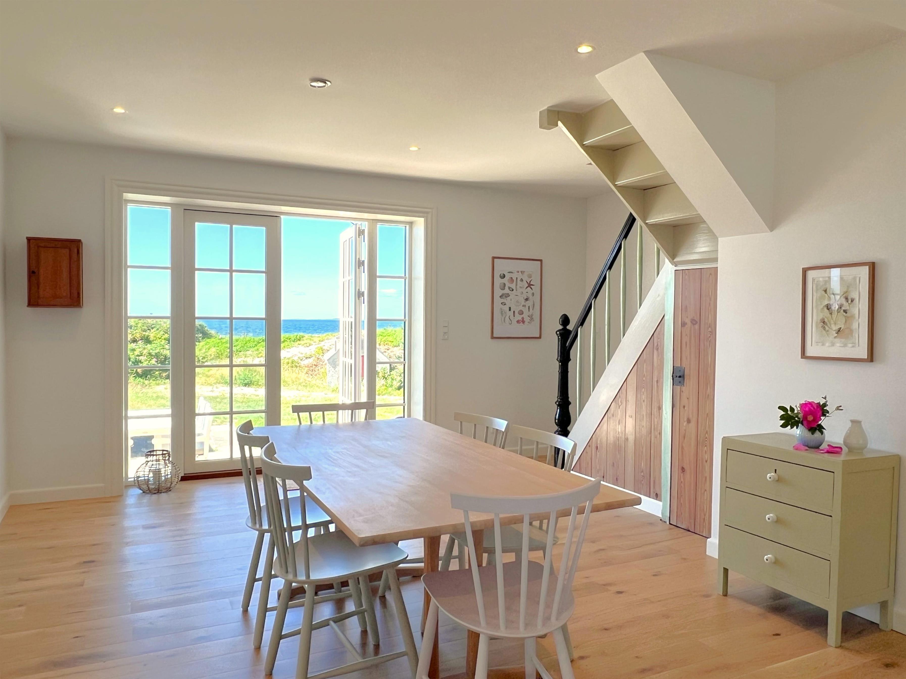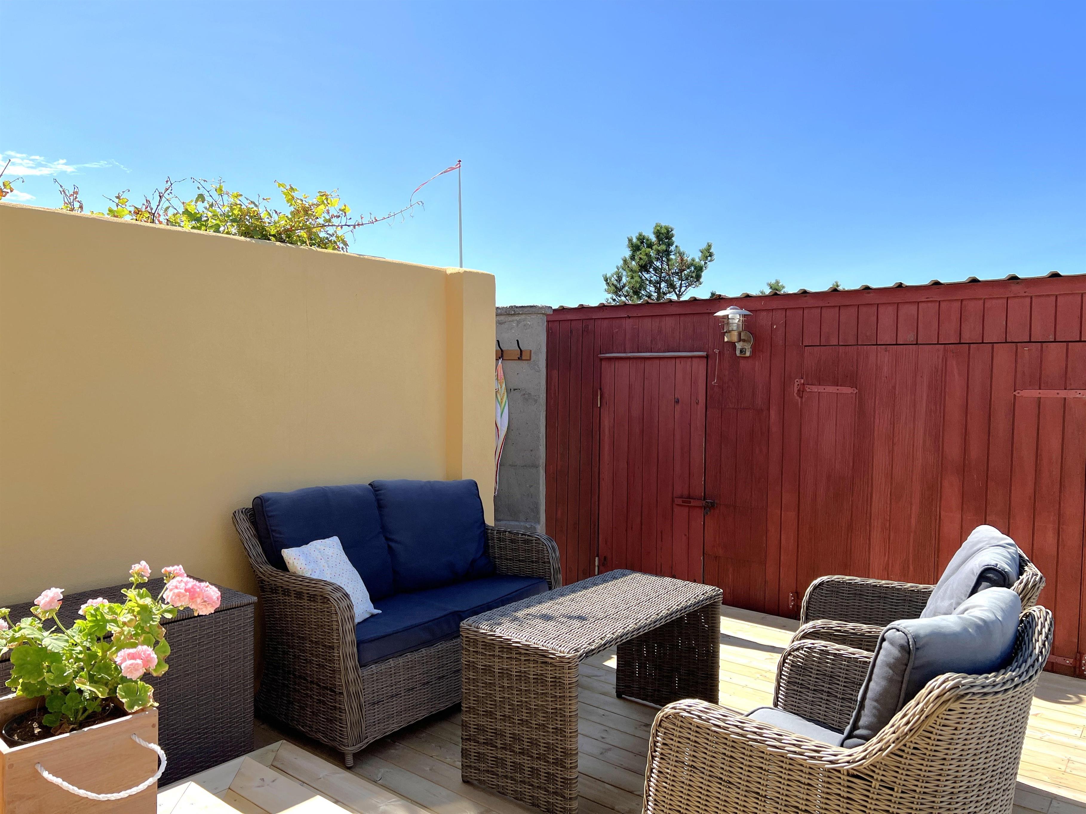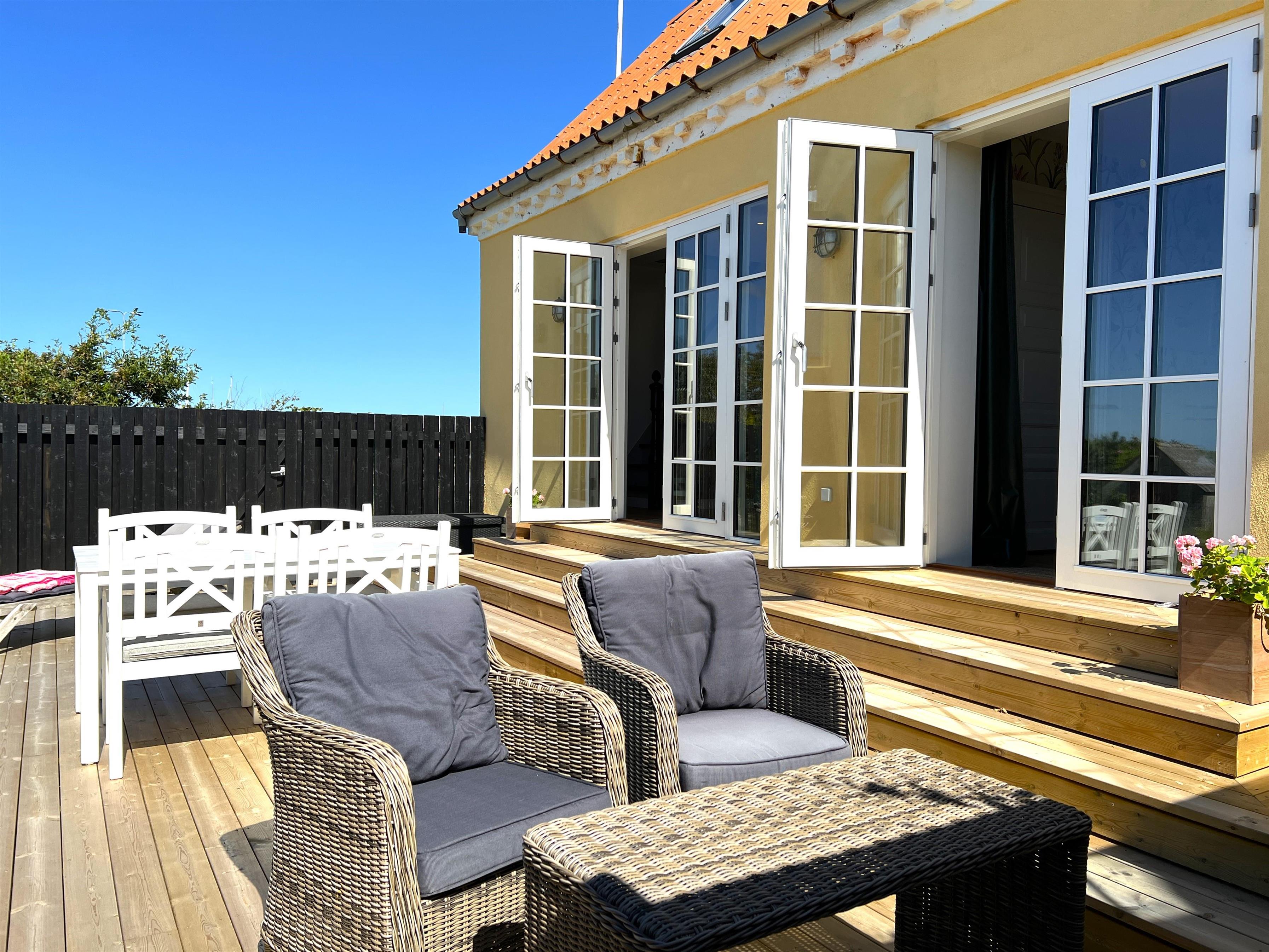 Der er anlagt ny terrasse mod havet, der gør det muligt at nyde solen og udsigten det meste af dagen - solnedgangen over havet er simpelthen magisk fra terrassen og et fantastisk sted at afslutte en skøn, oplevelsesrig feriedag på Læsø.