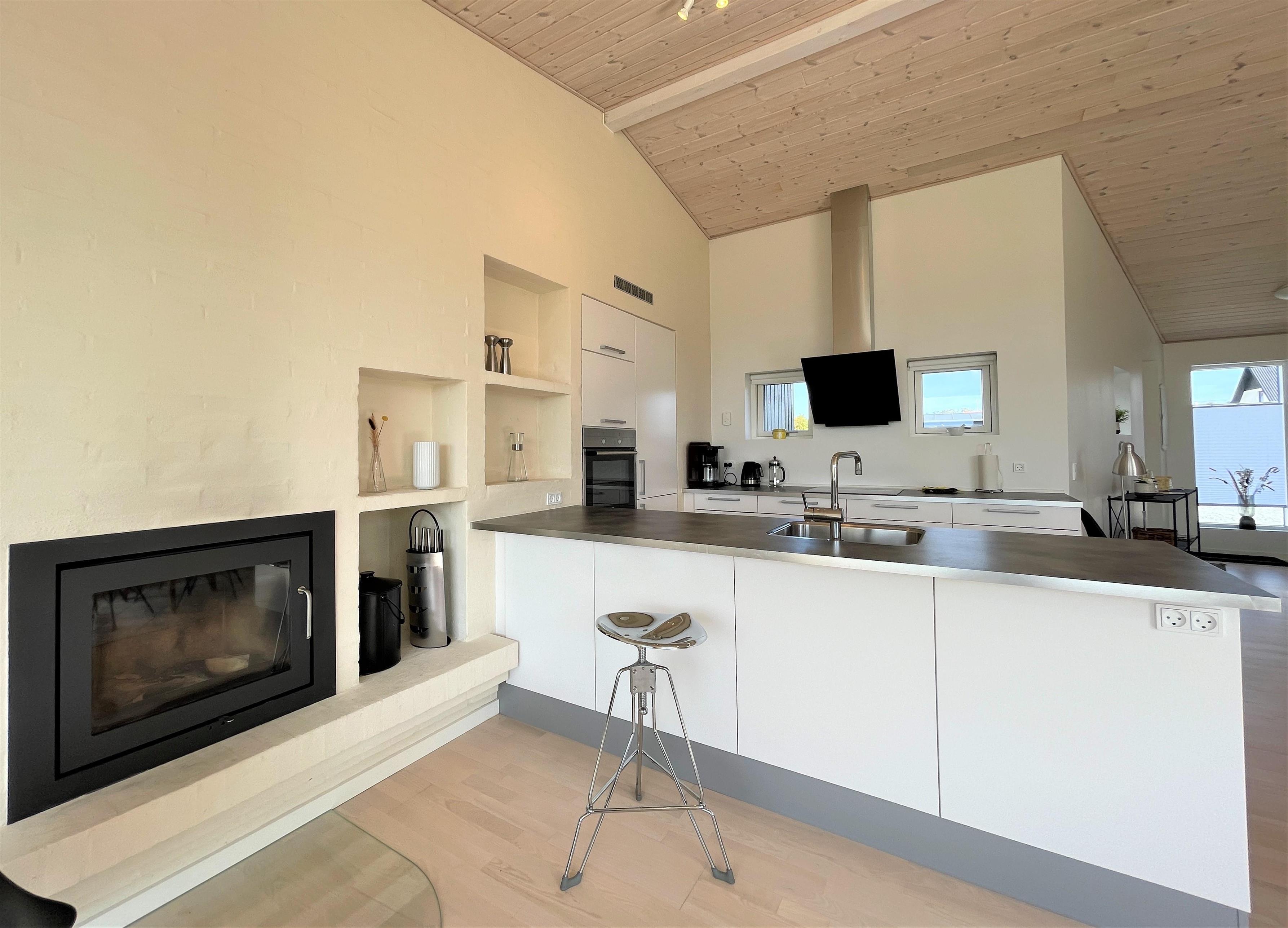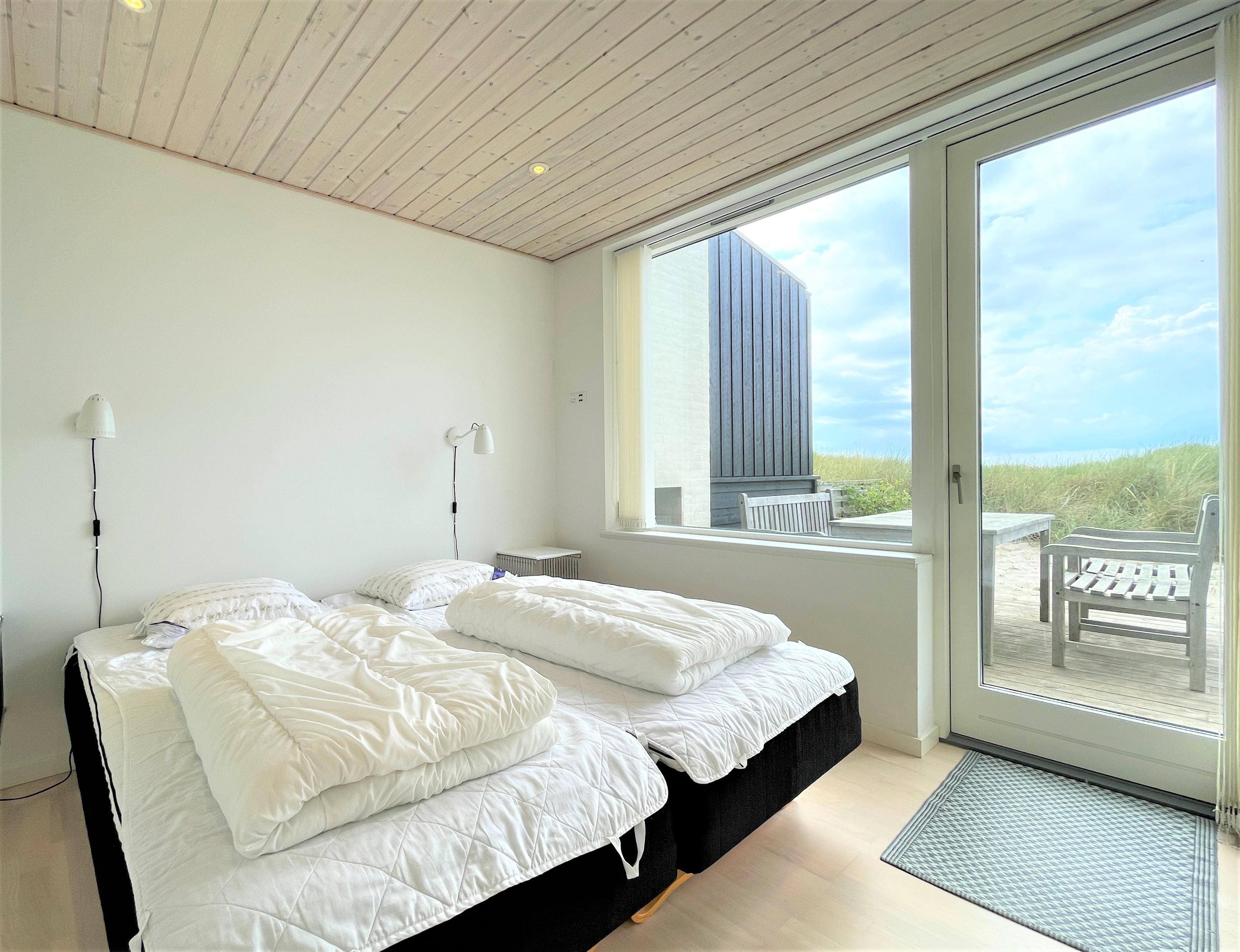 Midt i klitterne og med fuld havudsigt ligger dette fantastiske strandhus. Der er tale om en af Læsøs absolut bedste beliggenheder ved badestranden, hvor man virkelig kan nyde strand og natur, og samtidigt være tæt på det hyggelige havnemiljø i Vesterø. Selve strandhuset indeholder éntre, stort, lyst og moderne køkken/alrum med barstol, spiseplads samt hyggelig sofaafdeling med pejs indbygget i væggen. Huset har to soveværelser med en dobbelt- samt to enkeltsenge. Fra soveværelset med dobbeltseng og fra stuen er der udgang til terrasse med panorama havudsigt. Via udgangen står man direkte i marehalm og omkranset af klitroser. Denne terrasse er udstyret med udendørs pejs og behagelige havemøbler. Desuden stort, lyst og lækkert badeværelse med brus samt østvendt terrasse på den anden side af huset.