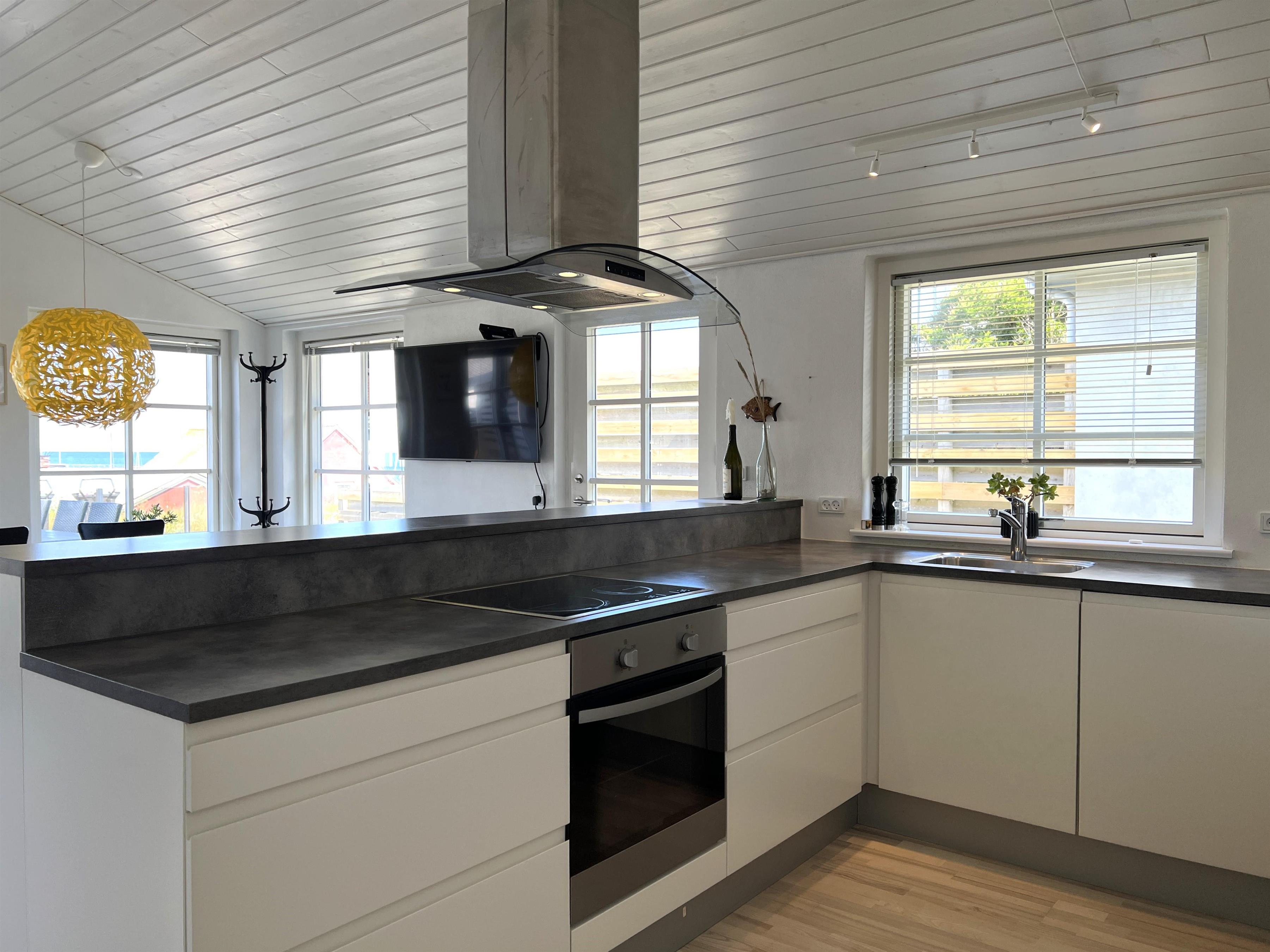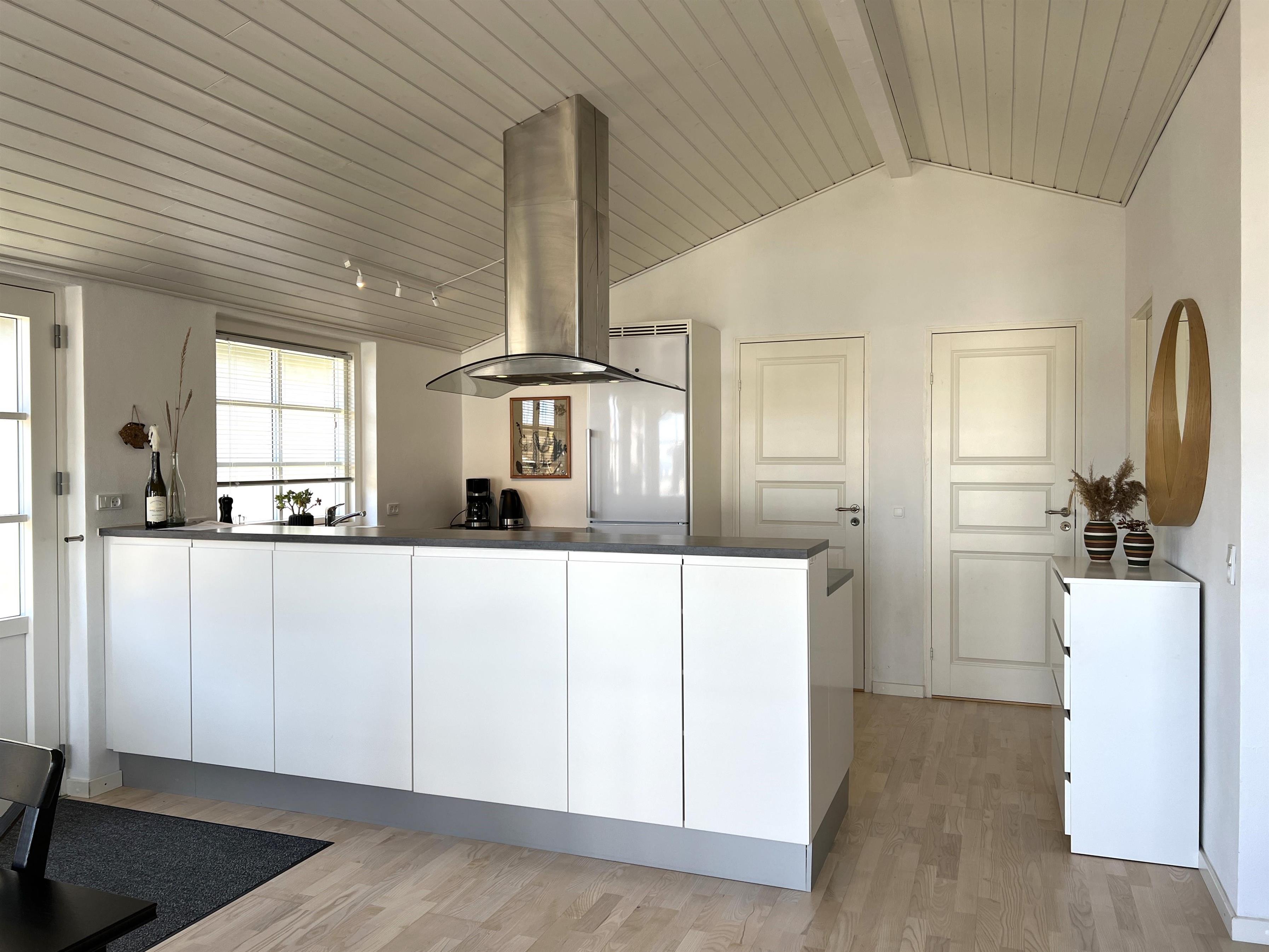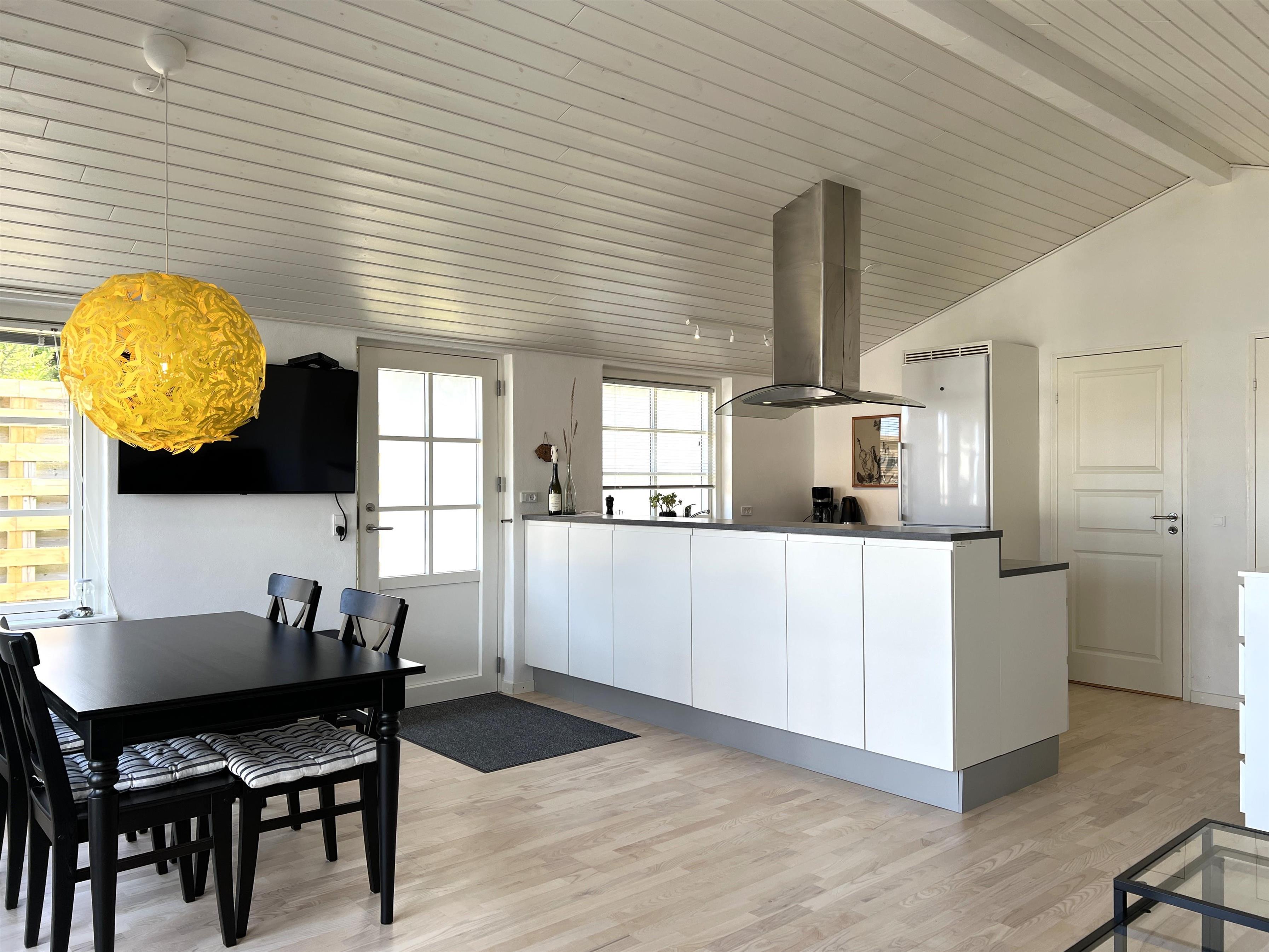 Havudsigt. Fint nyistandsat anneks med dejligt lysindfald. Nyt køkken alrum, fin lys stue med behagelige møbler, samt udgang til terrassen og udsigt ud over Kattegat. 2 fine soveværelse med dobbeltseng. Bad med brus og vaskemaskine. Fin terrasse med havudsigt.