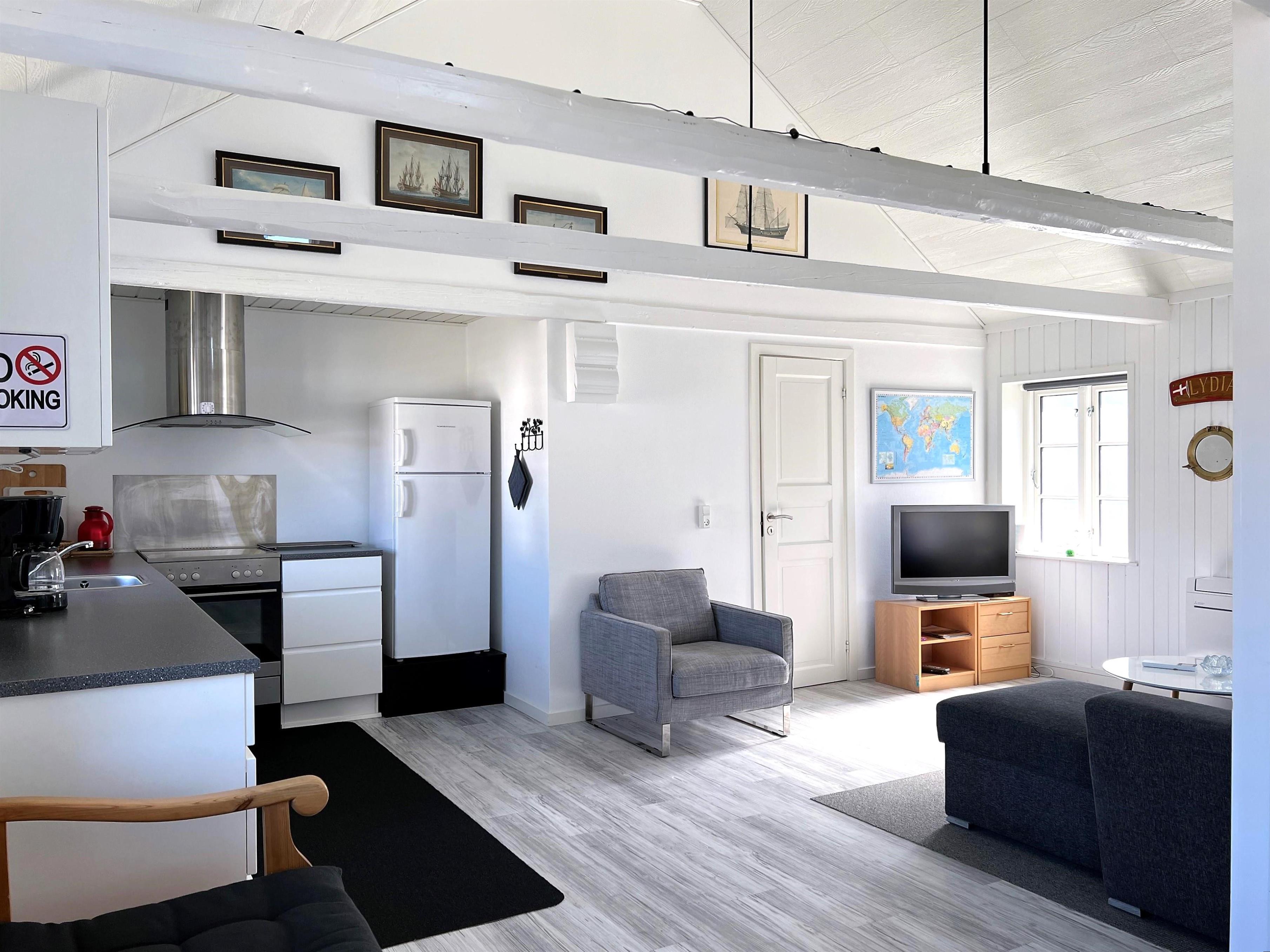 HAVKIG. Dejligt anneks/feriehus med en rigtig praktisk og hyggelig indretning. Fint køkken i forbindelse med stuen, hvor man har det flotte lysindfald. Der er et soveværelse med dobbeltseng og badeværelse med brus. Skøn terrasse med gode havemøbler og grill, hvorfra man kan nyde solen og solnedgangen over Kattegat og Vesterø Havn. Der er kun ca. 100 meter til Kongestranden, der ofte nævnes, som Læsøs bedste og børnevenlige sandstrand. Lige uden for døren har man det hyggelige havnemiljø med marina, indkøb, fiskehandler og restauranter.