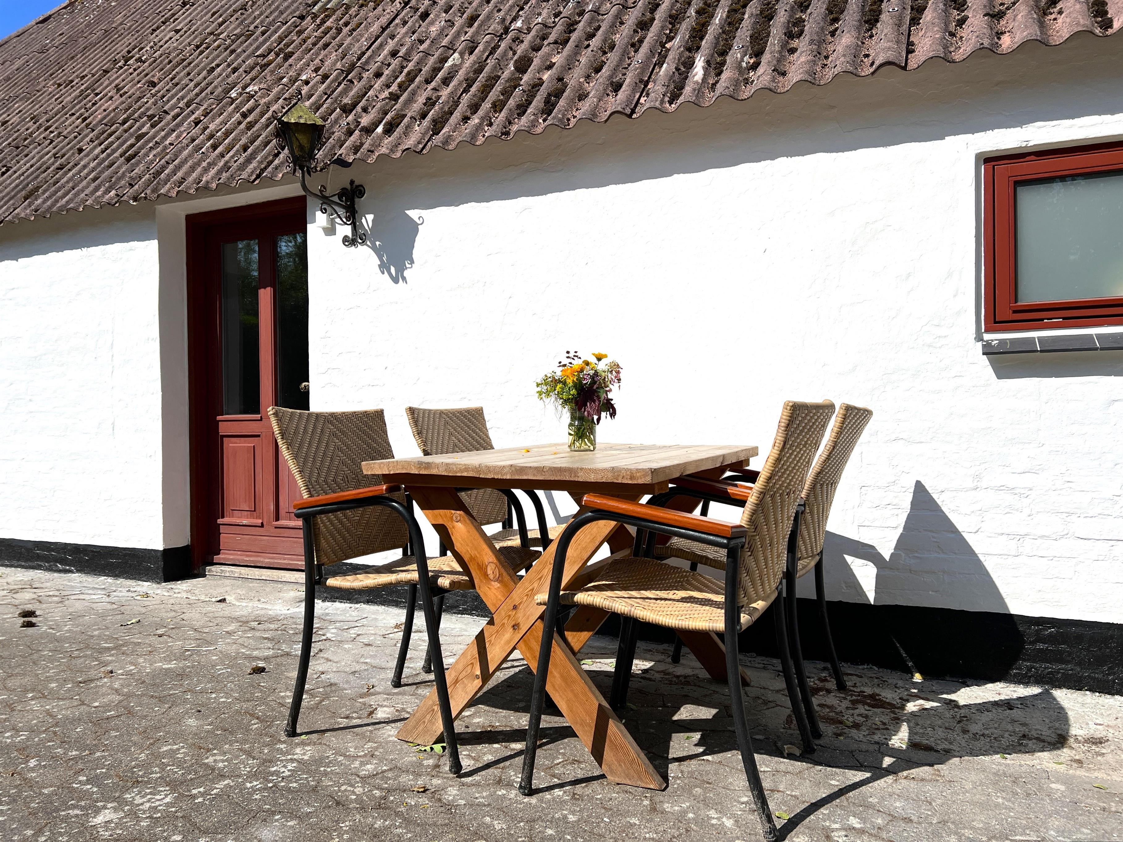 Dette hyggelige husmandssted fremstår indbydende og komfortabelt med god plads til den store familie. Huset er beliggende på rolig, børnevenlig vej med lukket have og udsigt over marker. Desuden i kort afstand til øens nok bedste badestrand, Kongestranden og Vesterø Havns hyggelige havnemiljø.
