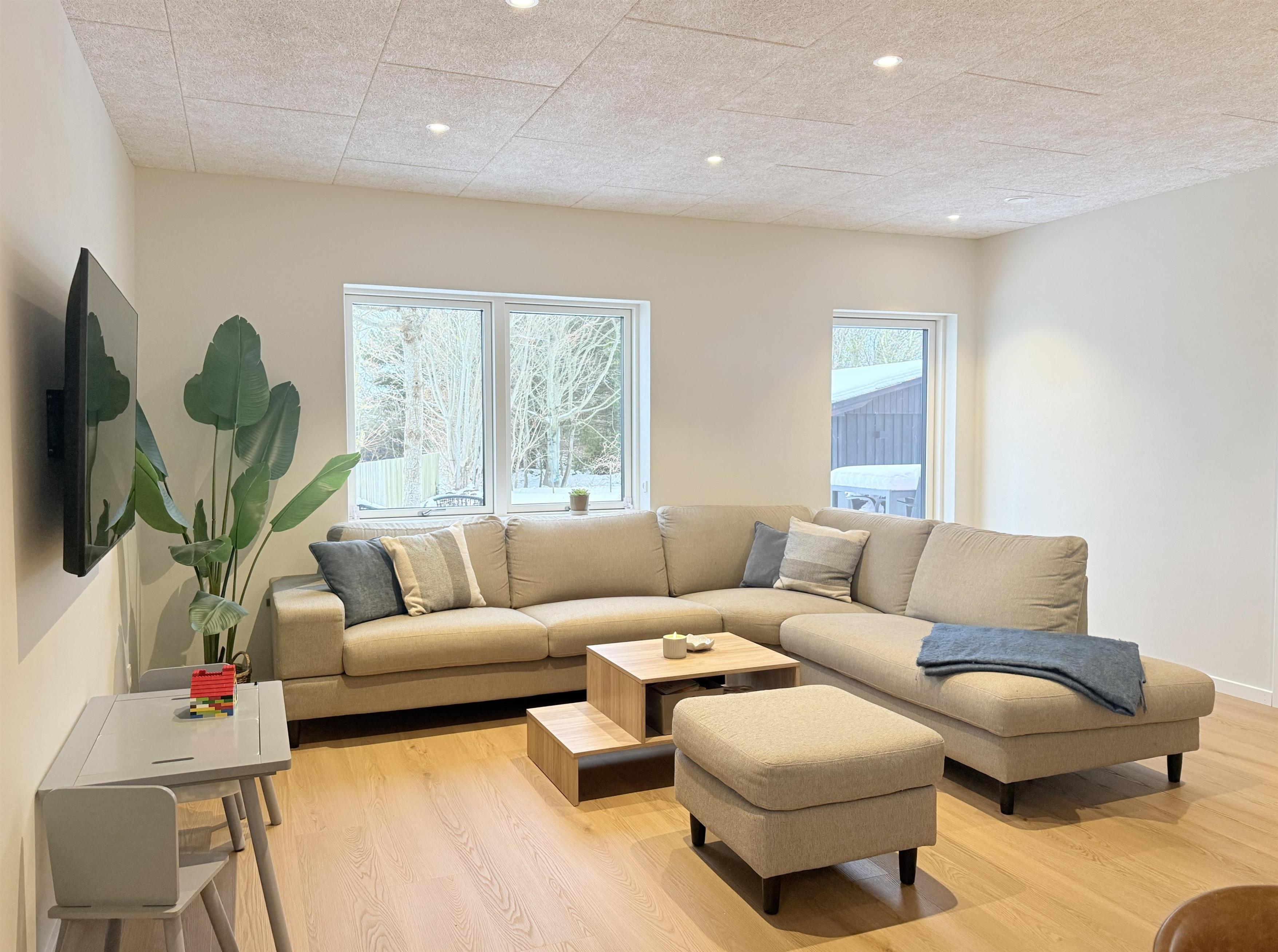 Nyt hos Team Læsø. I hjertet af Vesterø havneby ligger denne totalrenoverede villa (2025), som indbyder til et skønt ferieophold for hele familien. Øens måske bedste, børnevenlige badestrand venter i gåafstand, og der er kort afstand til næsten alle bekvemmeligheder. Selve huset har et flot, rummeligt køkken-alrum med splinternyt køkken og velindrettet stue med behagelige møbler og TV. Der er et skønt lysindfald, og fra stuen er der en praktisk udgang til fin nybygget træterrasse mod sydvest. Her kan ikke mindst sommeraftenerne tilbringes ved grillen, og man mærker her den specielle Læsø-ro og måske havets stille brusen, blot 200 m. fra huset. Der er ialt 4 soveværelser med dobbeltsenge og derudover en treetagers køjeseng til de mindste i det ene værelse. Lækkert nyt badeværelse med brus. Huset udbydes til 6 personer, og med et maks på 8.