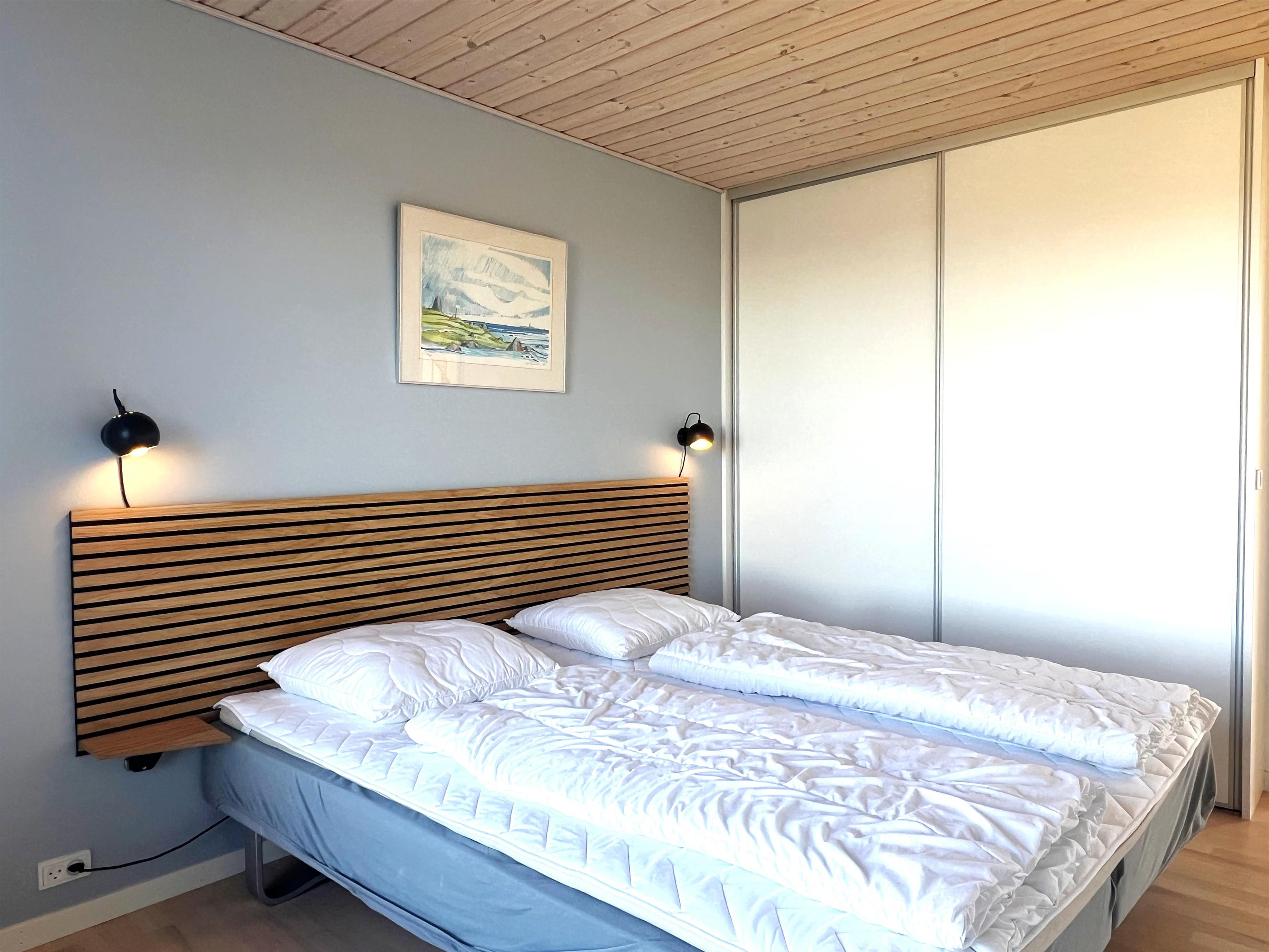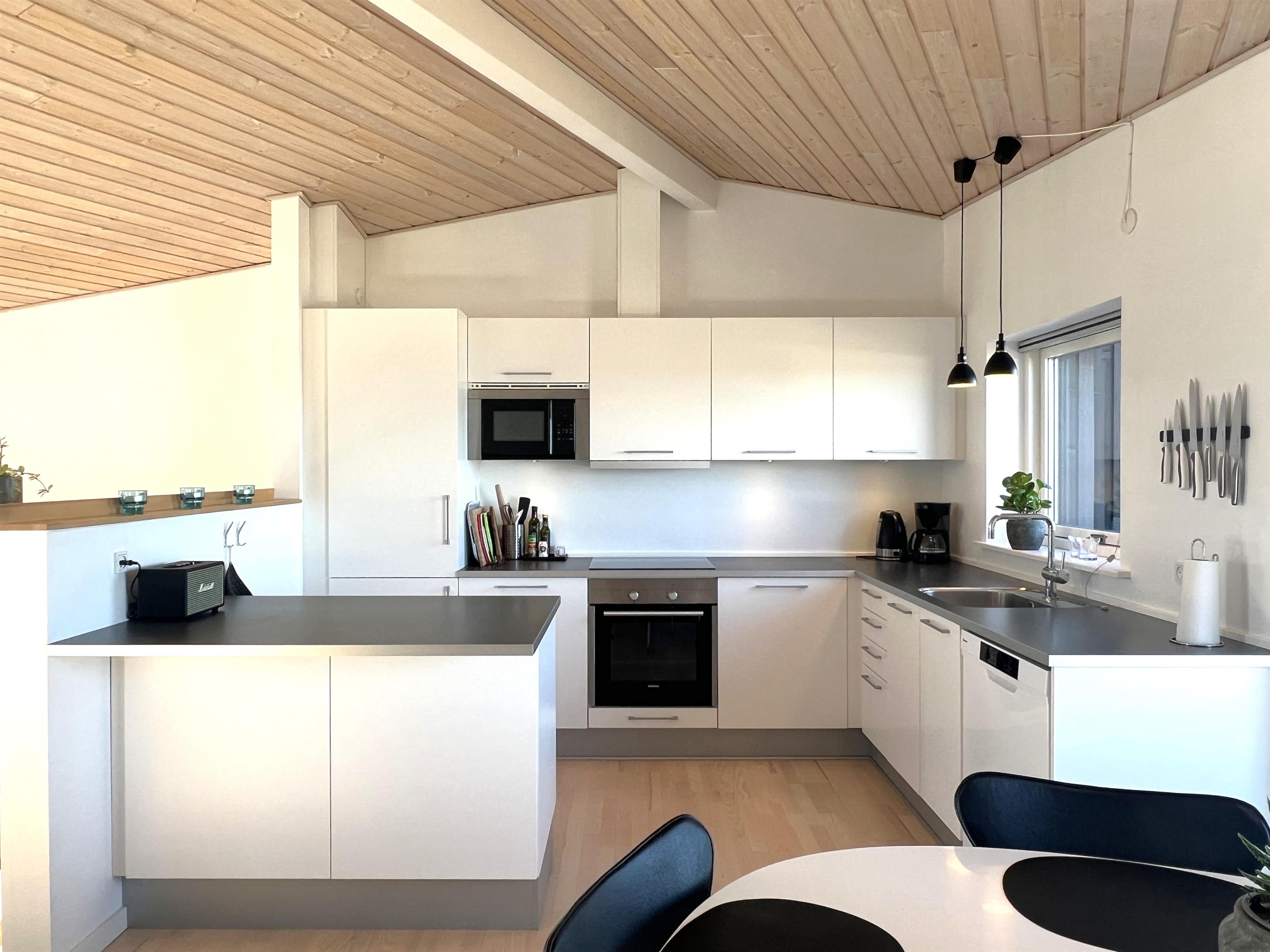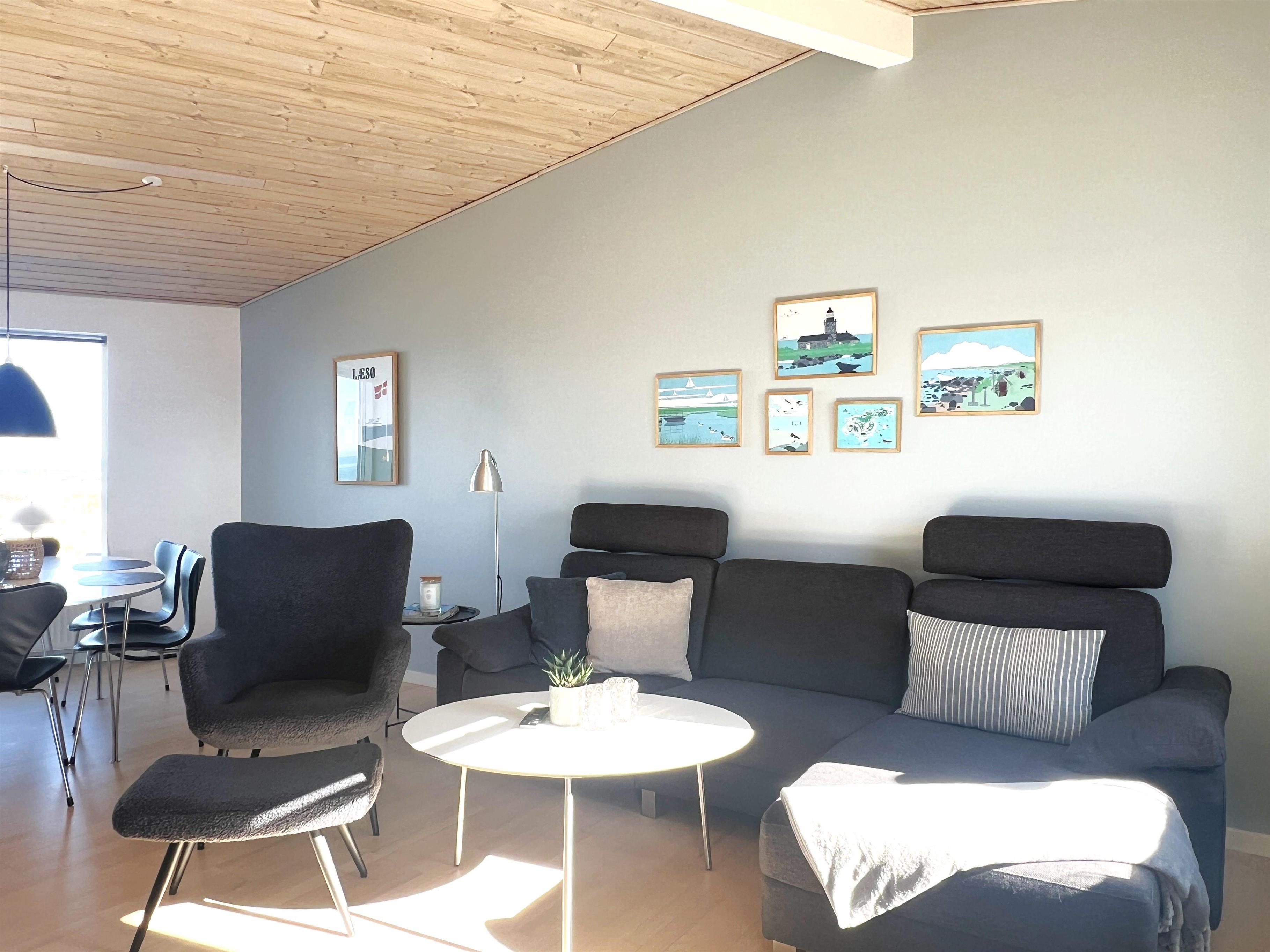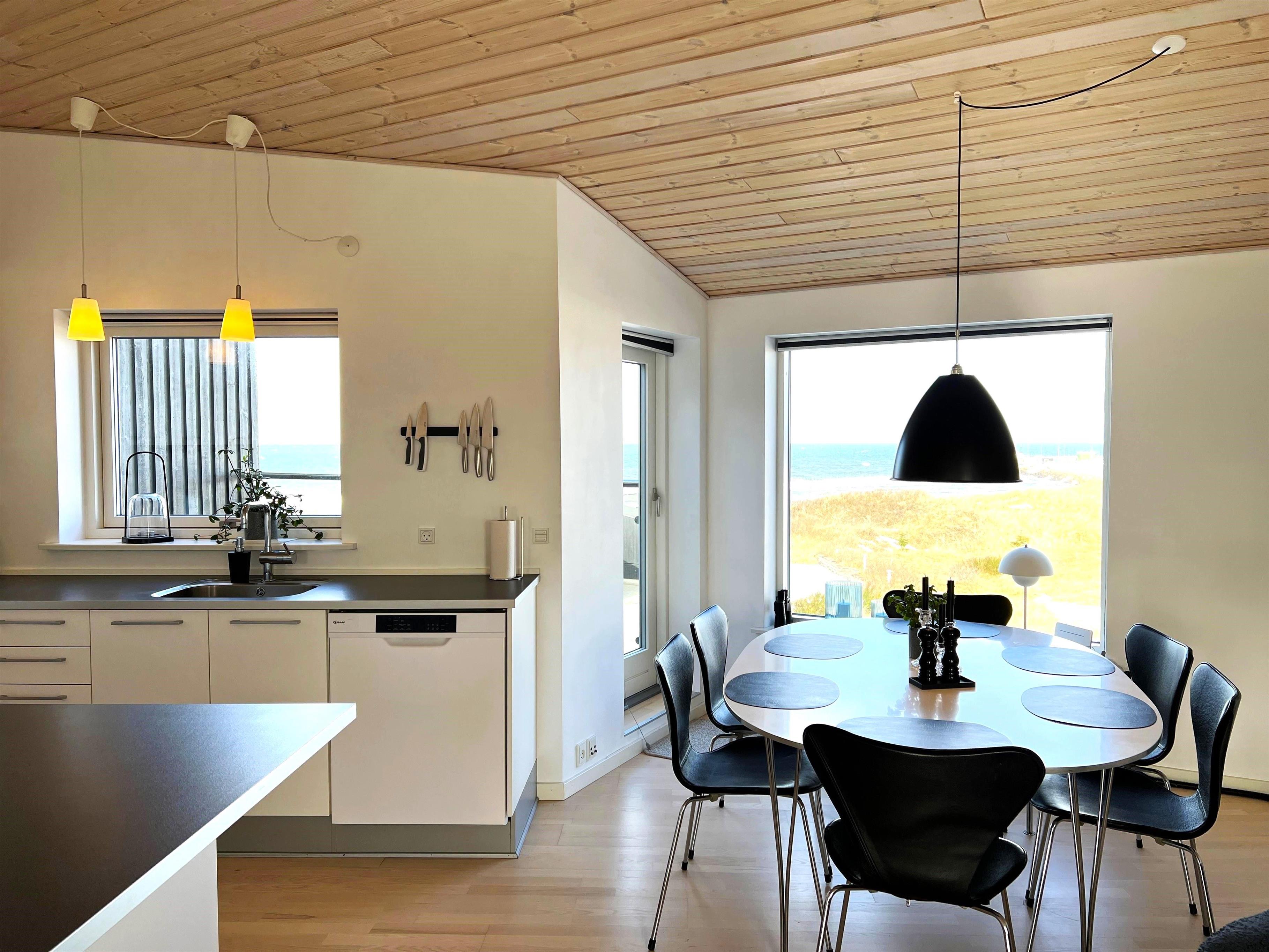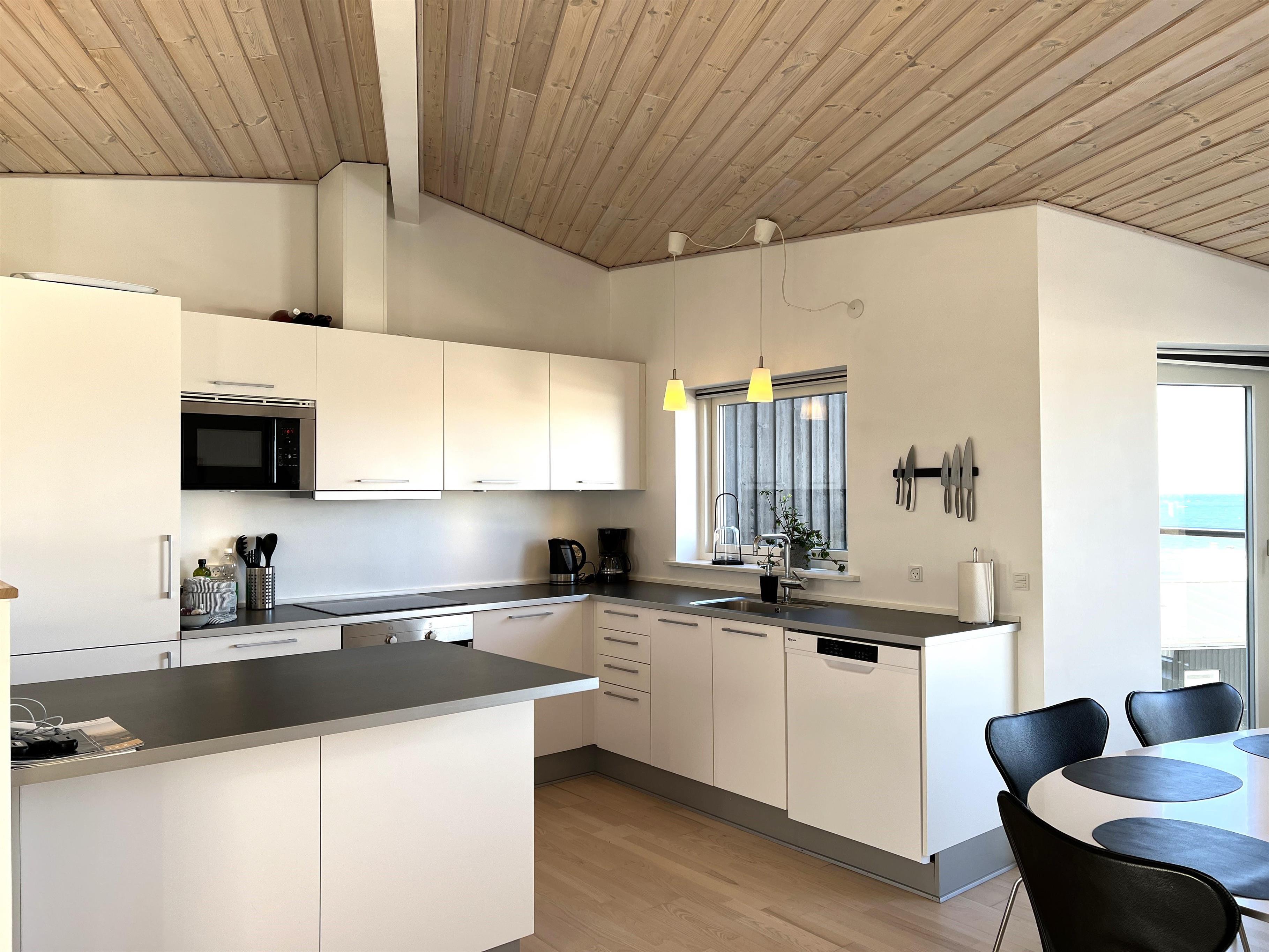 Dette fantastiske udsigtshus, Solhuset, fordelt på tre etager ved en af Læsøs bedste badestrande skaber rammerne for den allerbedste ferie på Læsø. Flotte lysindfald og blåt vand næsten uanset hvor I huset, man befinder sig. Fra Solhuset har man naturen, stranden og det hyggelige havnemiljø i Vesterø lige udenfor vinduet. Selve huset er yderst smagfuldt indrettet. I stueetagen findes to soveværelser med dobbeltseng med udgang til klitterne, marehalmen og klitroserne. Desuden et flot badeværelse med brus. På første sal ligger endnu et soveværelse med dobbeltseng, smart TV samt toilet + brus + spa samt et lille kontor med hyggekrog. På denne etage findes hele to altaner, en på hver side af bygningen. Den ene altan vender mod Kongestranden, og den anden mod stranden og færgehavnen. Begge altaner er udstyret med behagelige havemøbler. På anden og øverste sal findes et stort, flot køkken/alrum med fantastisk lysindfald og panoramahavudsigt. Lækkert sofaområde og smart TV. Udgang til husets tredje altan med behagelige møbler, der skaber rammerne for de dejligste timer i skæret af solnedgangen over Kattegat. Et yderst komfortabelt og moderne udstyret hus med en af Læsøs absolut bedste beliggenheder.