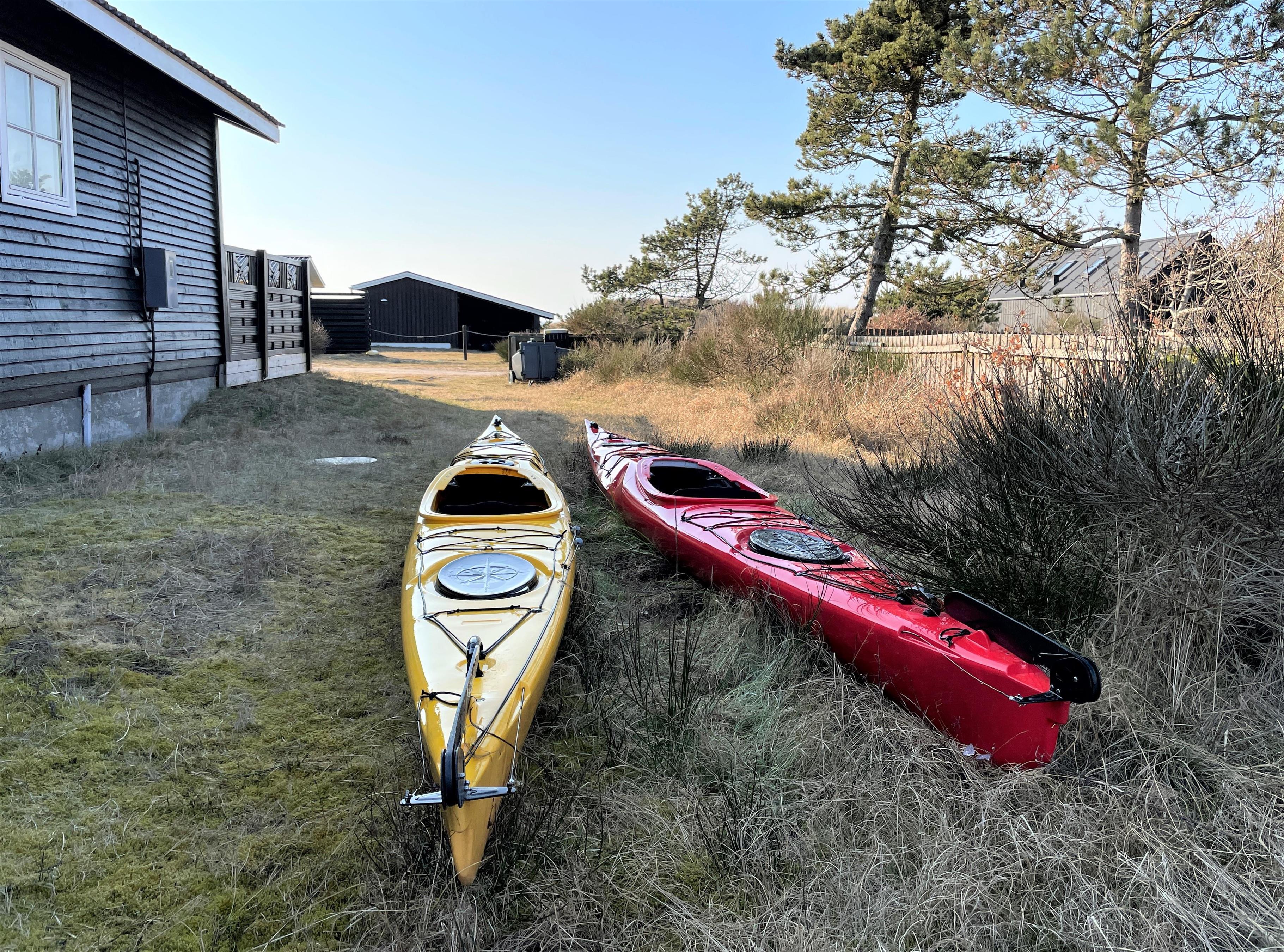 Der er to havkajakker ved huset, som frit kan benyttes af voksne på eget ansvar. Obligatorisk slutrengøring.