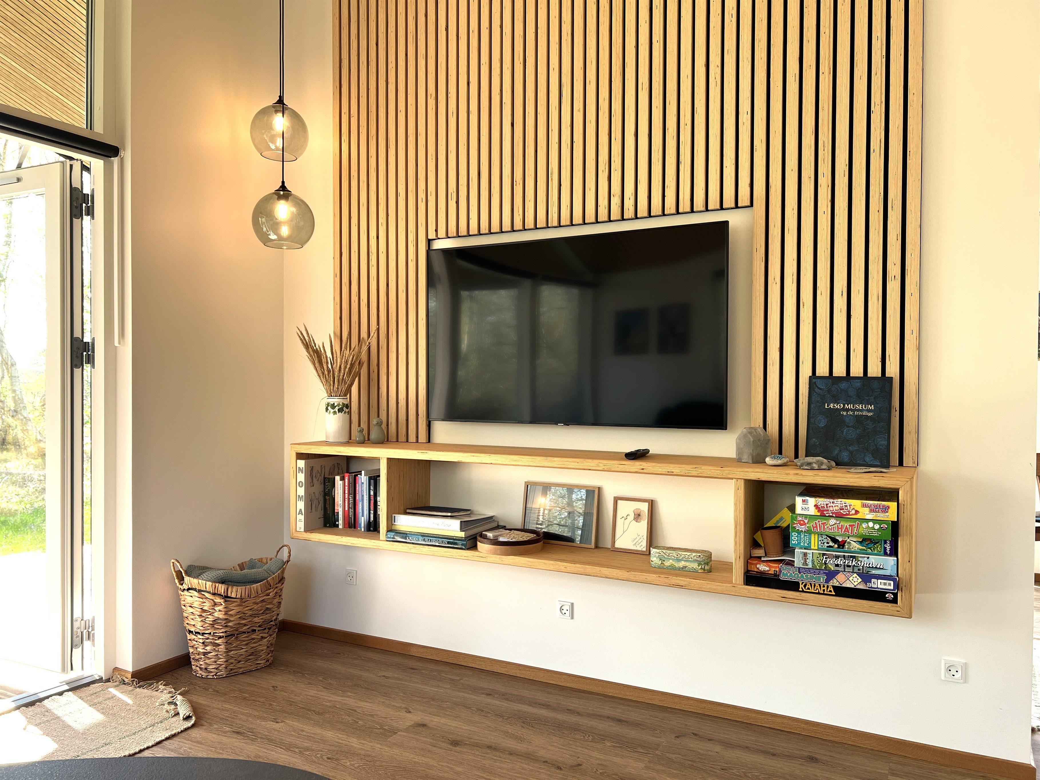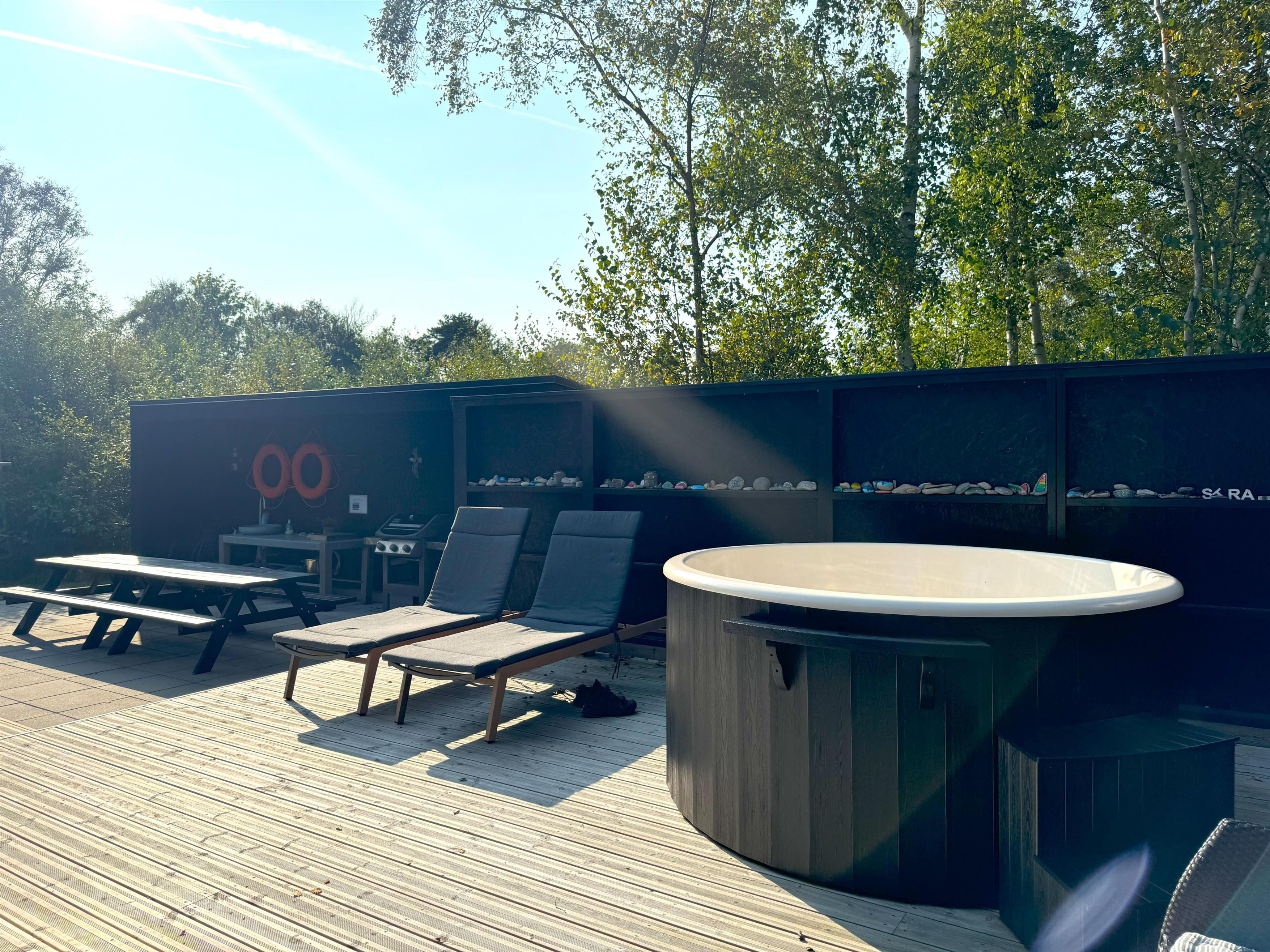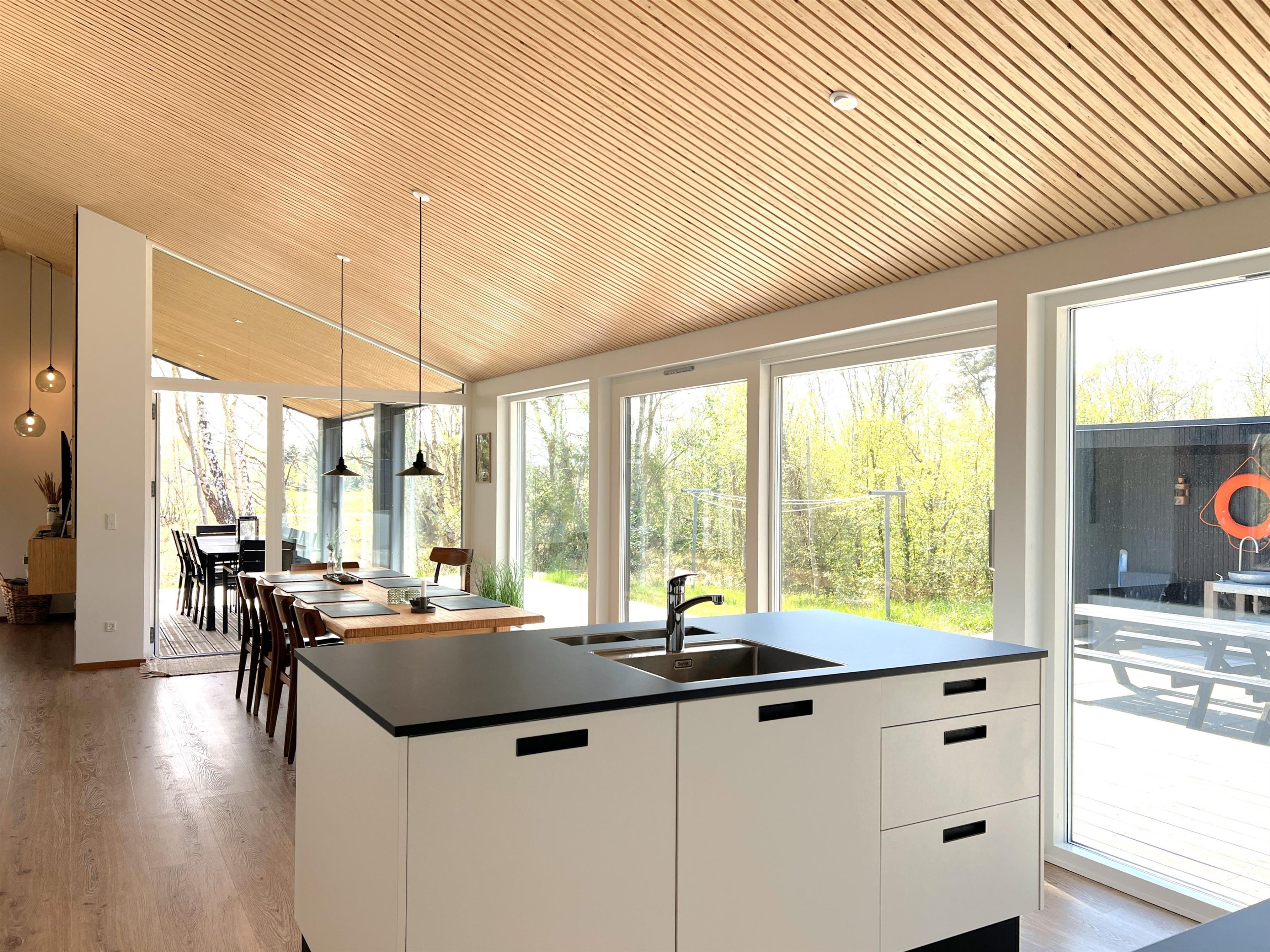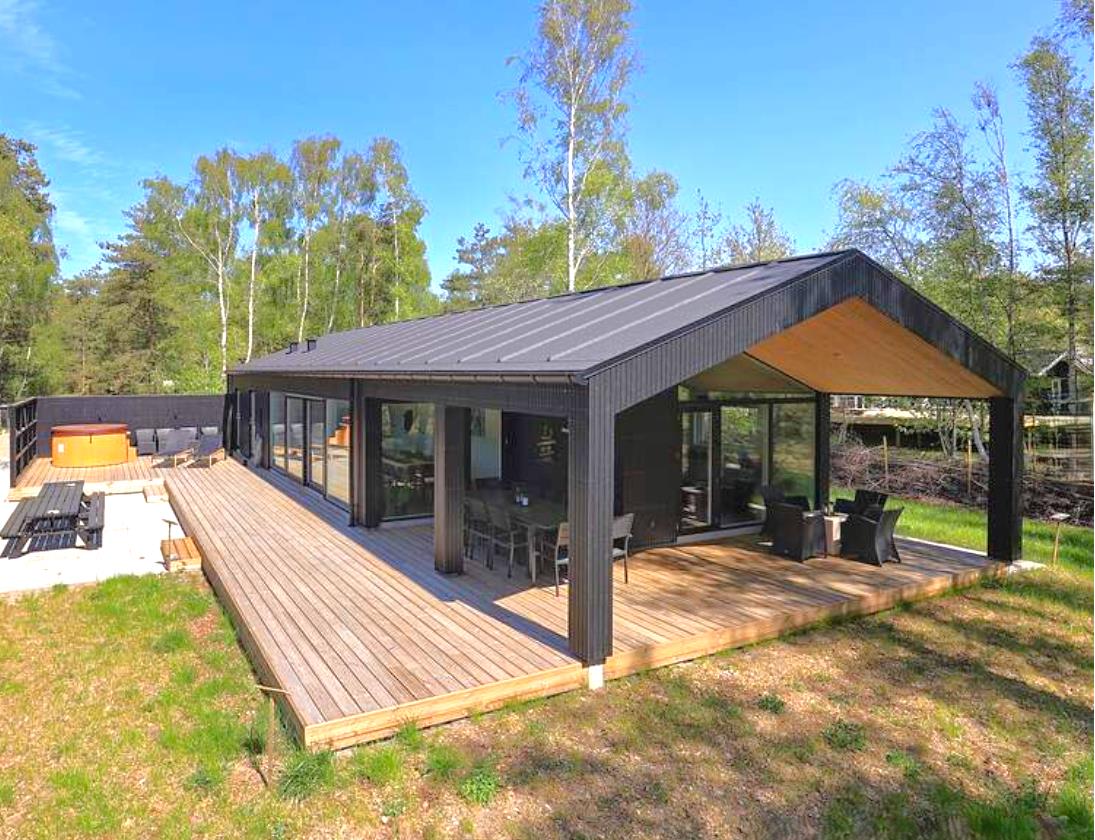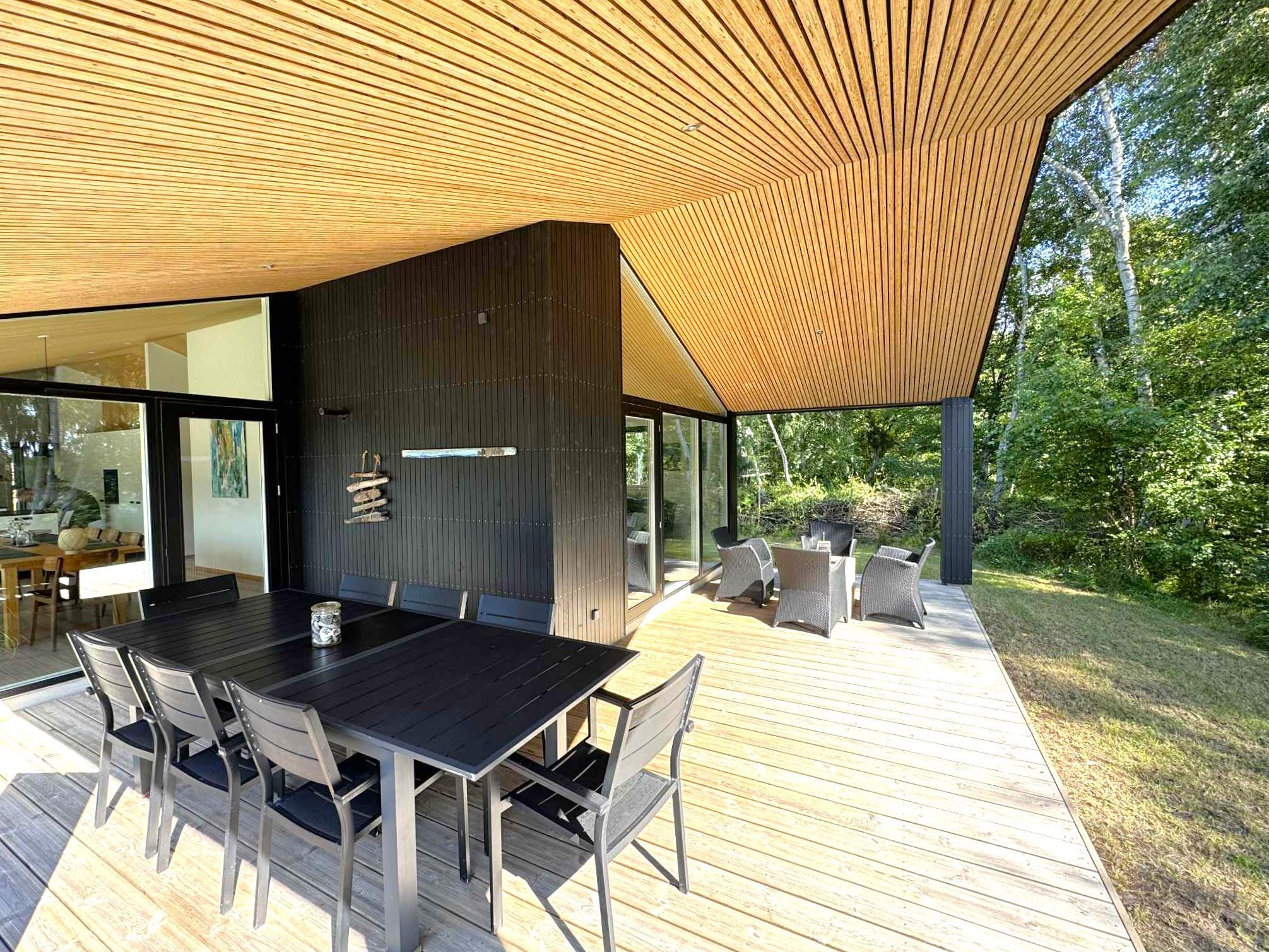 NYT hos Team Læsø. I hjertet af Vesterø ligger dette fantastiske, splinternye feriehus, som nemt rummer hele 9 personer. Huset har alle moderne faciliteter, og der er bare kælet for detaljerne overalt i huset. Der er et imponerende, flot, lyst, velindrettet og rummeligt køkken-alrum med køkken-ø, spisebord og sofa/TV-afdeling. Der er flere udgange til husets skønne terrasser, hvoraf en del er overdækket og man kan altid finde en solkrog, hvor man kan nyde både morgen og aftensolen. Der er endvidere etableret en fin gårdhave med grill og udekøkken,og vildmarksbadet frister konstant med sin placering i forlængelse af gårdhaven. Huset har fire gode soveværelser, hvoraf tre er med dobbeltsenge og et er med køjeseng, hvor nederste seng er 140 cm. Der er to moderne, fine badeværelser, og der er direkte udgang til terrasse fra det ene. Huset opvarmes med energivenlig luft/vand varmepumpe, og ved husets P-plads er der installeret ladestation til elbil.
