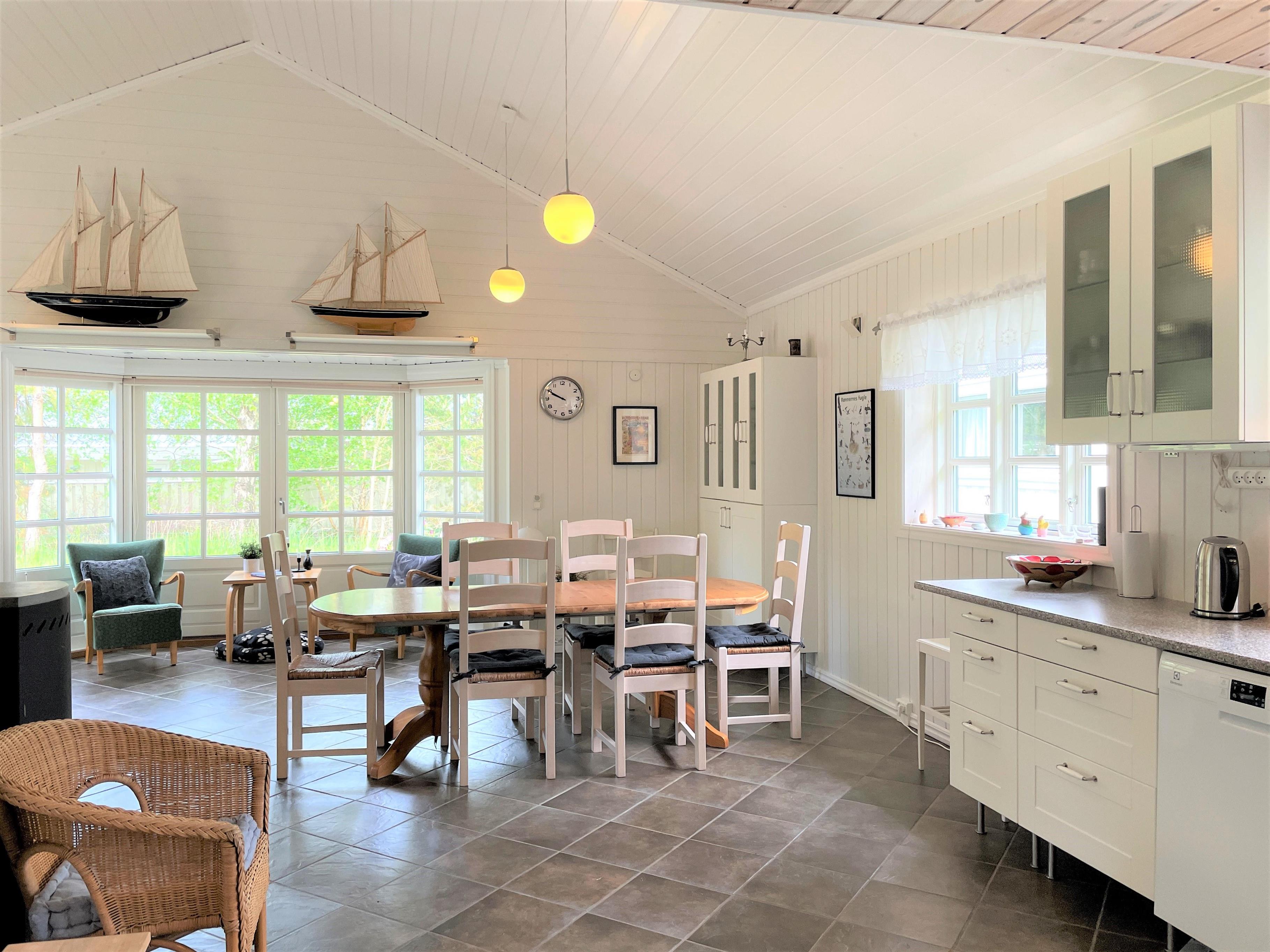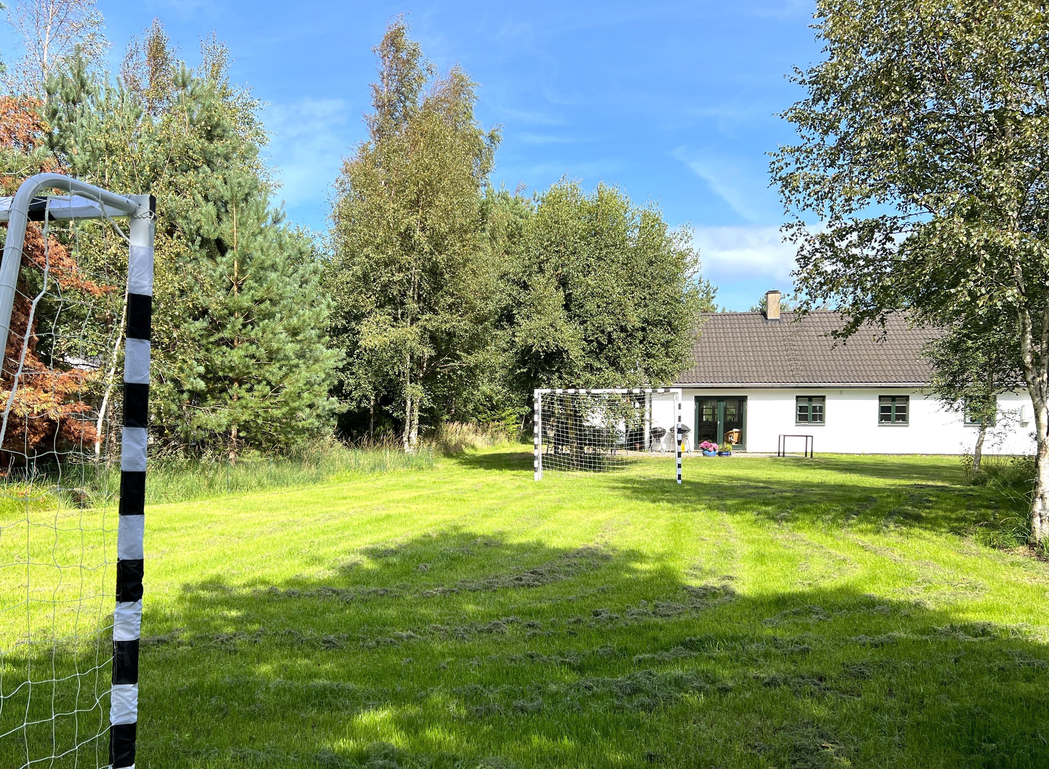 Gode muligheder for at nyde solen og sommeraftenerne på den store terrasse sydvest for huset. I haven kan børnene rigtig muntre sig, både på den nyanlagte fodboldbane og på trampolinen, og der er masser af plads til hunden på den store indhegnede grund. Et rigtig dejligt hus til den store familie eller til to familier, der vil nyde ferien sammen.