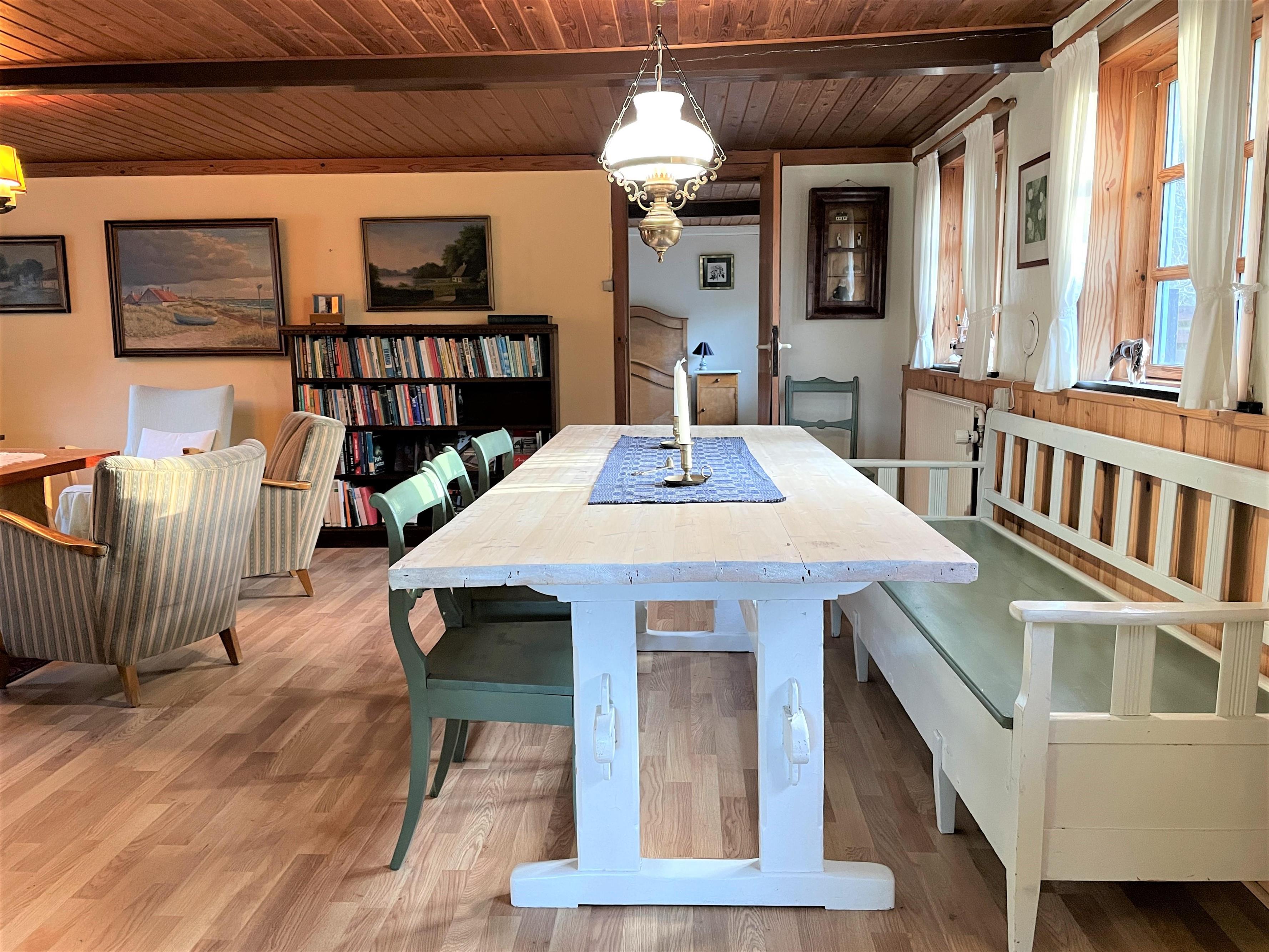 Lavt til loftet, men en enestående mulighed for at prøve at bo i et stråtækket hus og mærke det dejlige klima, som kun stråtage frembringer.