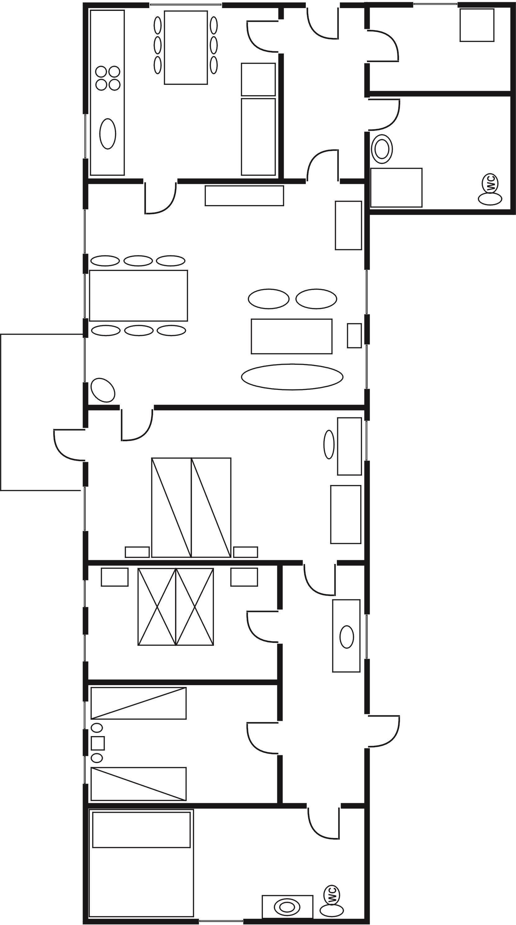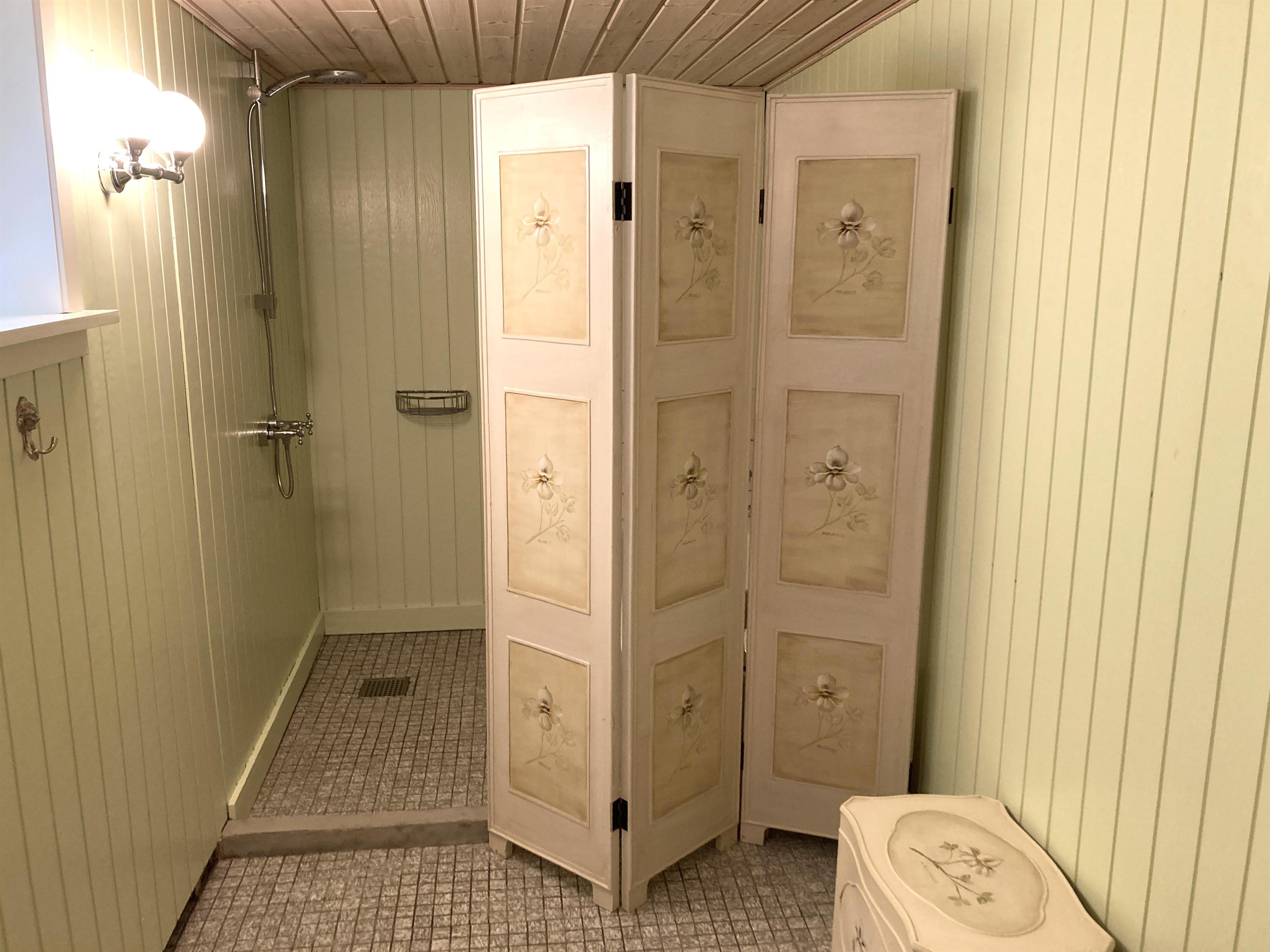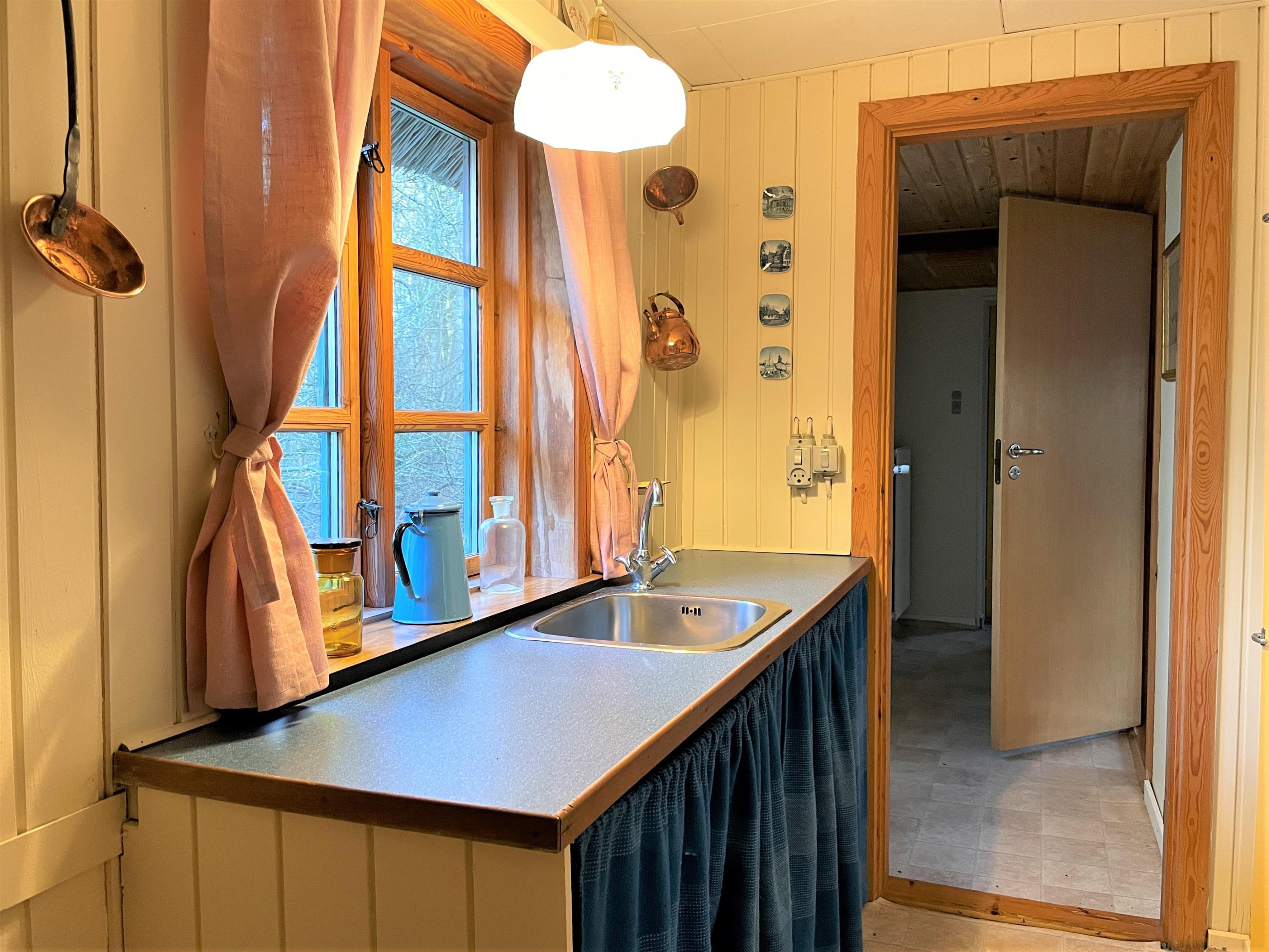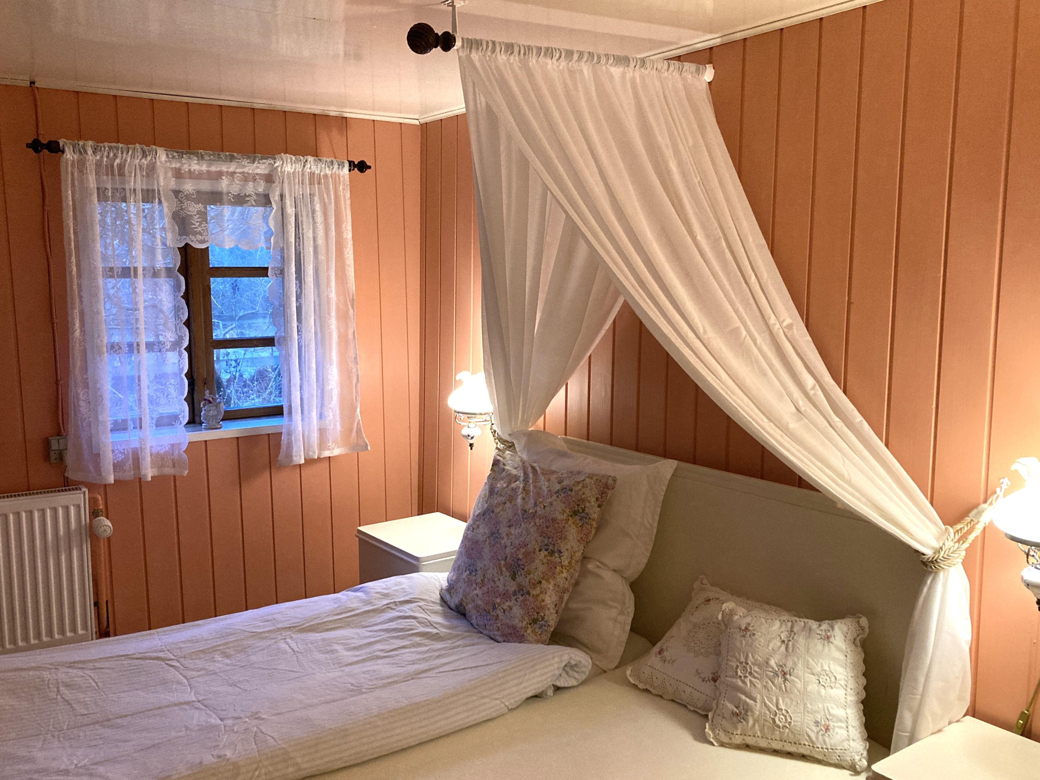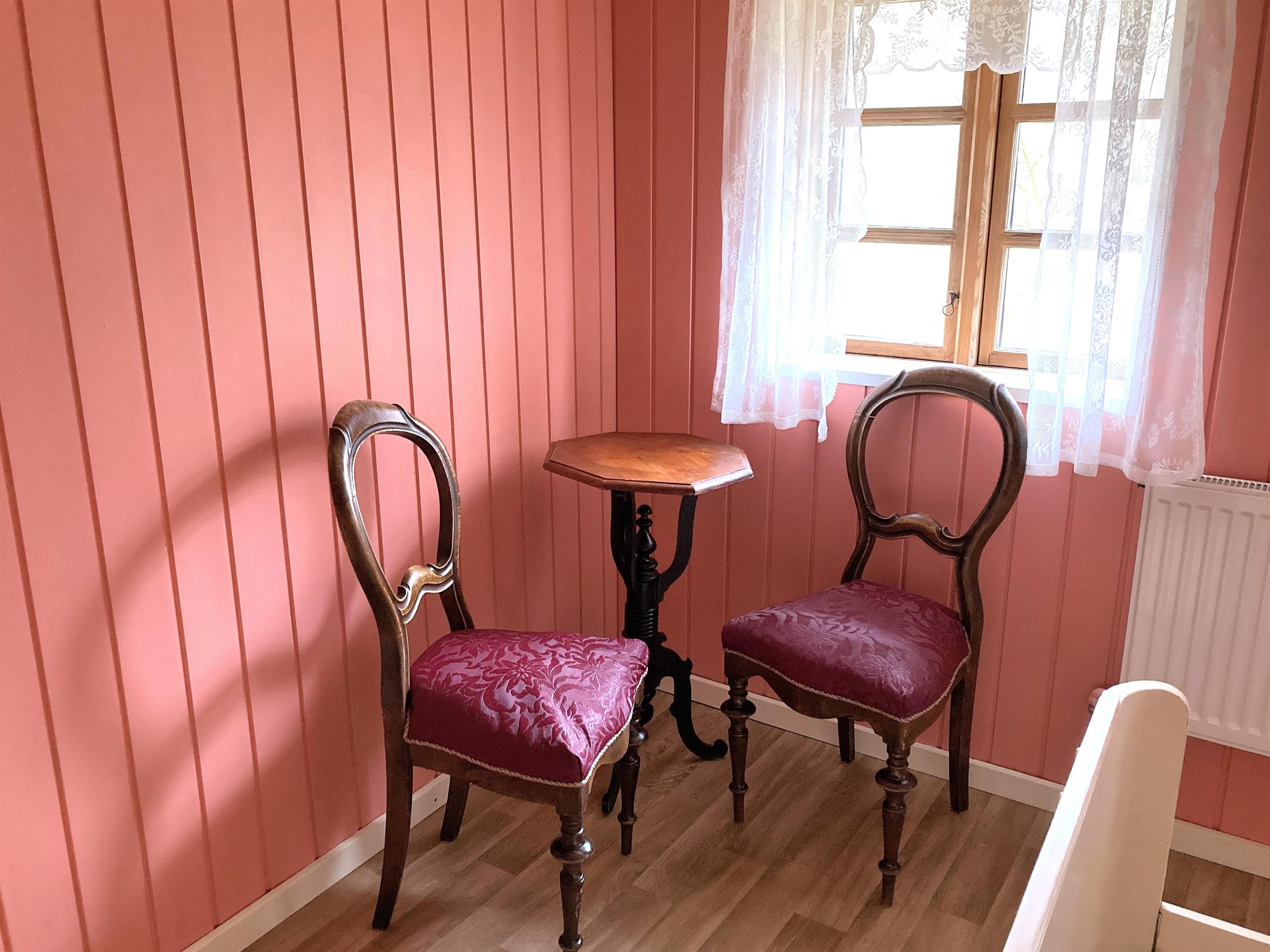 Hyggelig indretning med møblering, som virkelig passer til husets stil. Tre soveværelser; to med dobbeltseng, et med to enkeltsenge. To badeværelser med brus.