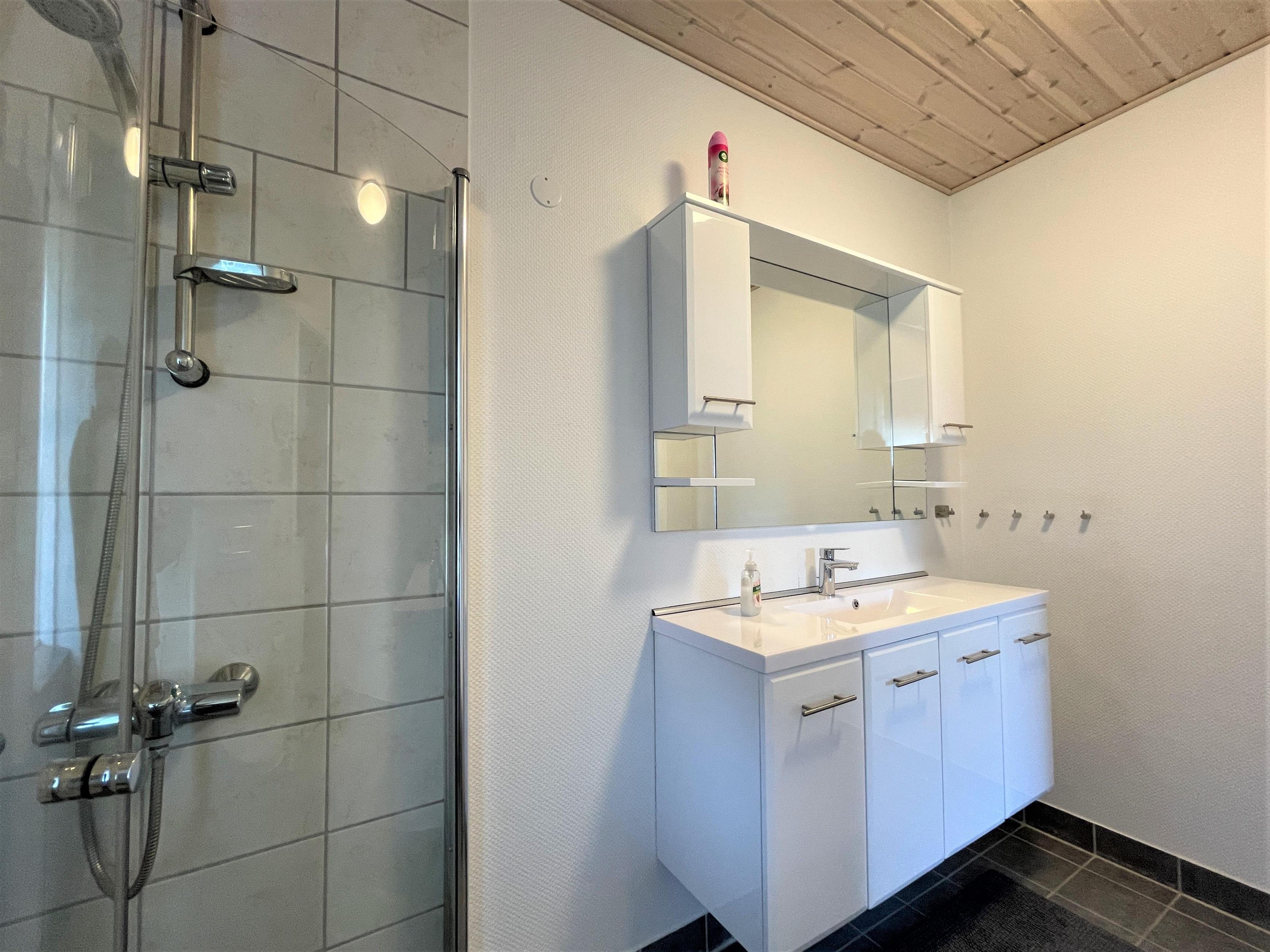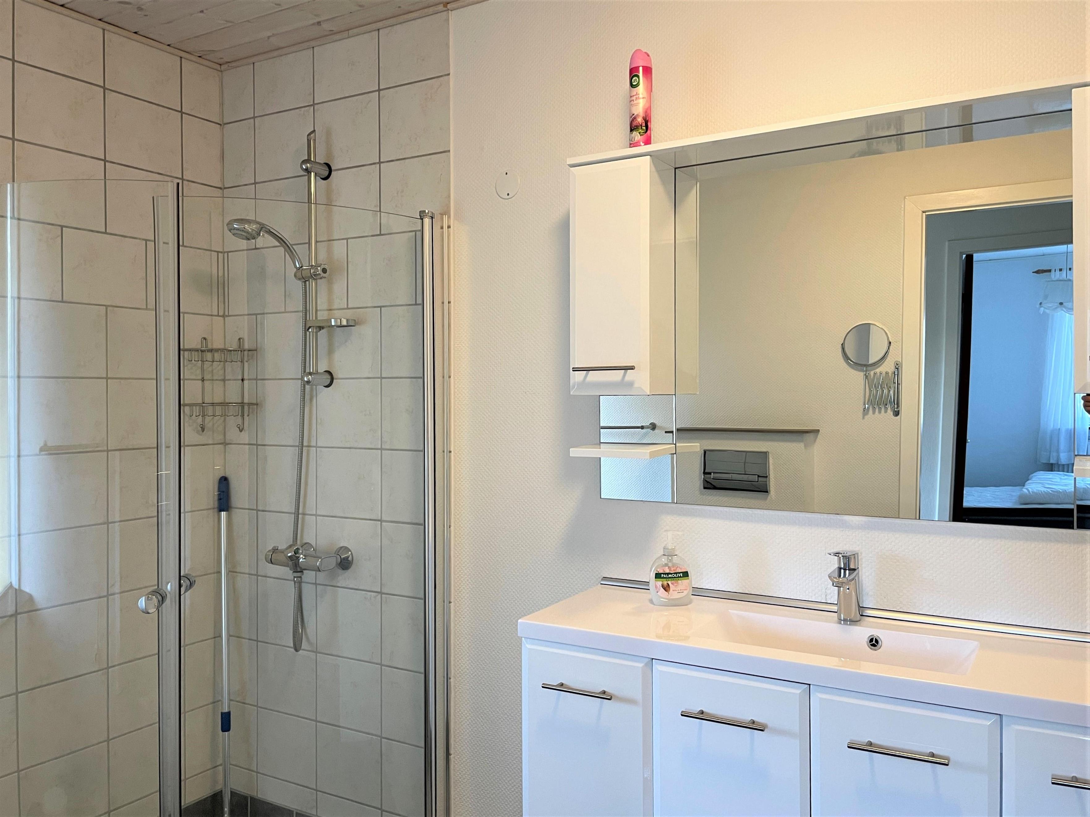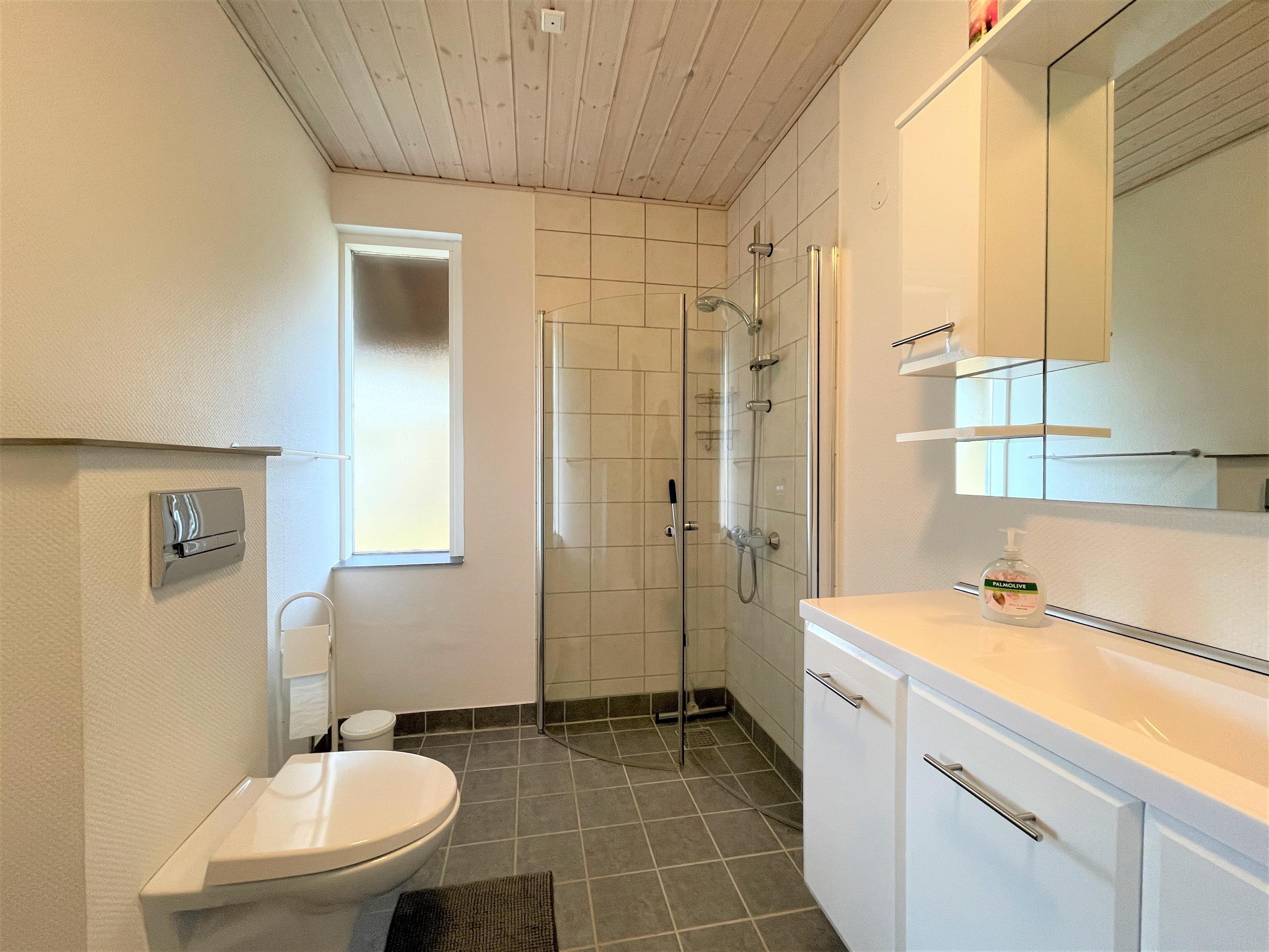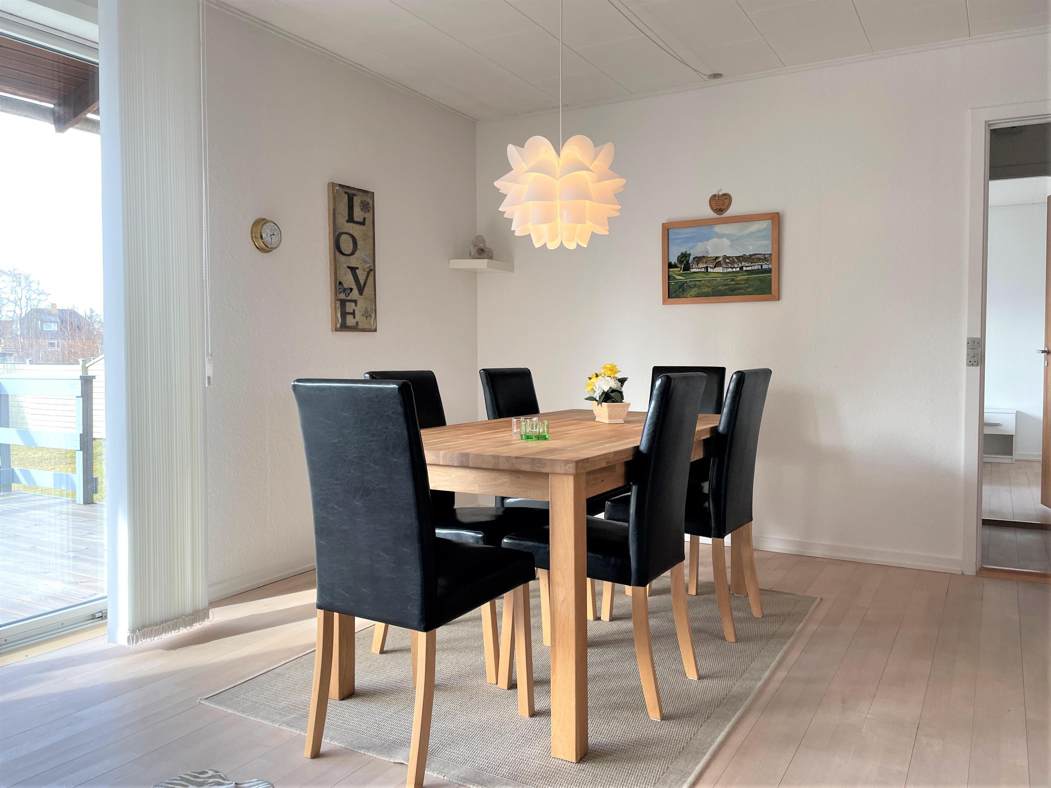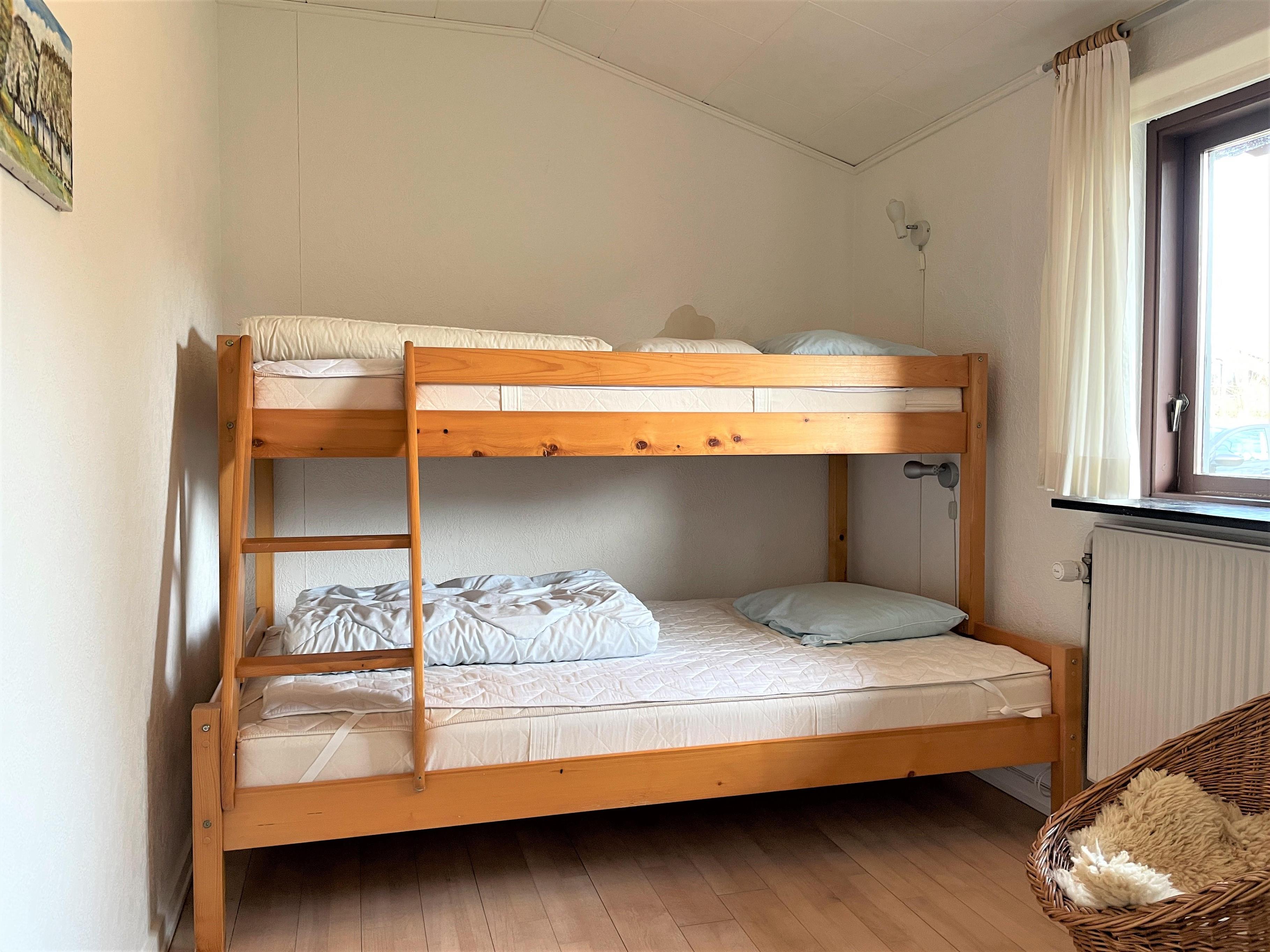 Køkken med lille hyggelig spisekrog. Nyrenoveret badeværelse. To soveværelser med gode dobbeltsenge, og et soveværelse med bred køjeseng.