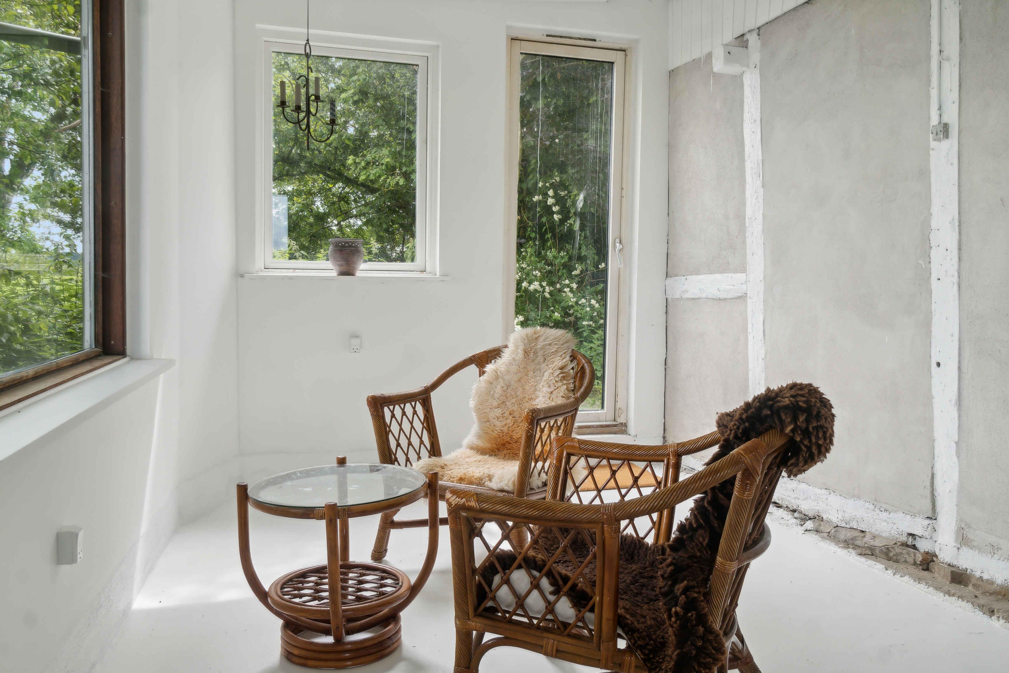 Charmerende bindingsværkshus med privat indkørsel og smuk natur nær strand og skov.
