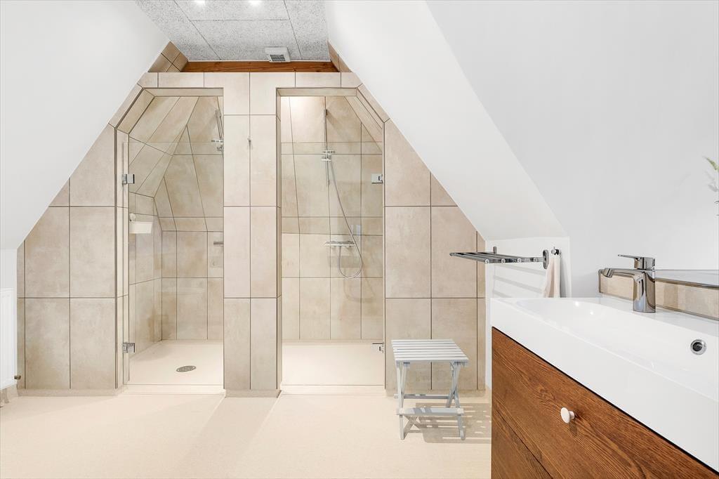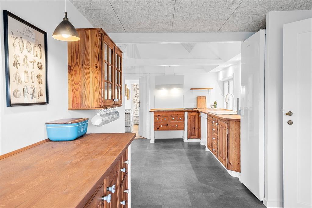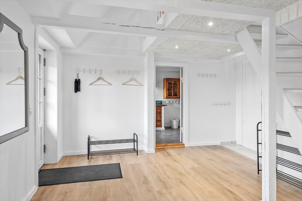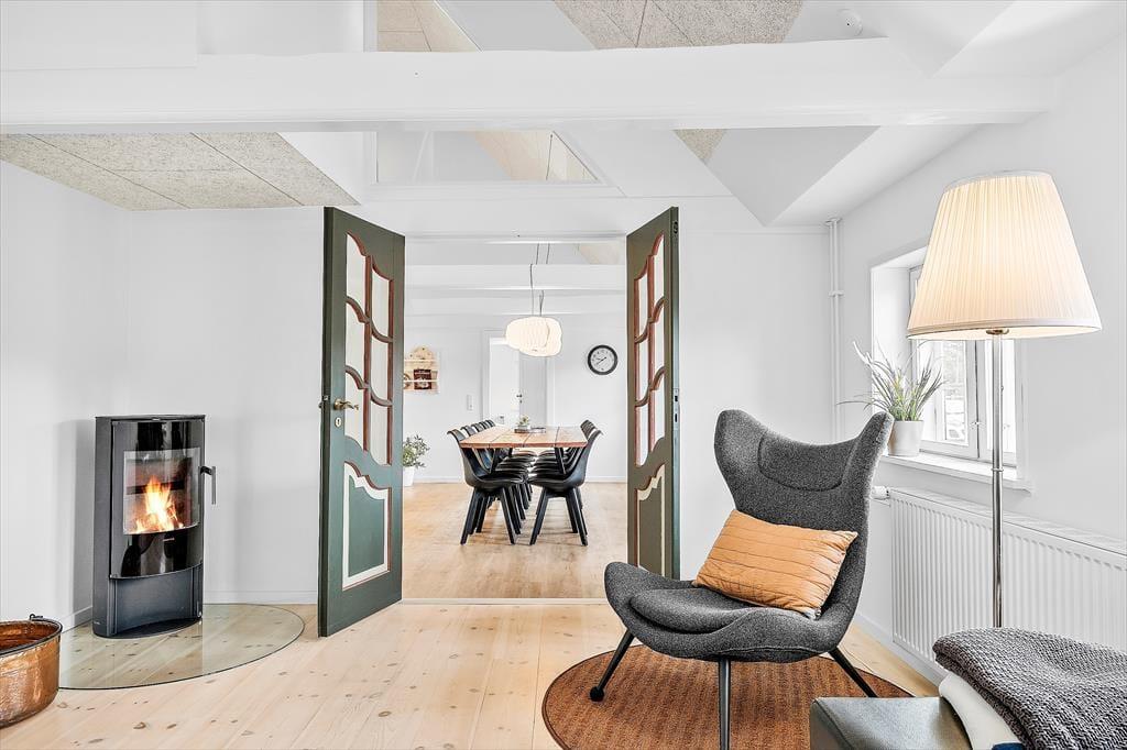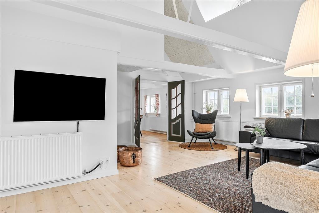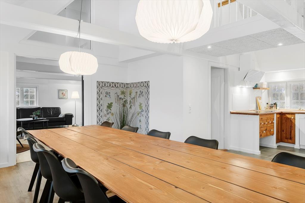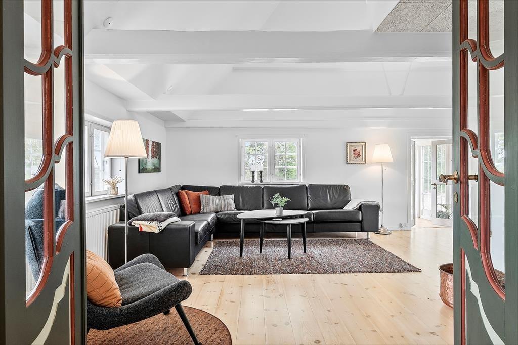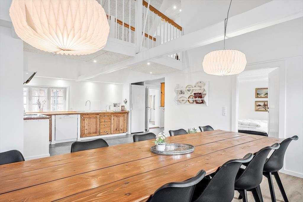Sommerhusets historie går helt tilbage til 1827, men det er tydeligt at se, at der er sket meget siden opførelsen. Det flotte stråtag er helt nyt, og inde bag rødstensfacaden bliver du mødt af en feriebolig i tiptop stand. Efter en grundig renovering i 2022 fremstår rummene lyse og indbydende med loft til kip, akustiklofter, flotte gulve og stilfuldt interiør. Samtidig minder mange kønne og klassiske detaljer dig om, at du befinder dig i et traditionelt Rømø-hus – se bare den flot dekorerede dobbeltdør mellem opholdsstuen og køkken-alrummet. Husets nyfortolkning af et gammeldags rammekøkken passer glimrende ind i det store køkken-alrum, hvor du kan samles til lækre middage om langbordet. Stuen indbyder til hyggeaften med sit store fladskærms-tv og brændeovnen, og når vejret er til det, er den tilstødende udestue en skøn opholdsplads. Fem gode soveværelser er fordelt på stueplan og førstesalen, og planløsningen byder desuden på to flotte badeværelser, et gæstetoilet og en rummelig entré med vaskefaciliteter.