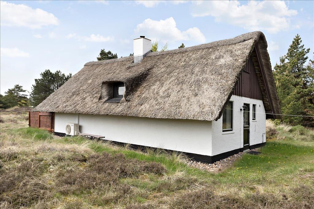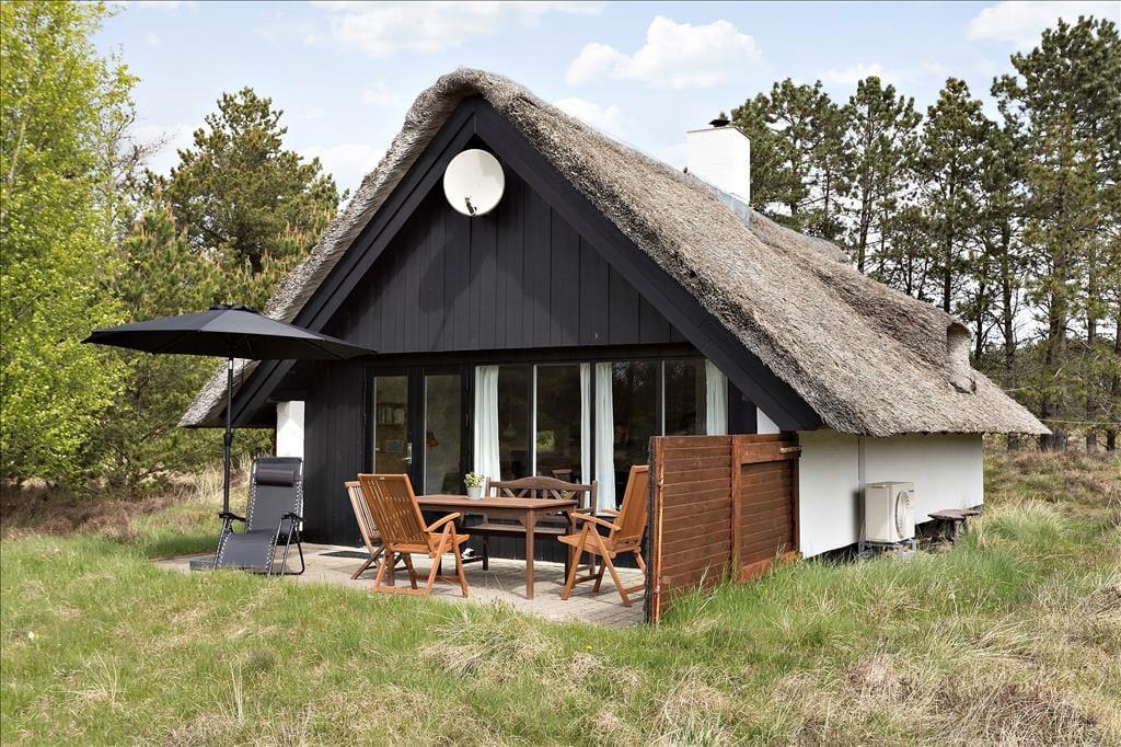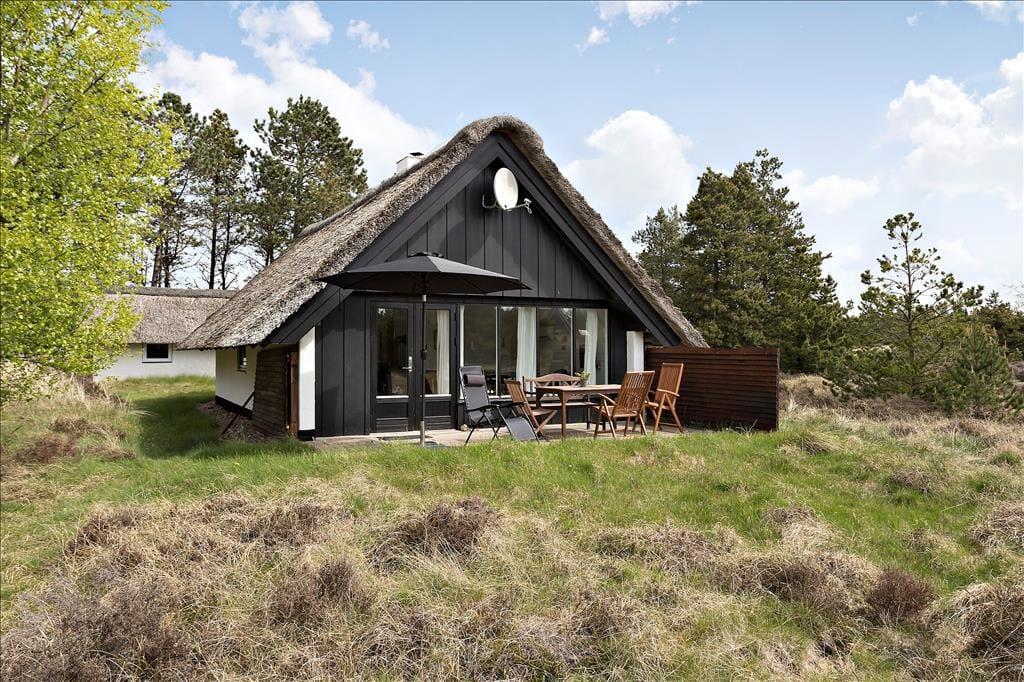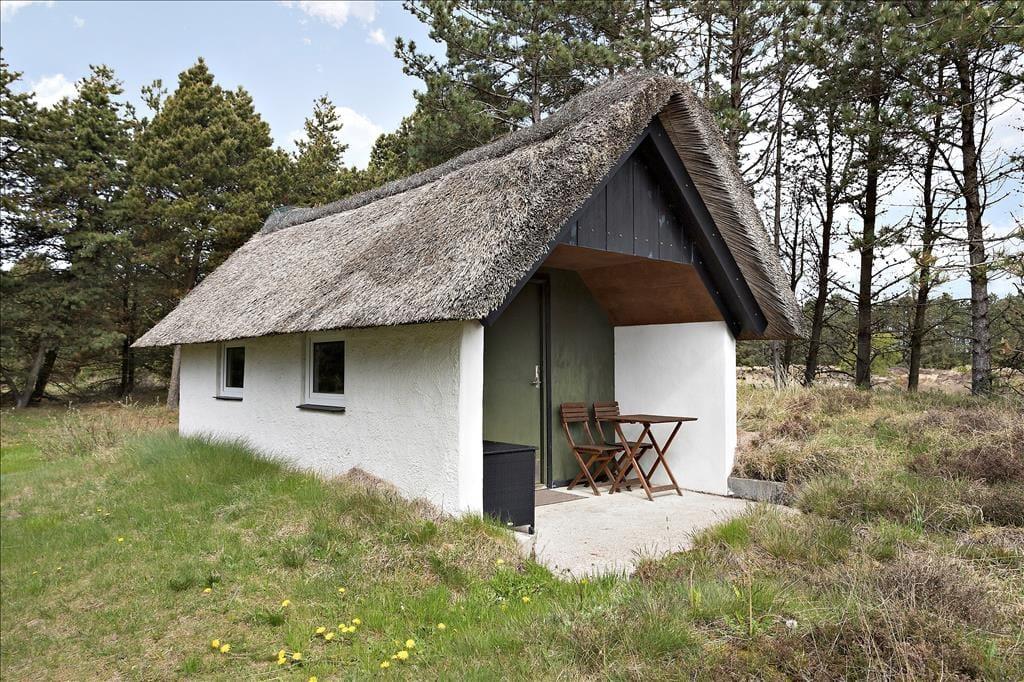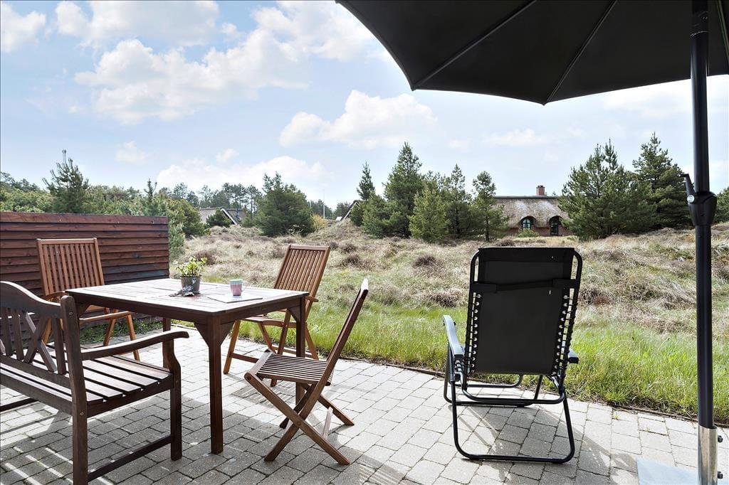 Stuens havedør giver jer direkte adgang til en dejlig sydvendt terrasse, hvor I kan slænge jer i havemøblerne og nyde solskin, fuglesang og feriefred. Ved udhuset har I også en mindre, delvist overdækket terrasse, der er østvendt og derfor et herligt sted at nyde dagens første solstråler. Den lyngklædte naturgrund måler 2.500 m², så der er god afstand til naboerne og plads til store armbevægelser.