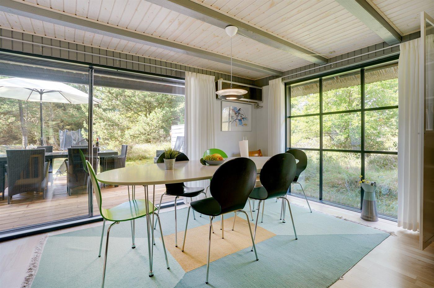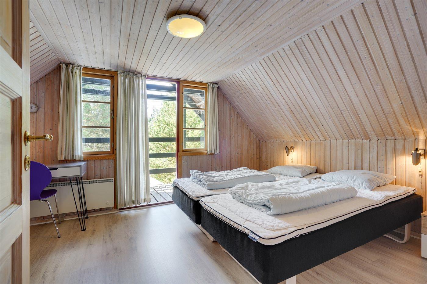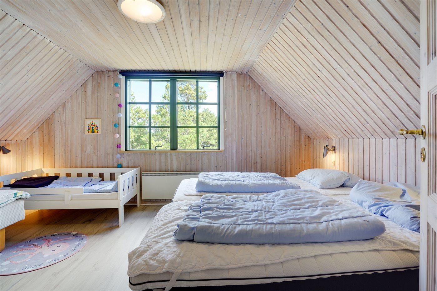 Flot sommerhus i sten med stråtag i 2 etager, bygget i 1973 og senest moderniseret i 2016, beliggende på en stor naturgrund med store træer og gode læmuligheder i det rolig område, Vesterhede. Til huset hører en overdækket balkon samt en delvist overdækket terrasse med havemøbler. Badeværelse med gulvvarme. Sauna. Det dejlige, lyse køkken med gulvvarme er udstyret med bl.a. opvaskemaskine, mikrobølgeovn, fryser og vaskemaskine. Den flotte opholdsstue er indrettet med brændeovn, DVD-afspiller, Blaupunkt fladskærms-TV med parabolantenne og stereoanlæg med radio og CD-afspiller. Desuden gratis, trådløs internetforbindelse til rådighed (computer medbringes). 3 soveværelser; 2 med dobbeltseng på 1. sal og 1 med dobbeltseng samt enkeltseng i stueetagen . Der er installeret energibesparende varmepumpe. Til de små feriegæster er der barneseng, høj barnestol, gynge og sandkasse til rådighed. På grunden, som ligger tilbagetrukket fra vejen, er der fodboldmål, trampolin og god plads til leg.