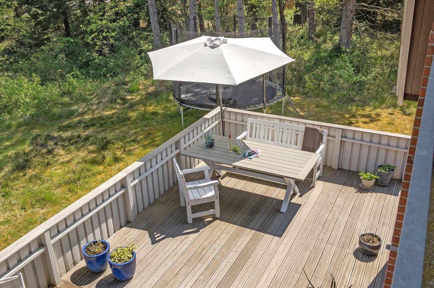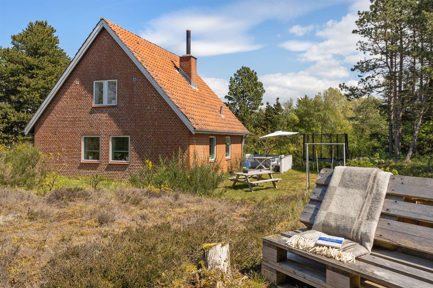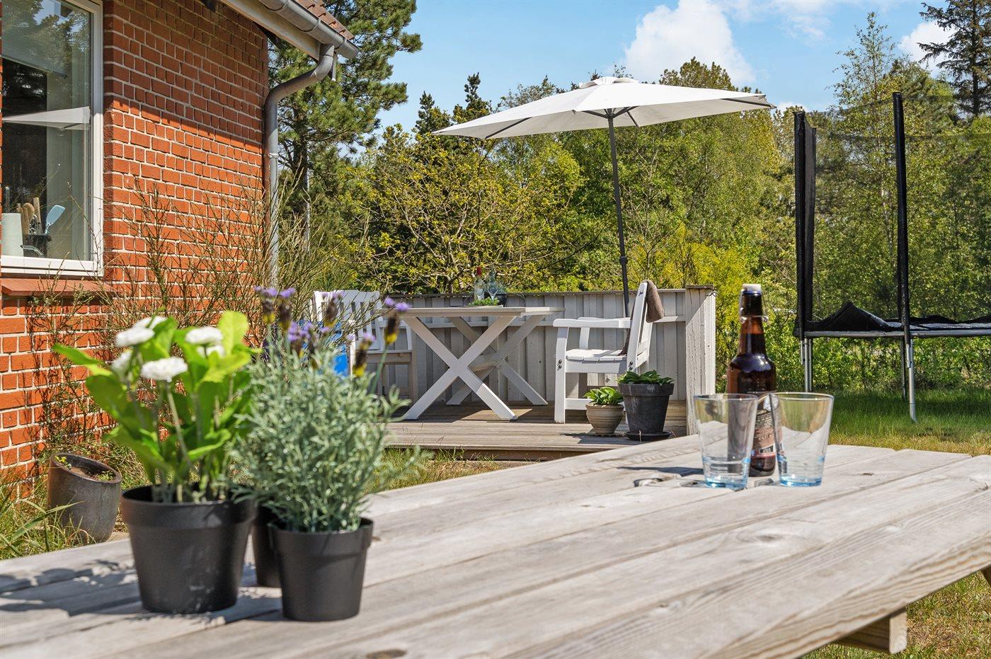Dette hyggelige sommerhus ligger på en stor naturgrund i Vesterhede. Til huset hører et dejligt stort og til dels overdækket terrasseareal.
