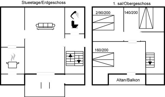 Der er i alt 3 soveværelser. Sovepladserne fordeler sig på: 4 sovepladser i dobbeltsenge. 2 sovepladser i enkeltsenge. Derudover er der 1 stk. barneseng.