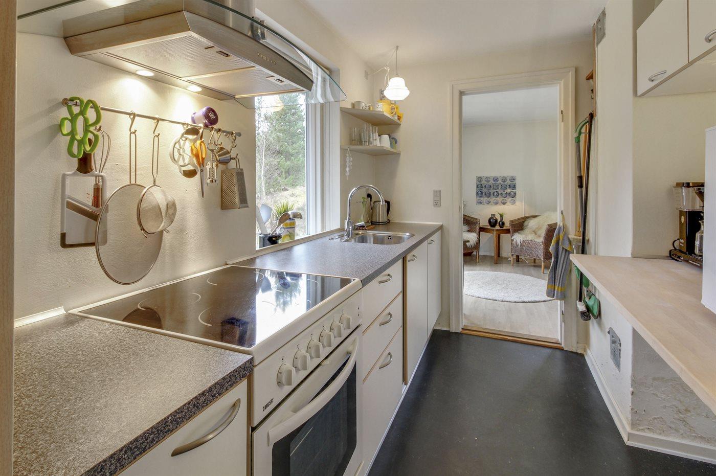 Køkkenet er udstyret med 1 køleskab. Der er 4 keramiske kogeplader, varmluftovn.