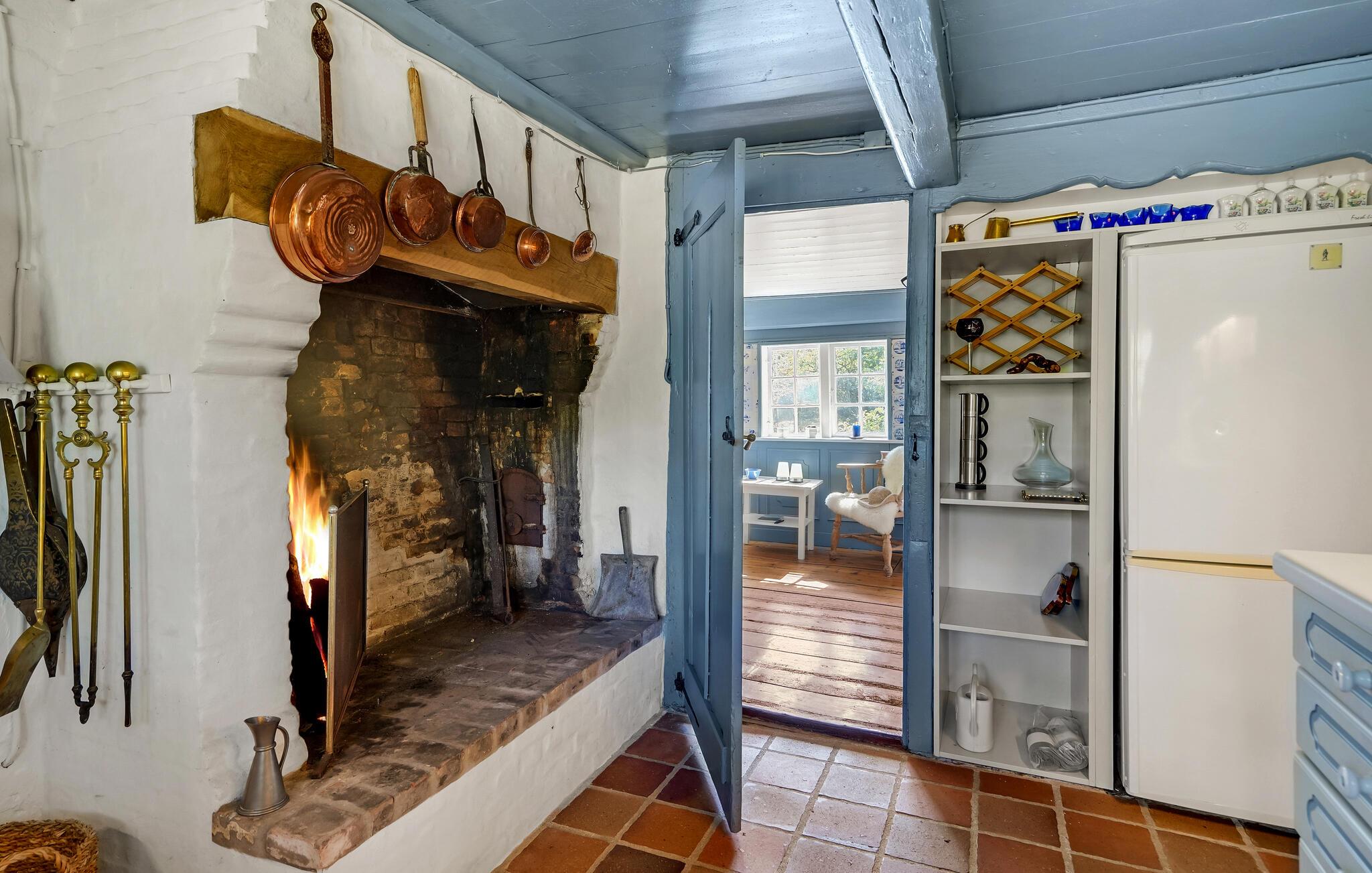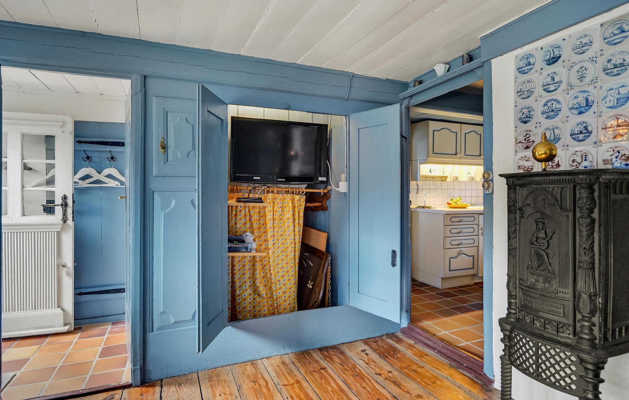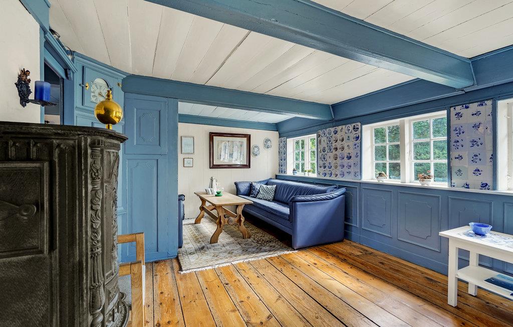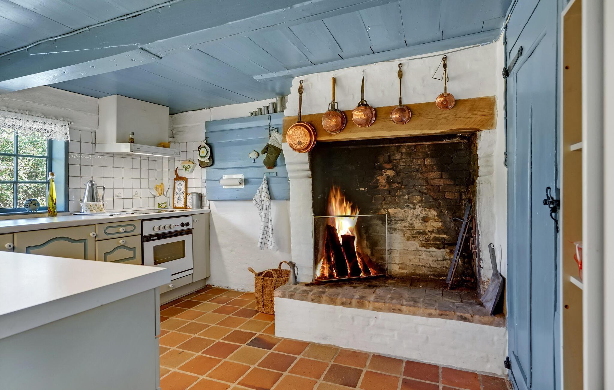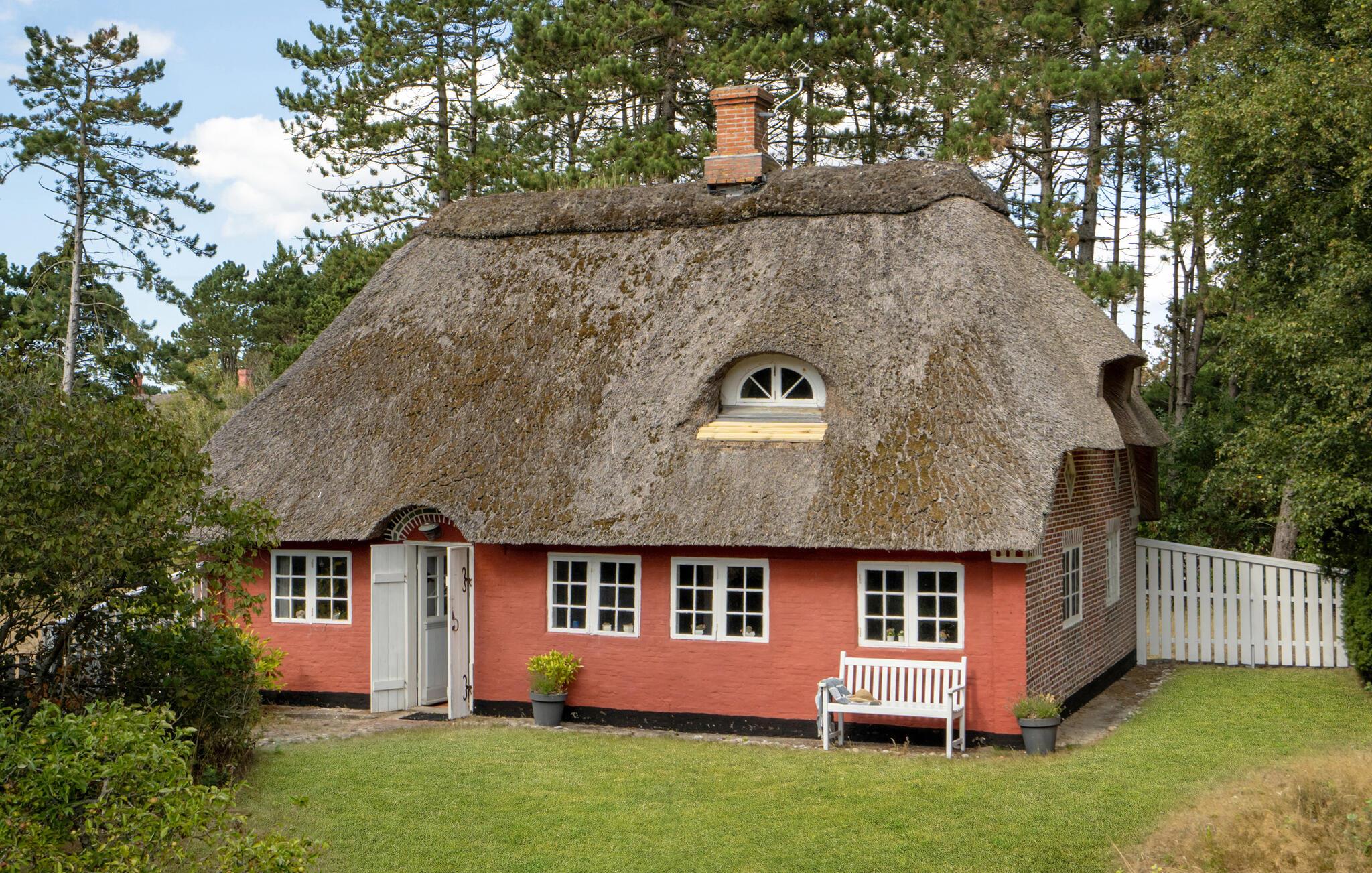 I rolige omgivelser, tæt på marker og skove, finder I dette smukke, bevaringsværdige hus med stråtag. Huset udstråler hygge og en god atmosfære og er smukt indrettet med træpaneler og mange spændende historiske detaljer. Tilbring en dejlig tid her med familien og glem hverdagens bekymringer. Her kan I koncentrere jer om familien, landskabet og havet. Husets rustikke og dekorative elementer, som f.eks. den åbne pejs i køkkenet og de mange smukke detaljer, giver huset en særlig charme.
