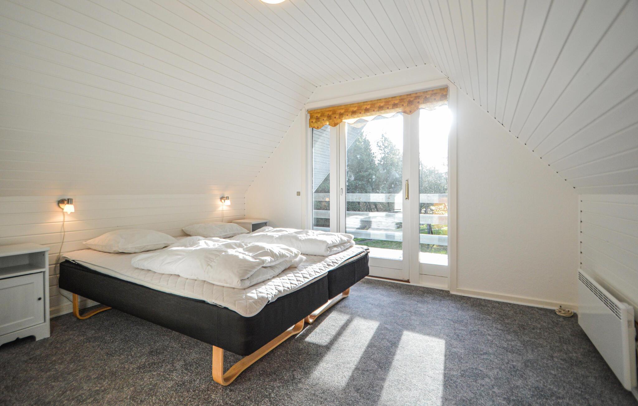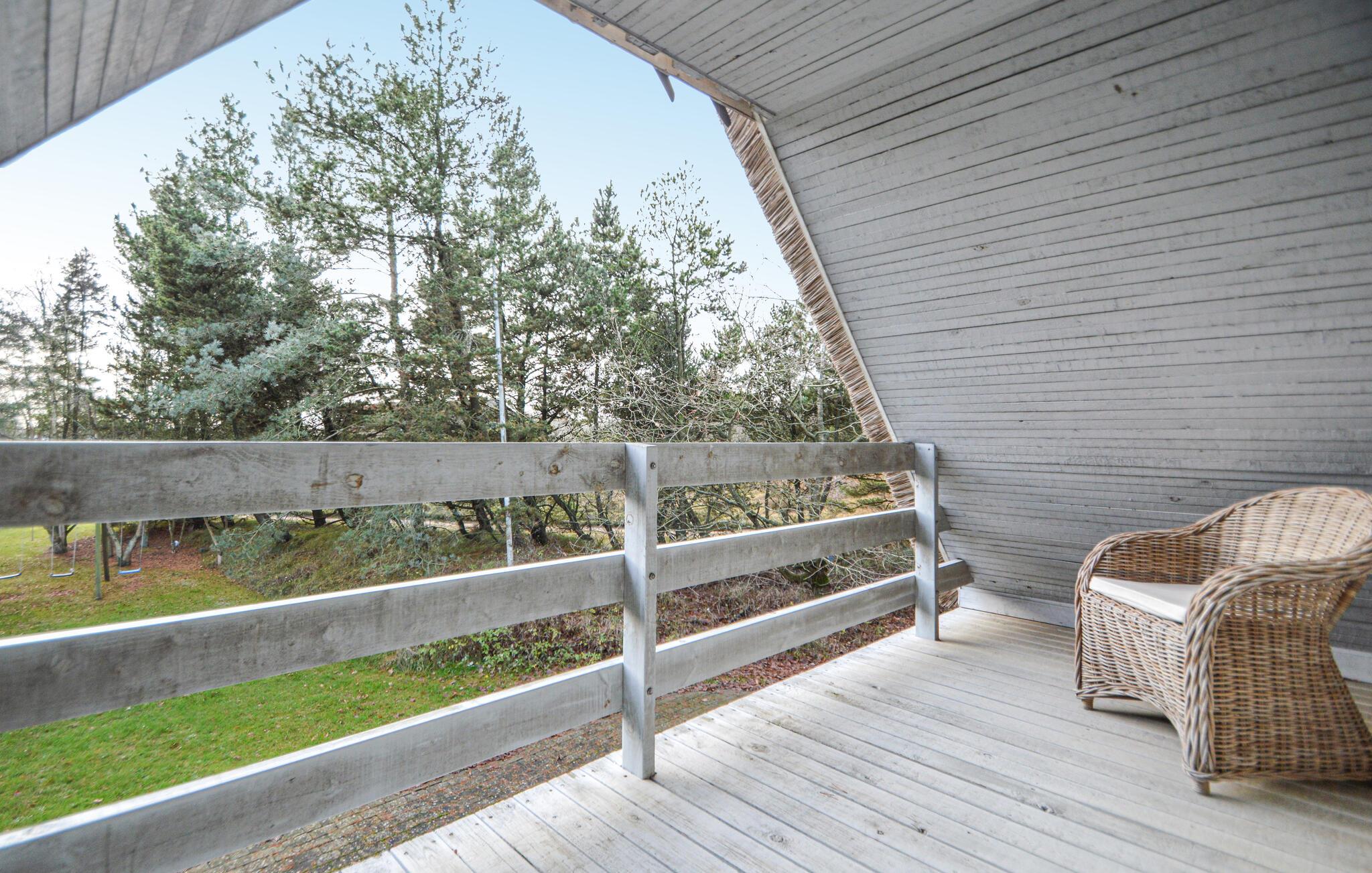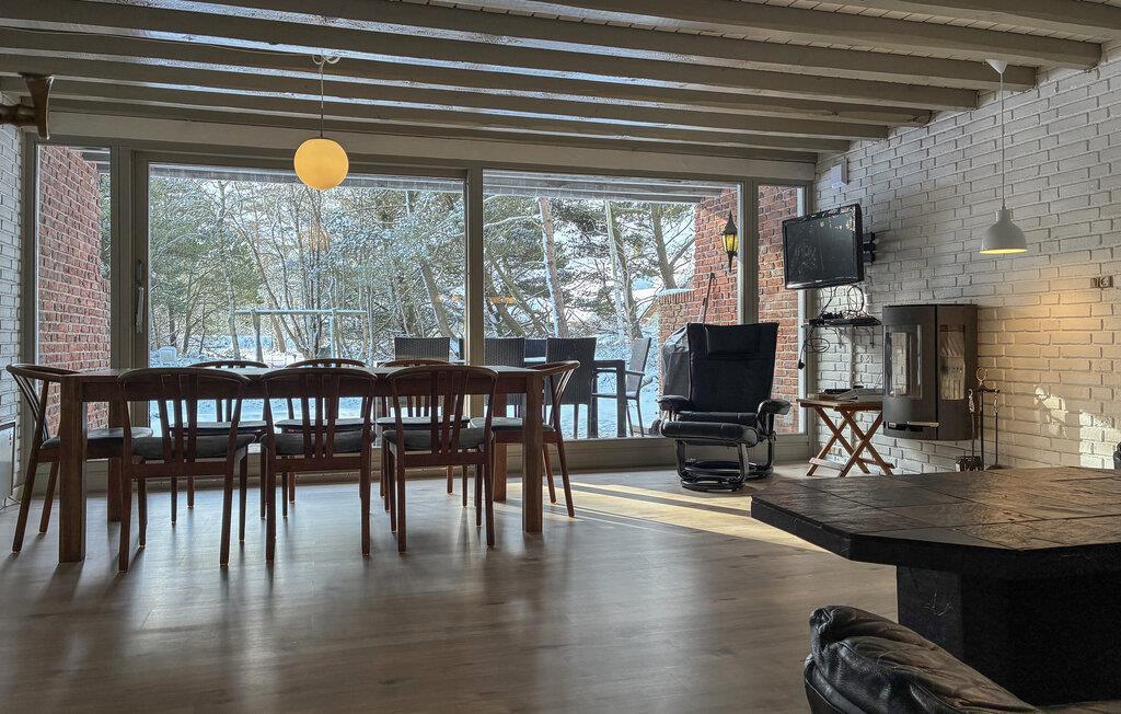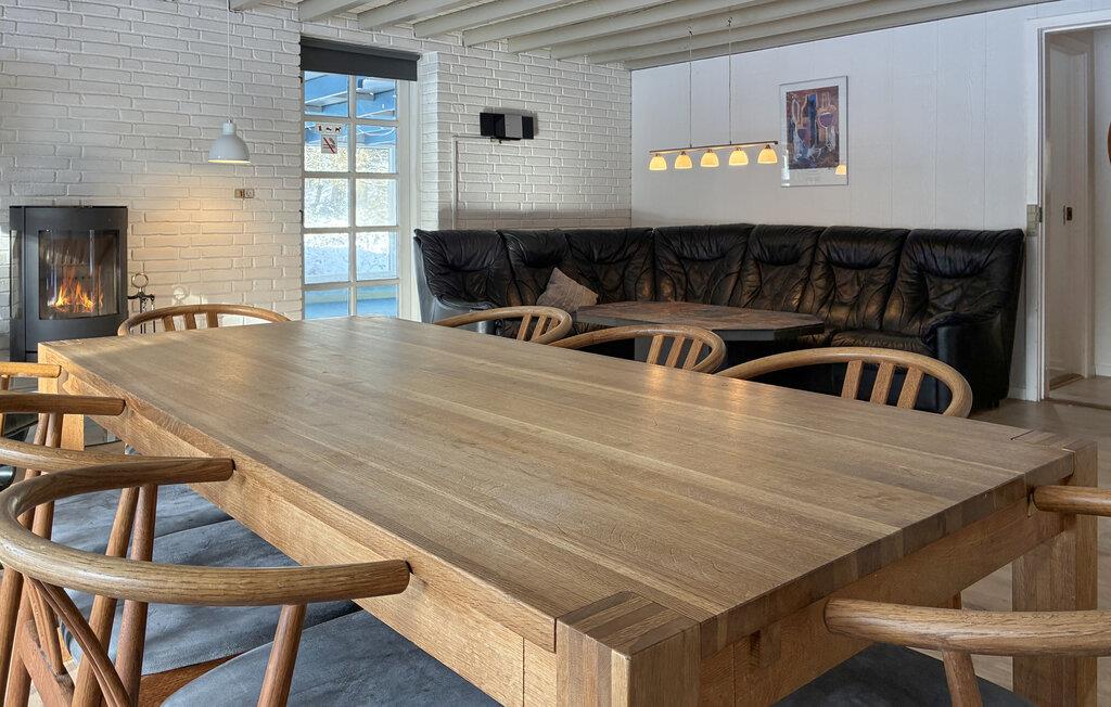Nyd den rolige atmosfære i dette toetagers feriehus på en stor naturgrund, omgivet af træer og den friske luft fra Vadehavet. Træd ind i den hyggelige stue, hvor et træloft, store vinduer og en brændeovn skaber en varm og indbydende atmosfære. Sæt jer godt til rette i den komfortable sofa, læs en bog eller se en film om aftenen. Tilbered jeres måltider i det tilstødende åbne køkken. Spiseområdet tilbyder rigelig plads til alle – ideelt til lange spilleaftener eller fælles måltider.