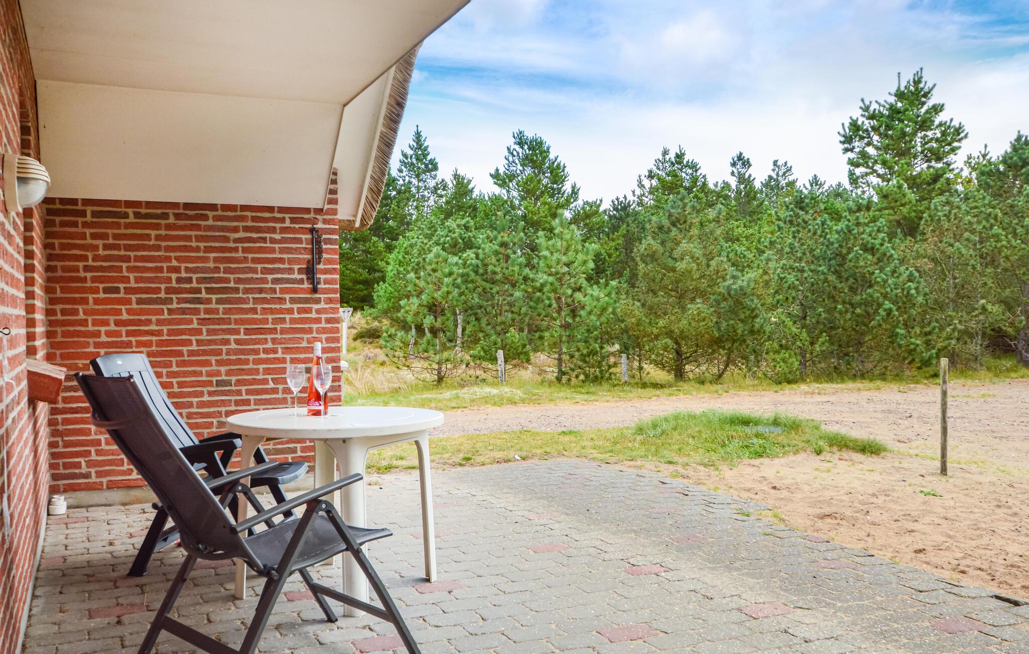 Dette dejlige sommerhus i sten og med stråtag ligger på en stor ugenert naturgrund i det populære Vesterhede på Rømø. Et naturskønt område med mange aktivitetsmuligheder, b.la. golf på Rømø Golf Links, Rømø Play & Horse Park eller strandsejlads på Sønderstrand. Til huset hører et skønt terrasseareal med kvalitetshavemøbler og grill. Huset er veludstyret og pænt møbleret. Fra den rummelige og hyggelige stue er der adgang til terrassen. Huset er særdeles velegnet til to familier eller flere par, her er god plads og otte gode sovepladser.