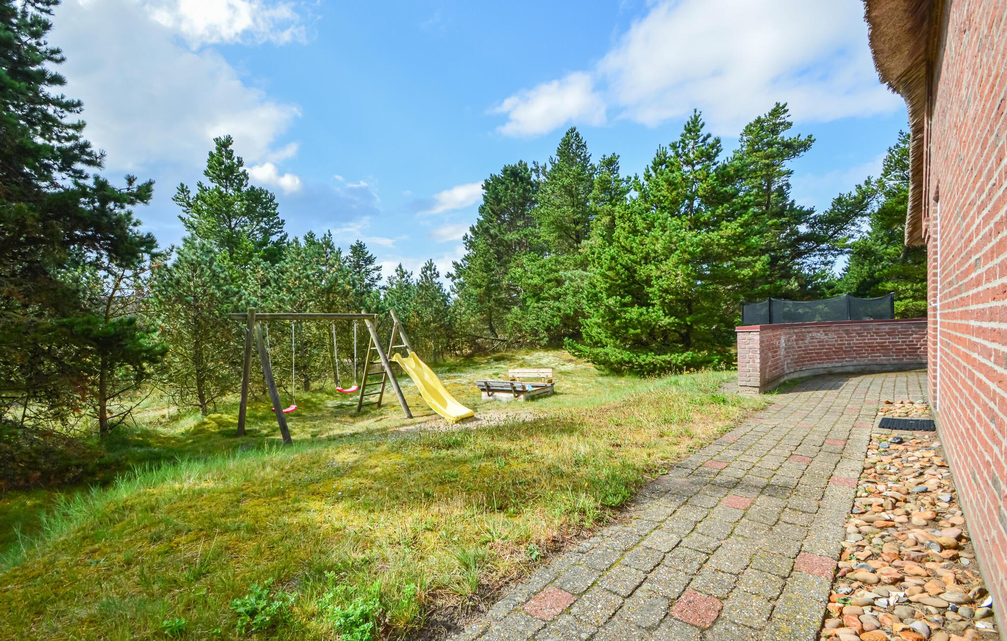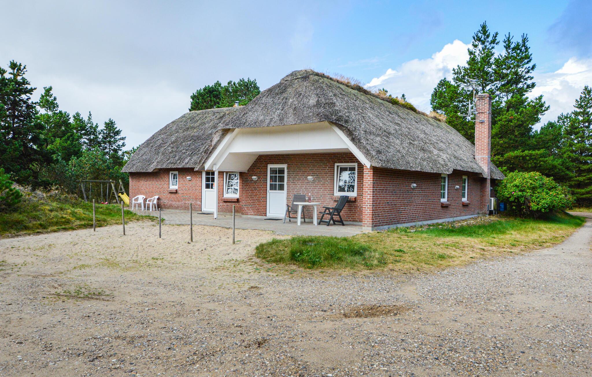 Dejligt sommerhus med stråtag på stor naturgrund i Vesterhede, Rømø, med sauna og spabad.