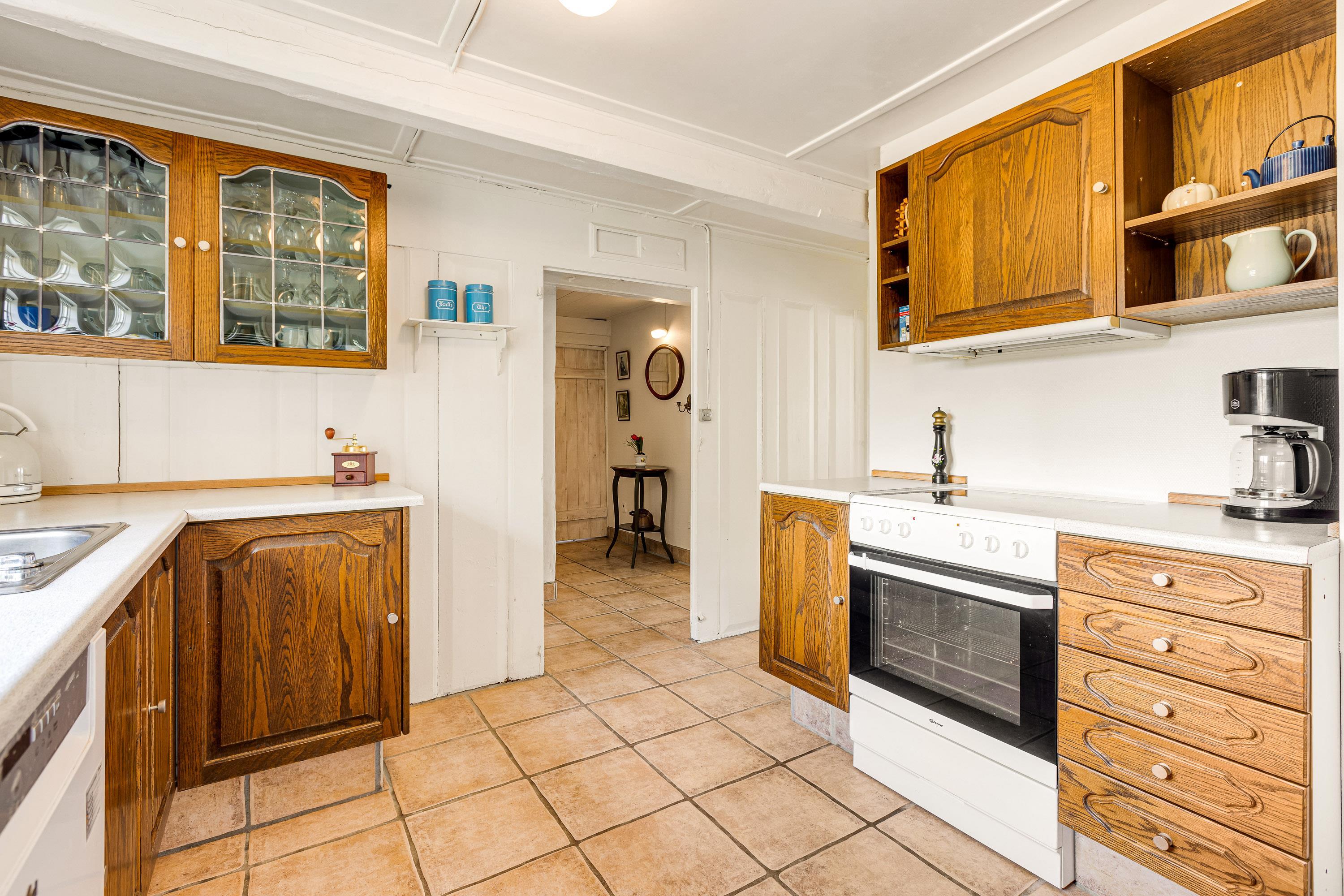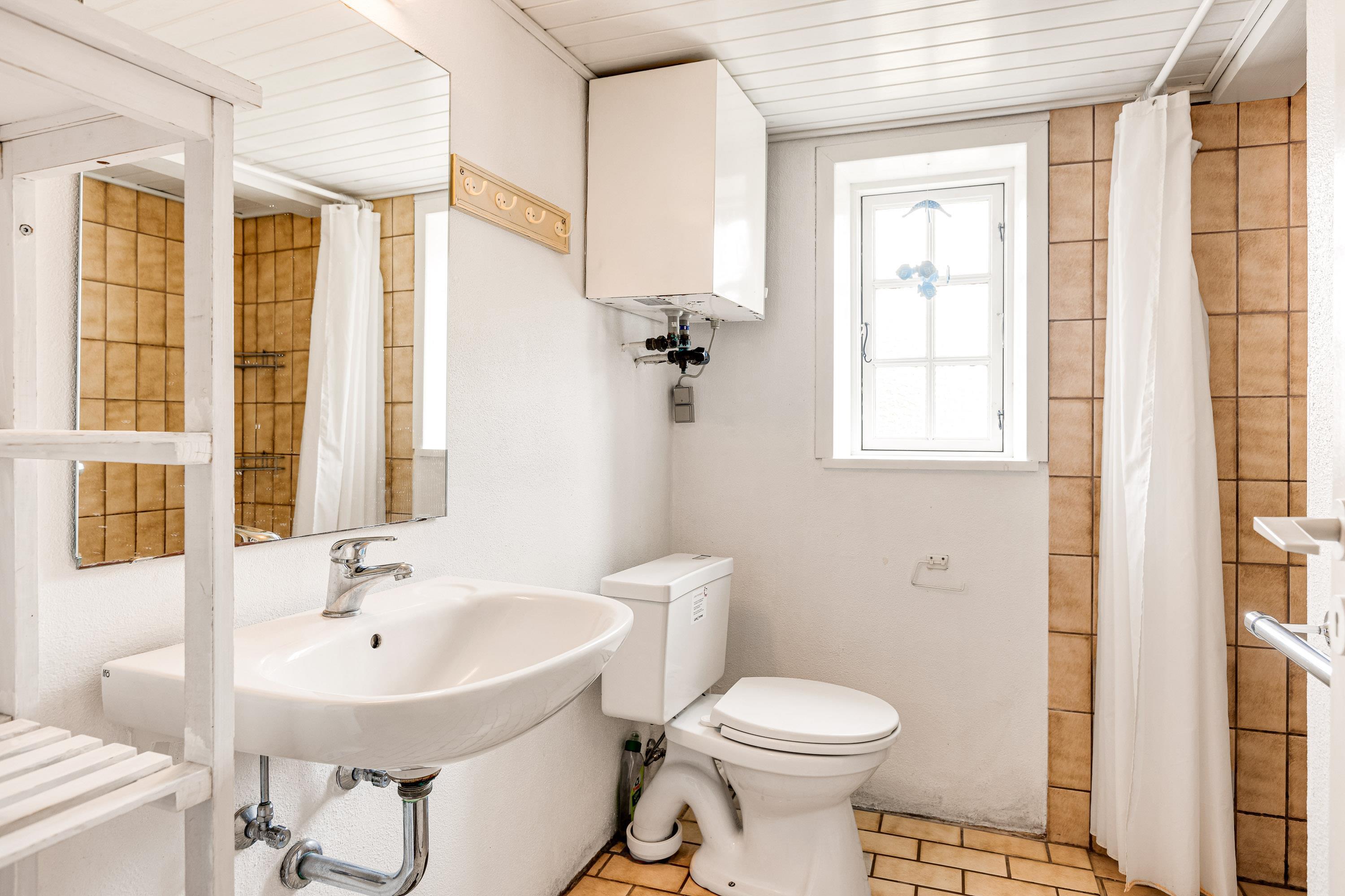 Sommerhuset er også indrettet med et stort og traditionelt køkken i et separat rum for sig, hvor du også finder en opvaskemaskine, mikroovn og en stor 100 L fryser. I køkkenet er det muligt at samles om fælles madlavning, og nyde den ved det smukke runde spisebord sammen med familien. I husets bryggers finder du også en vaskemaskine samt tørretumbler.