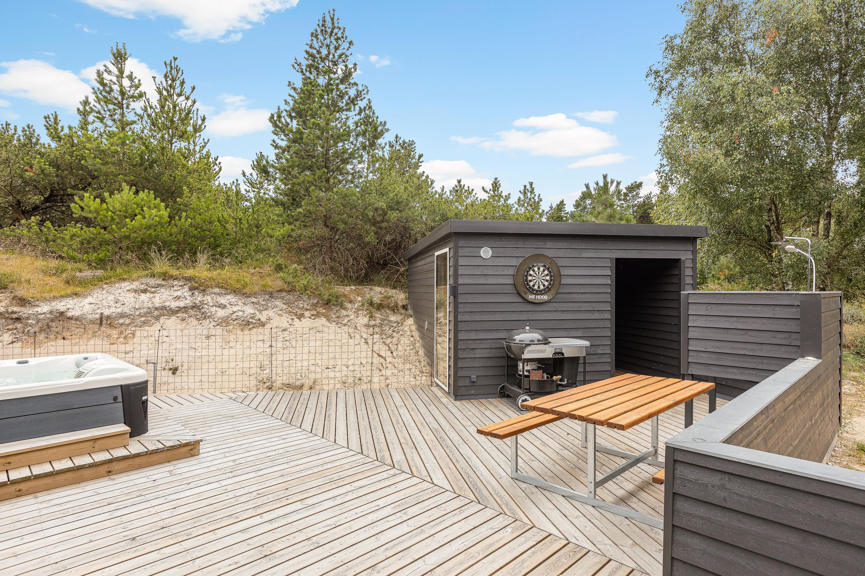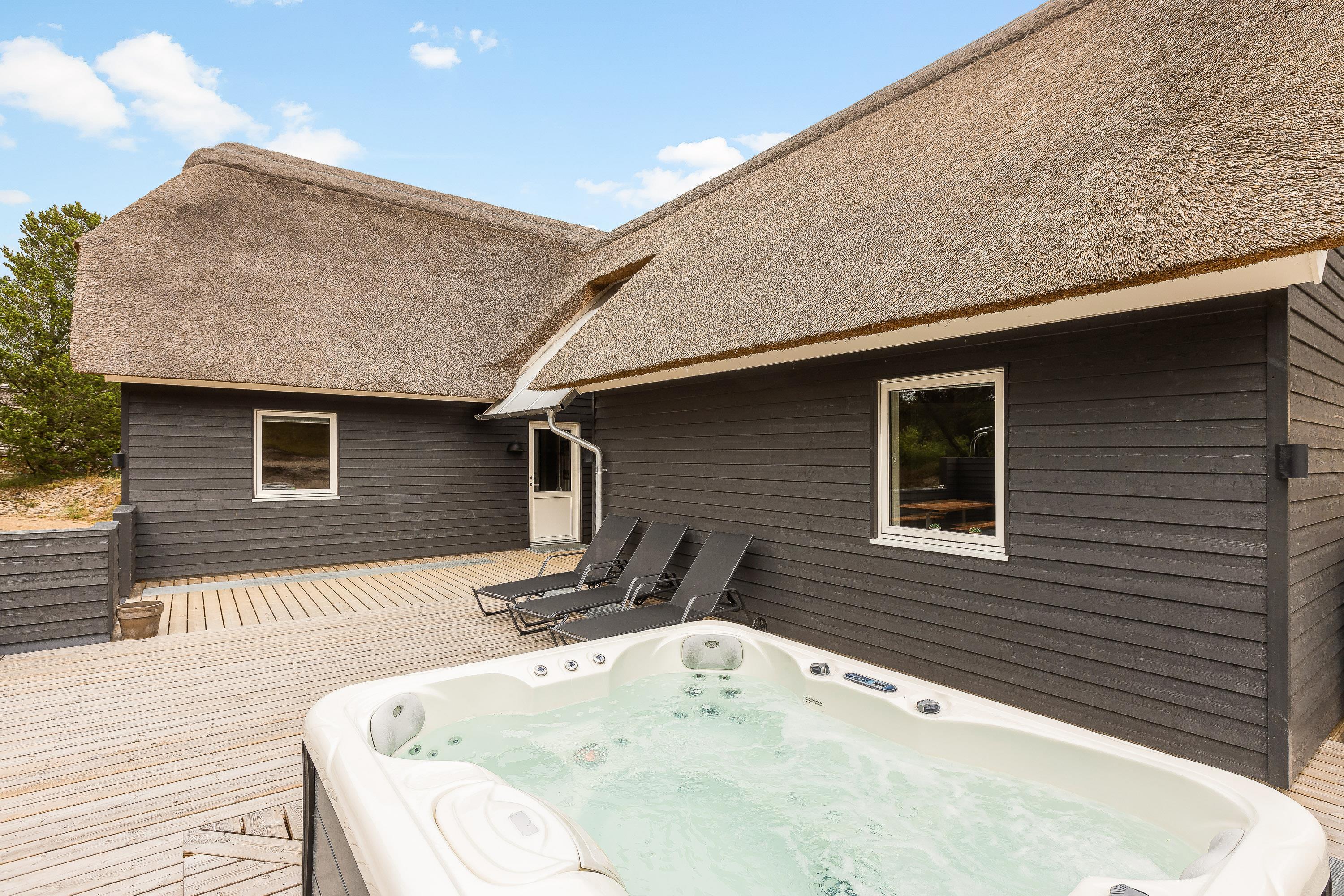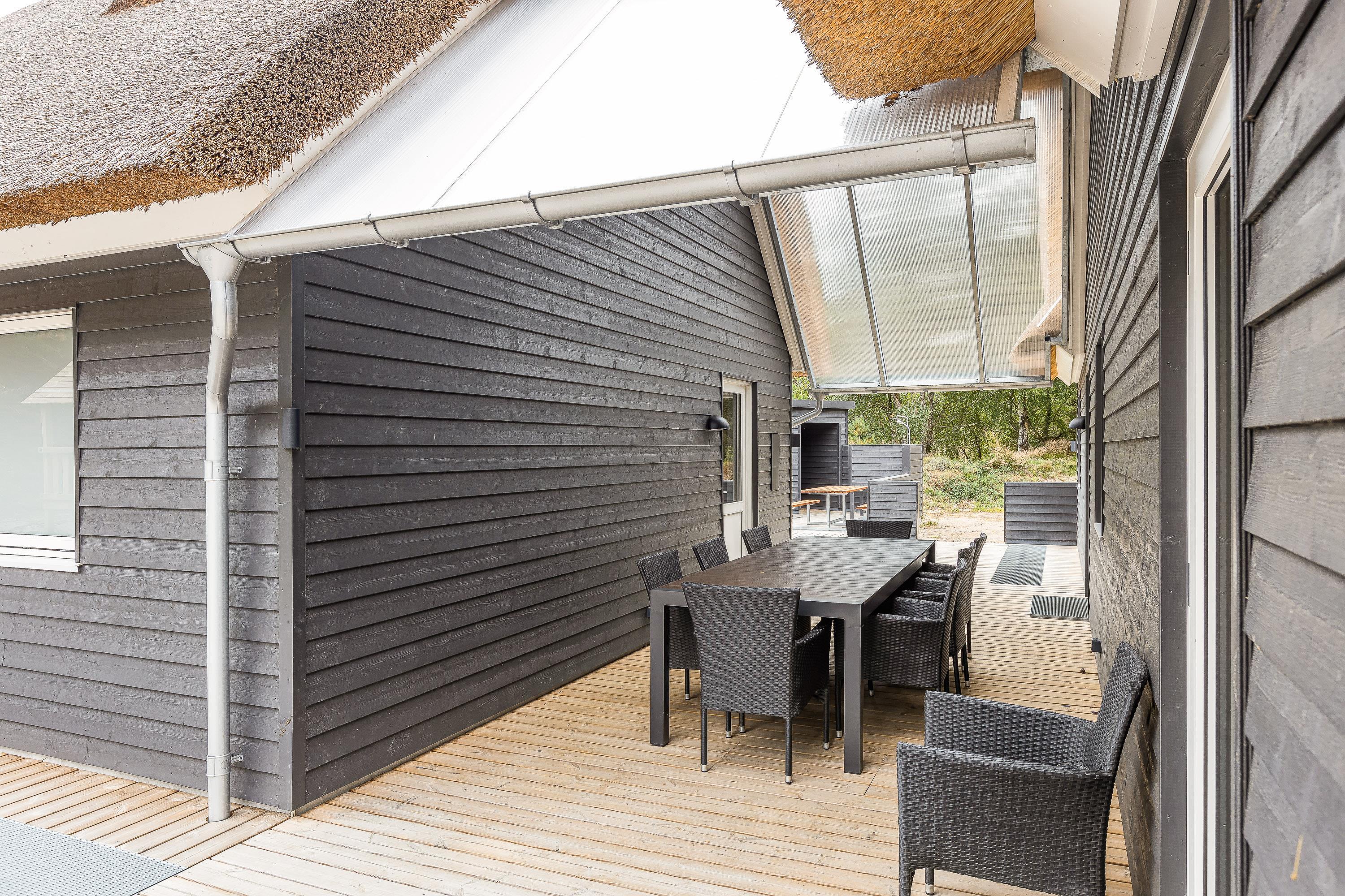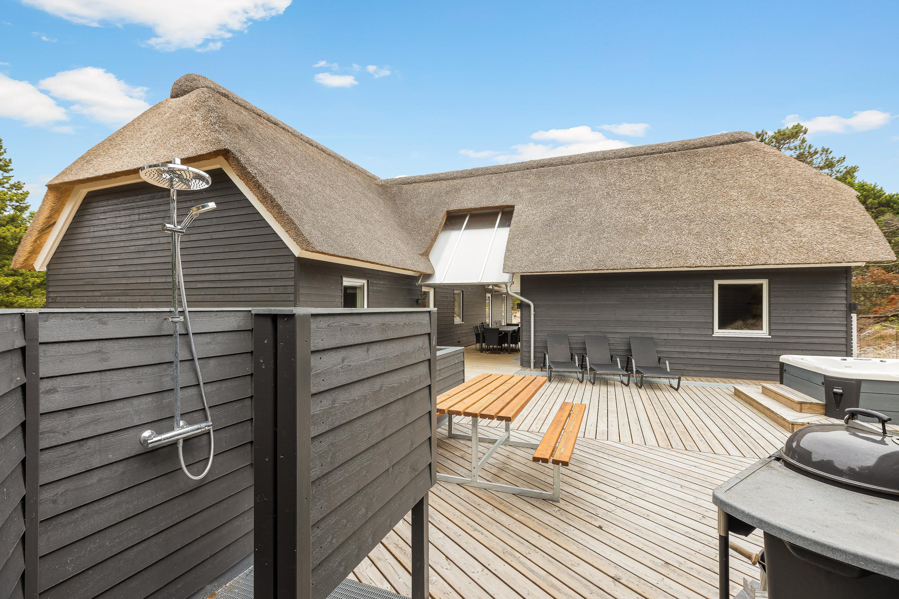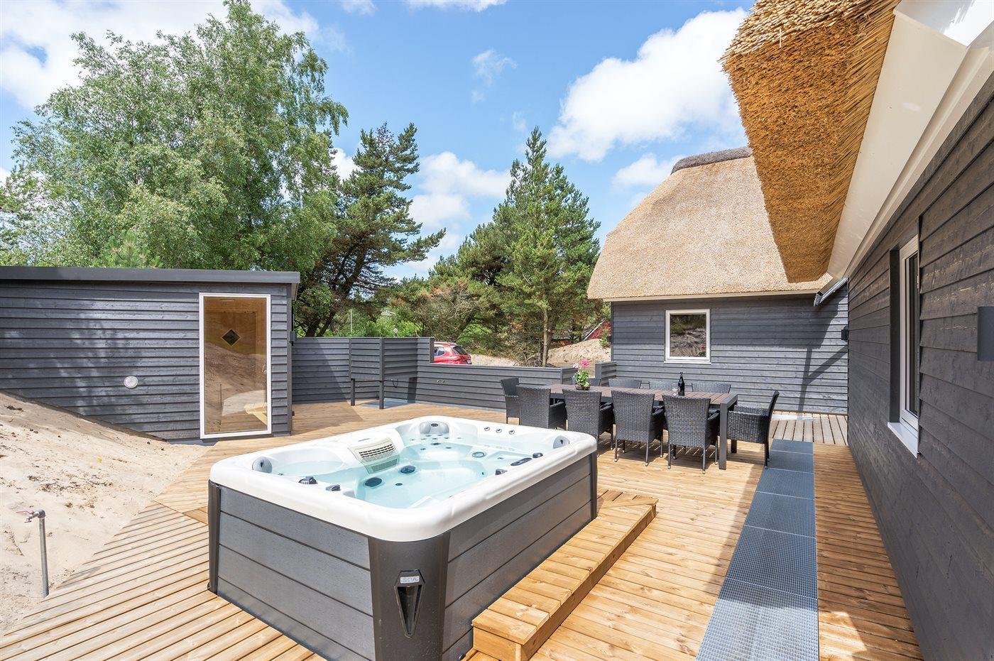 Om aftenen kan du få en lækker BBQ og sidde godt til langt ud på aftenen i det overdækkede atriumområde. Eller du kan bruge jeres helt eget wellness-område - tag en sauna-session, frisk dig op ved hjælp af udendørsbruseren og nyd udsigten til stjernehimlen, mens du sidder i spabadets bobler. (udebruseren kan benyttes fra april til november).