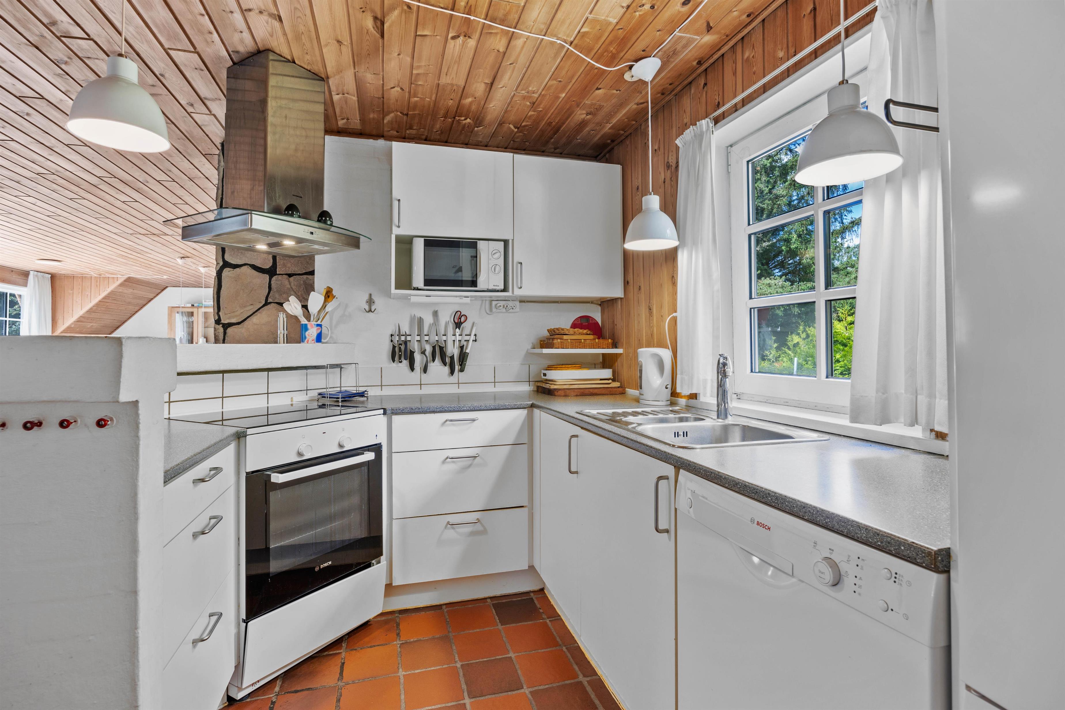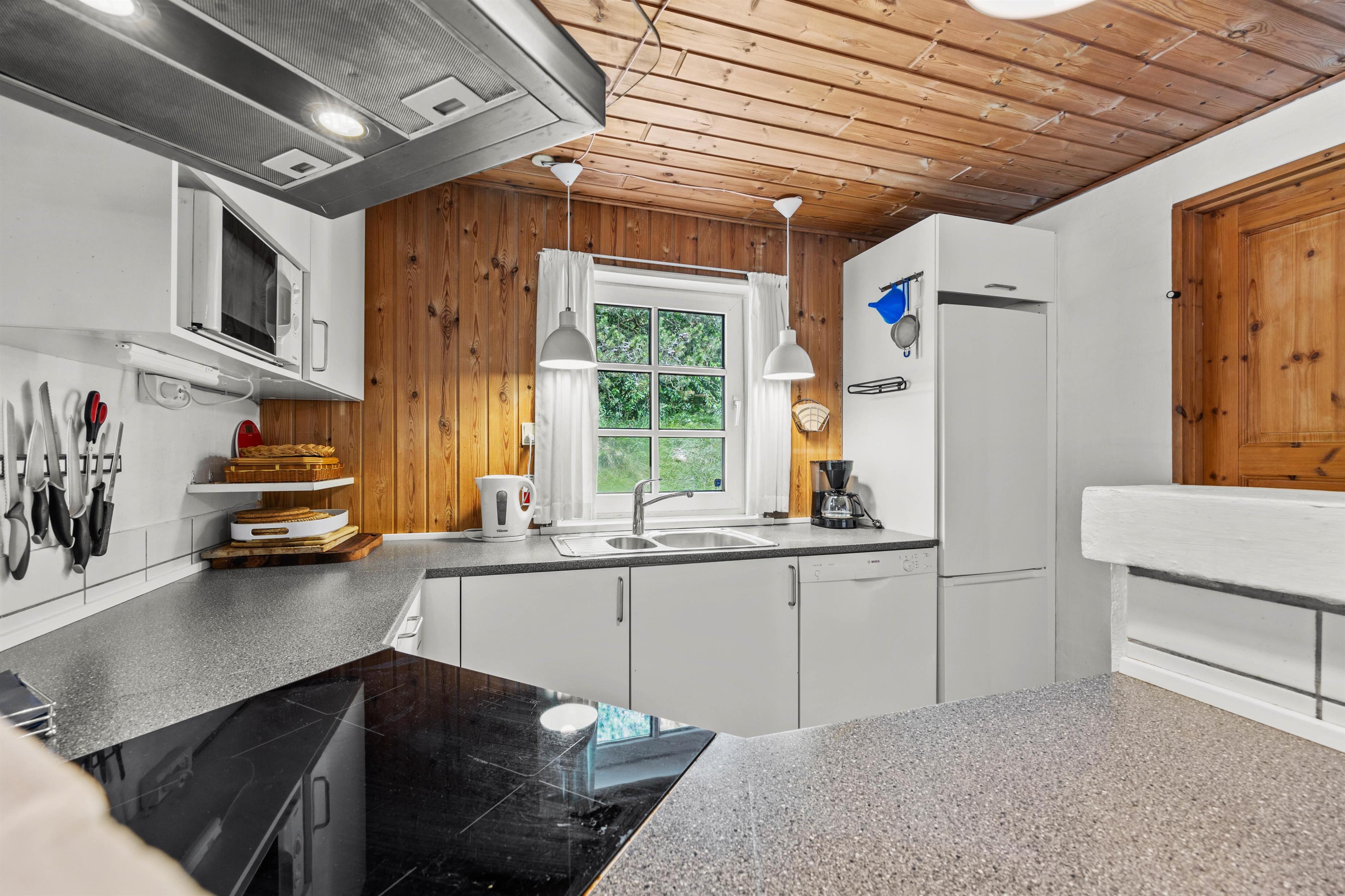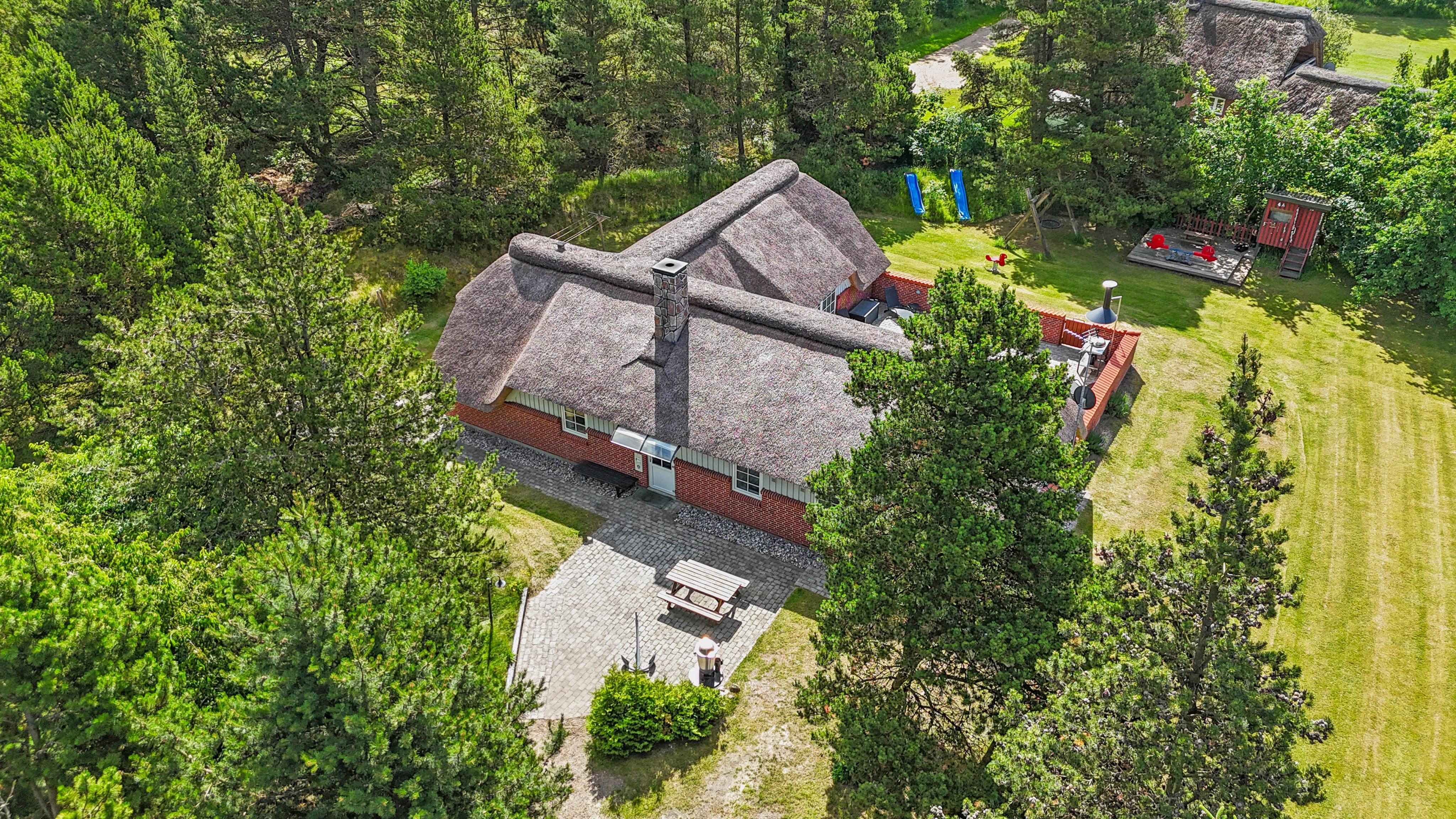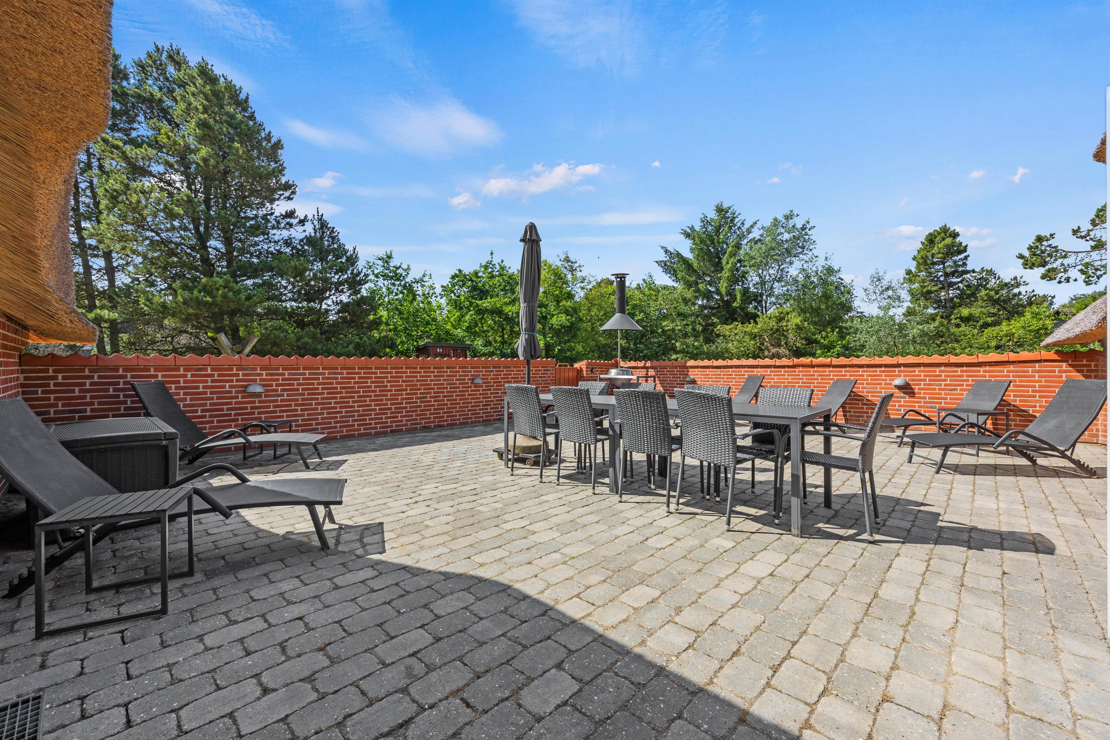 Den lukkede terrasse er ideel, hvis I har små børn eller hund med, da de kan færdes frit imellem opholdsrummet og terrassen. Slik sol i de komfortable liggestole, eller slap af i havemøblerne. Imens kan børnene gå på opdagelse på naturgrunden eller lege i legehuset, gyngerne eller sandkassen. Der er ligeledes en fodboldbane til de aktive. Tænd op i de to grills, som står på hver sin terasse til aften, og nyd et lækkert grillmåltid sammen, imens skyggerne bliver lange. Der er ladestik til el-bil til rådighed for jer på ferien (ABB) - Ladekabel mangler og skal medbringes af gæsten.