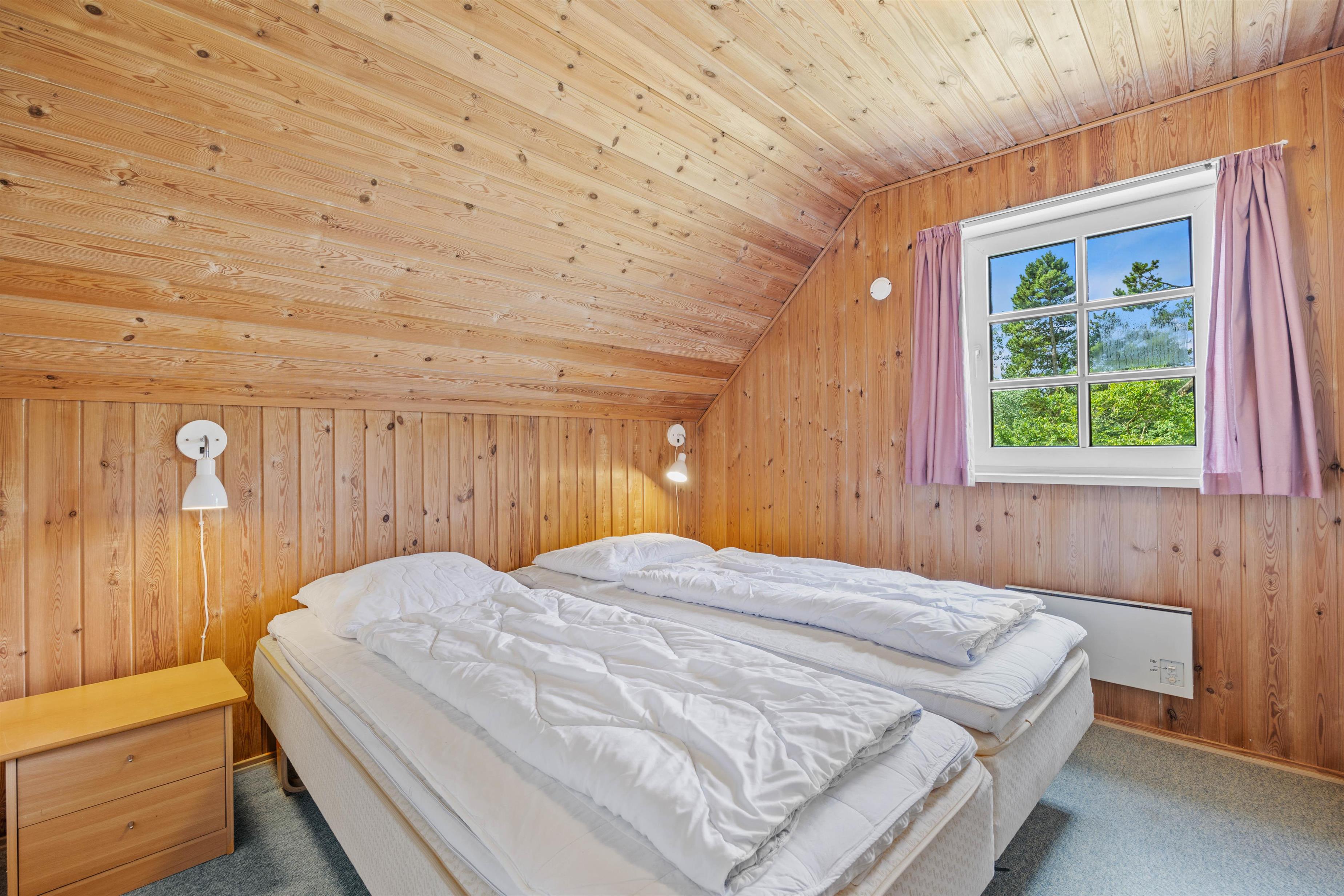 Der er 2 badeværelser med gulvvarme, og I forbindelse med det store badeværelse er der også sauna, vaskemaskine, tørretumbler og to hårtørrer som I kan benytte. Arrangér for eksempel jeres egen lille wellnessaften med pool, spa og sauna, så I kommer helt ned i gear før sengetid. I de 4 rummelige soveværelser er 2 komfortable dobbeltsenge og 2 x 2 enkeltsenge, så I kan arrangere jer, som det passer jer bedst på ferien.