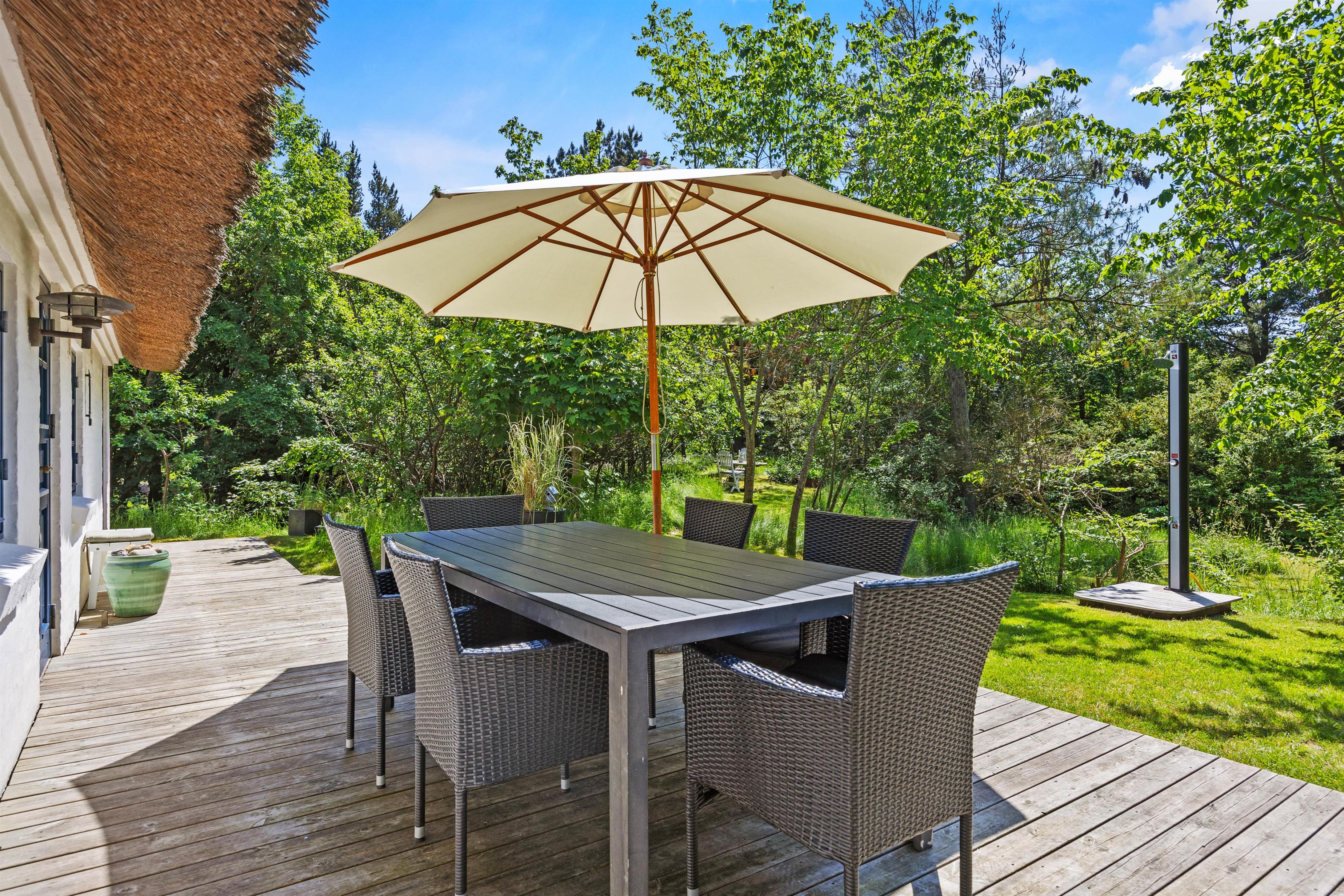 Udendørsområdet supplerer den indbydende atmosfære inde i sommerhuset. Den idylliske naturgrund med en skøn terrasse byder på havemøbler, hvor I kan nyde solen og naturens lyde i fulde drag. På naturgrunden finder I flere gode og hyggelige spots, hvor I kan slå jer ned i løbet af dagen.