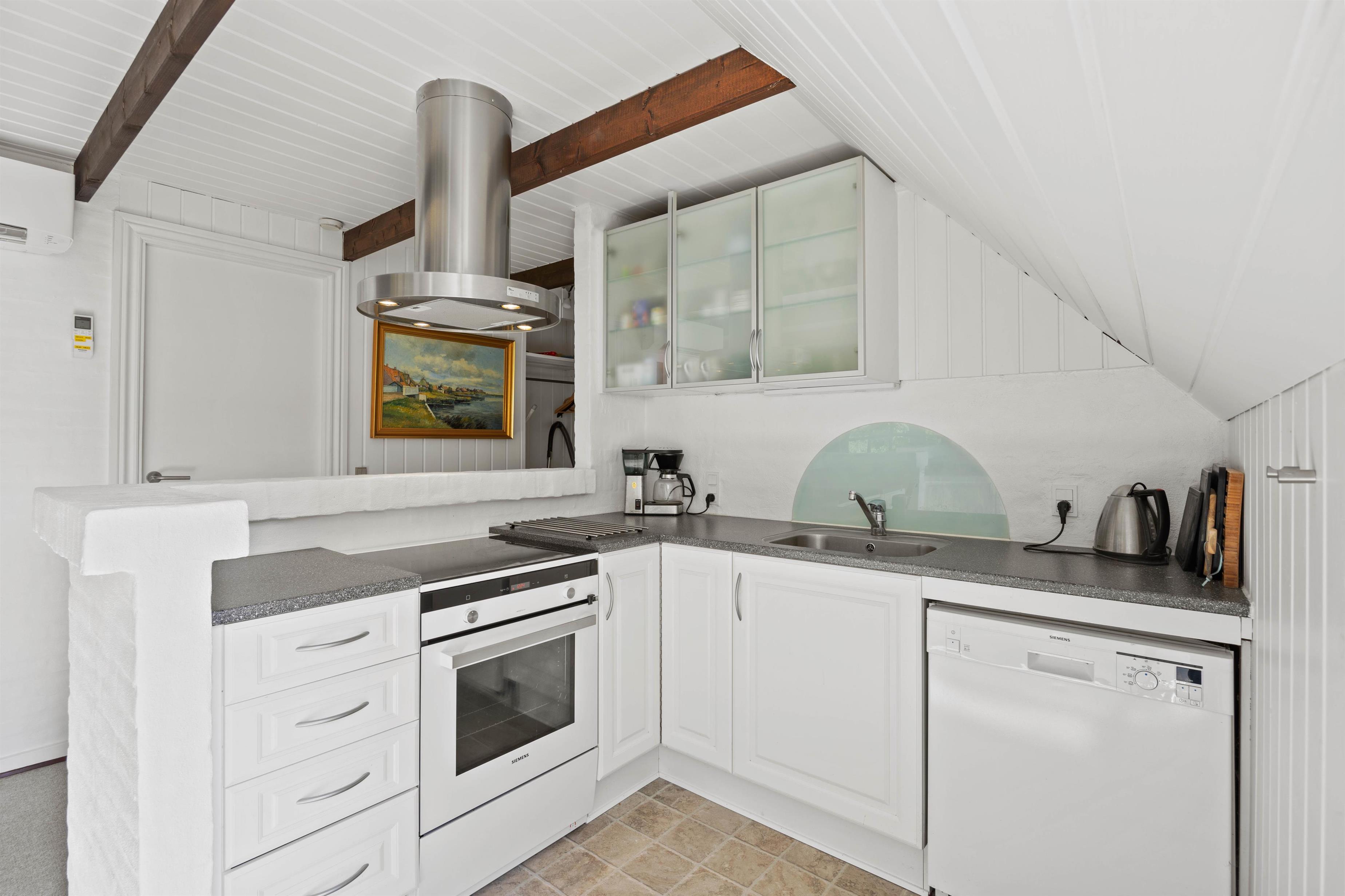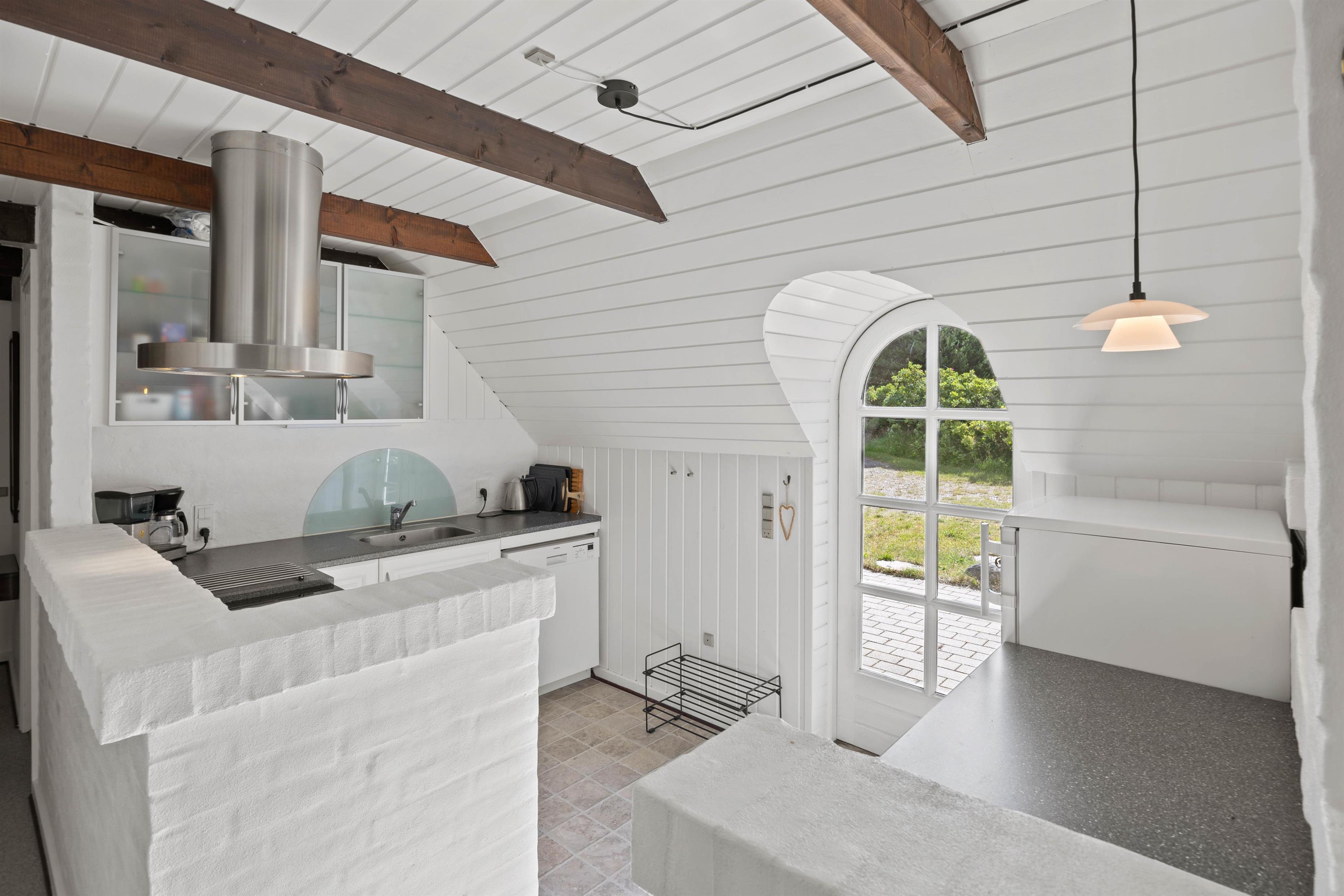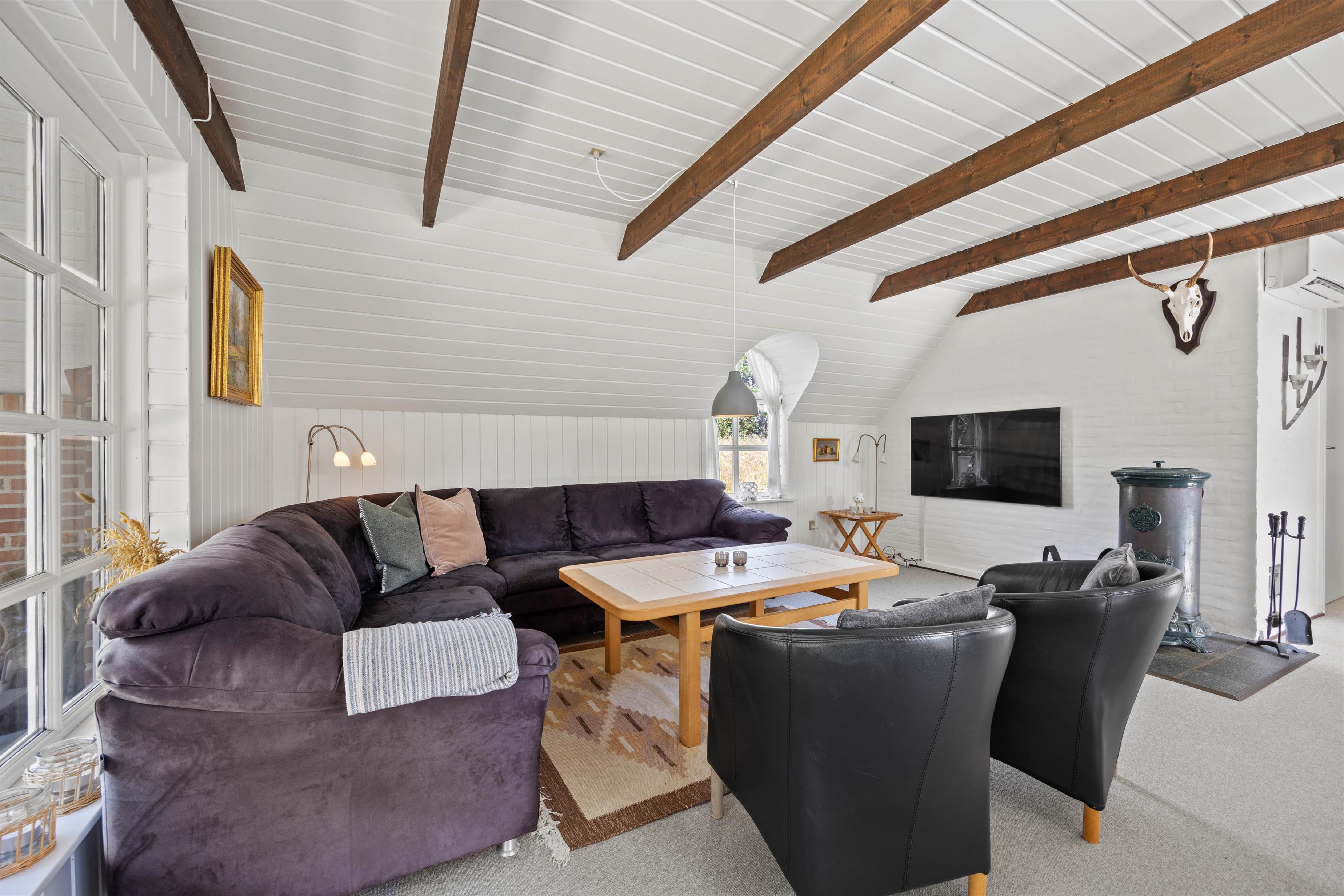 Opholdsrummet fungerer som sommerhusets samlingspunkt og hjerte. Her er plads til hygge og nærvær samt en skøn brændeovn, der sørger for den helt rette feriestemning! Det veludstyrede køkken har opvaskemaskine, og den store sofa indbyder til afslappende stunder. Om I vil holde brætspilsaften eller streame film på Chromecastet, er op til jer – mulighederne er mange!