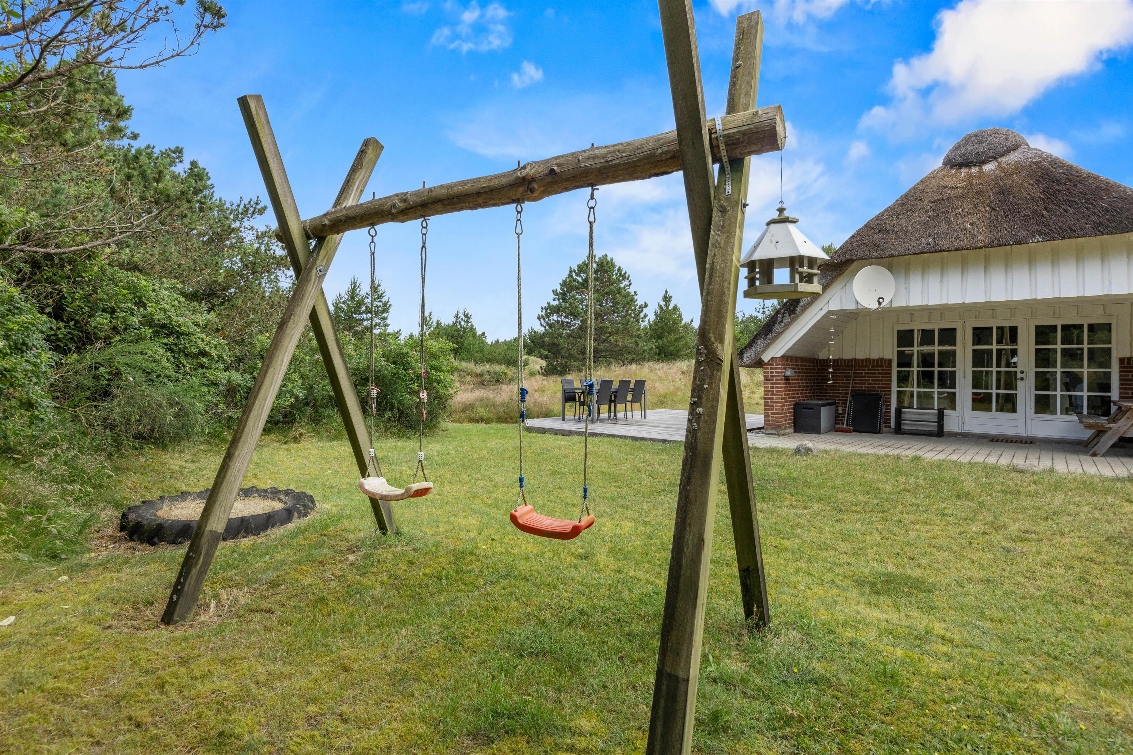 I haven er der også rig mulighed for aktiviteter! Her er et stort grønt areal, som er helt perfekt til kongespil eller boldspil, mens de mindste helt sikkert vil elske at lege på gyngerne eller i sandkassen. Lad børnene lege, mens der tændes op i gasgrillen og gøres klar til en skøn grillaften med familien.