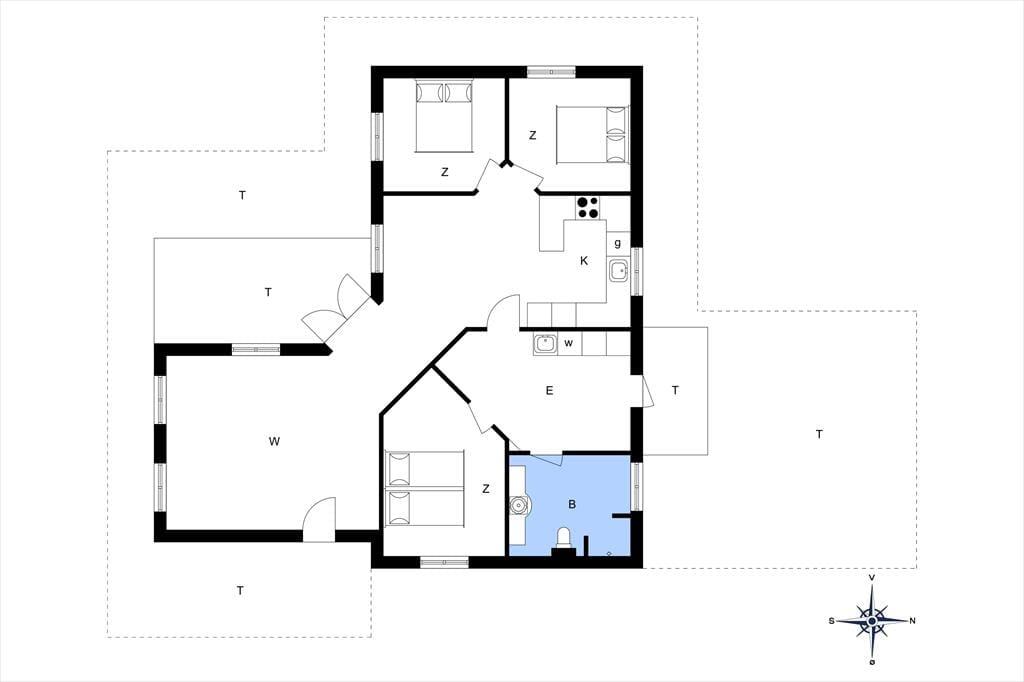Huset har 3 soveværelser, med en god dobbeltseng i hvert soveværelse. Her er altså i alt plads til 6 gæster, der kan få en dejlig nats søvn. Værelserne er også lyse og med god opbevaringsplads. Hvert værelse er indrettet i en hyggelig stil, hvor der stadig er fokus på funktionalitet, og at alle får en dejlig afslappet ferie her.
