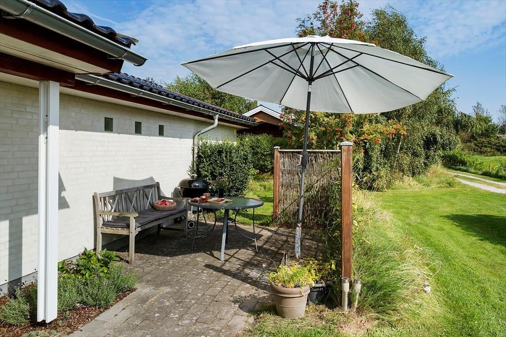 Sommerhuset er beliggende på en stor og aflukket grund, så du kan til fulde nyde naturen og det rolige sommerhusområde. Her kommer næsten ingen trafik forbi, så her er garanti for en dejlig, afslappet ferie. Sommerhuset har to gode terrasser. Den sydvest-vendte terrasse har direkte udgang fra stuen, og det er helt ideelt at tage sine måltider med herud og nyde solnedgangen eller blot slappe af i havemøblerne. Den anden terrasse er østvendt, så tag din morgenkaffe med herud og nyd ferien og omgivelserne.
