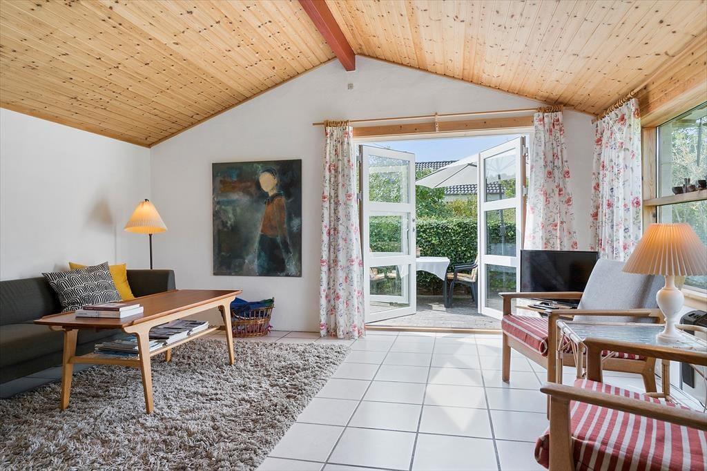 Når du træder ind i sommerhuset, mærker du med det samme en dejlig afslappet stemning i de lyse omgivelser. Huset er i en indbydende stil og rummeligt med gennemgående trælofter, og samtidig er den hyggelige sommerhusstemning helt i top til 6 personer.