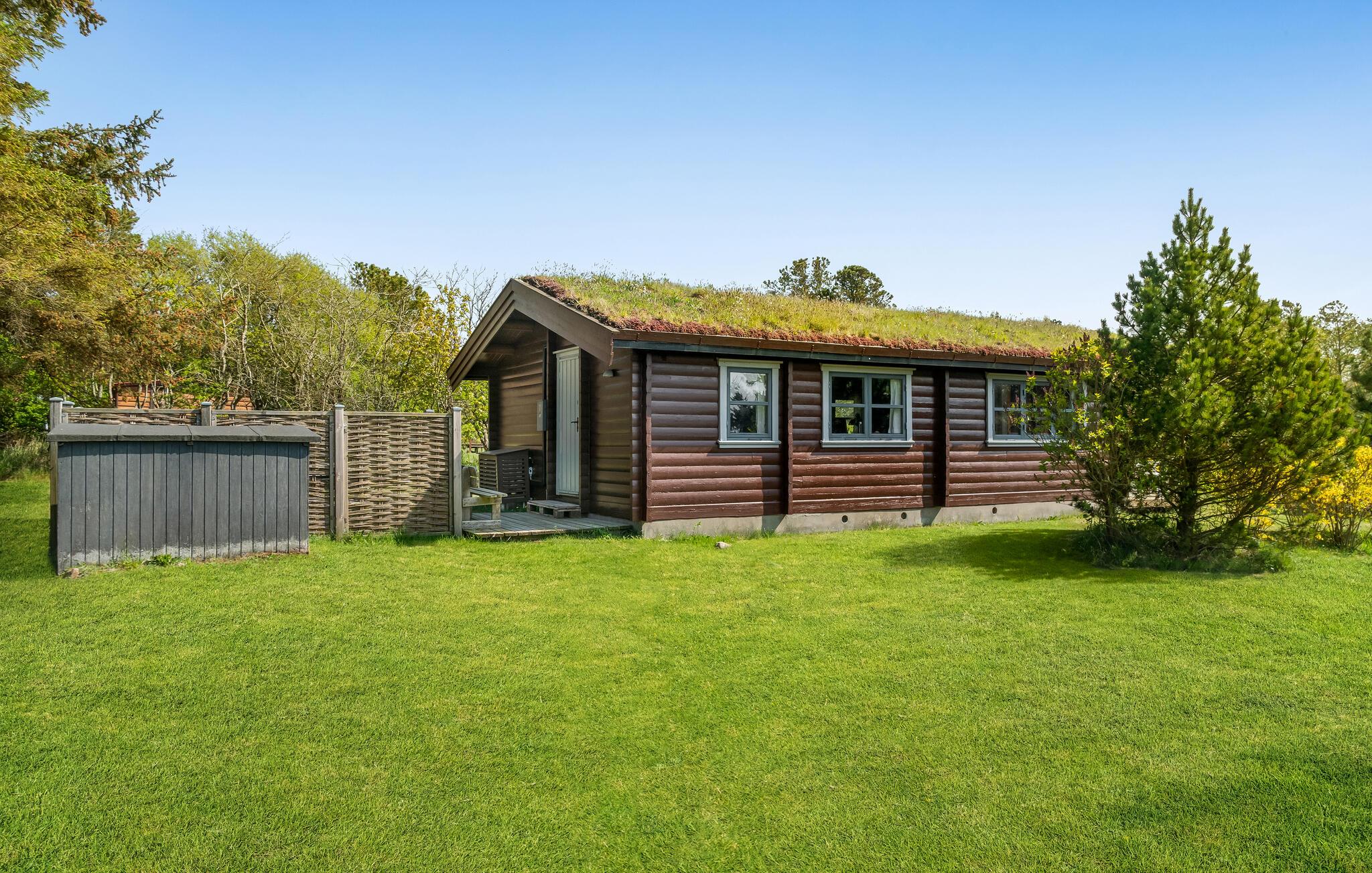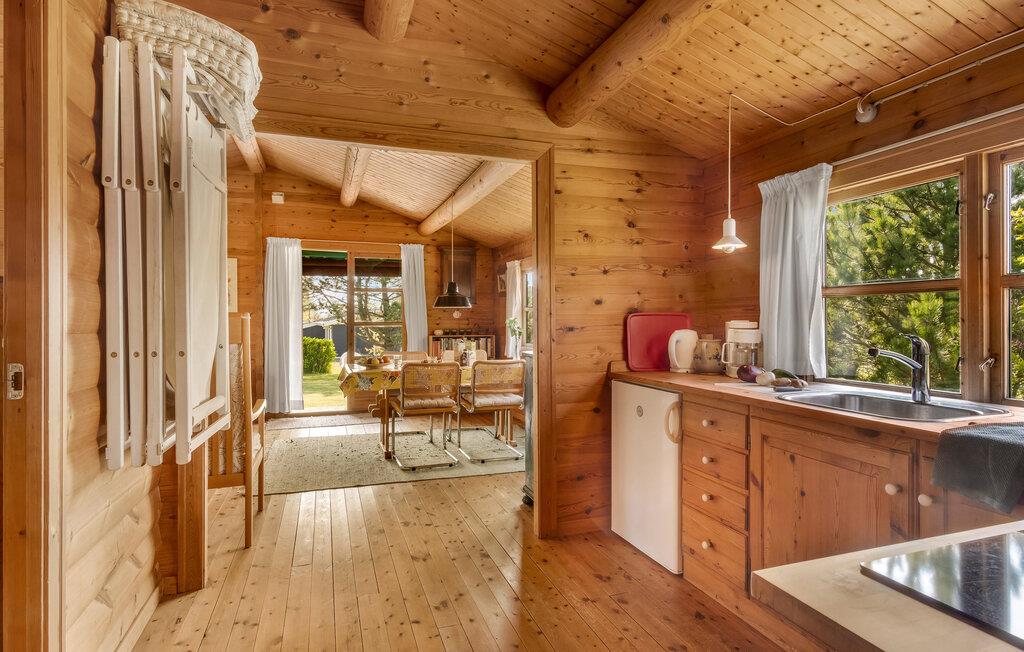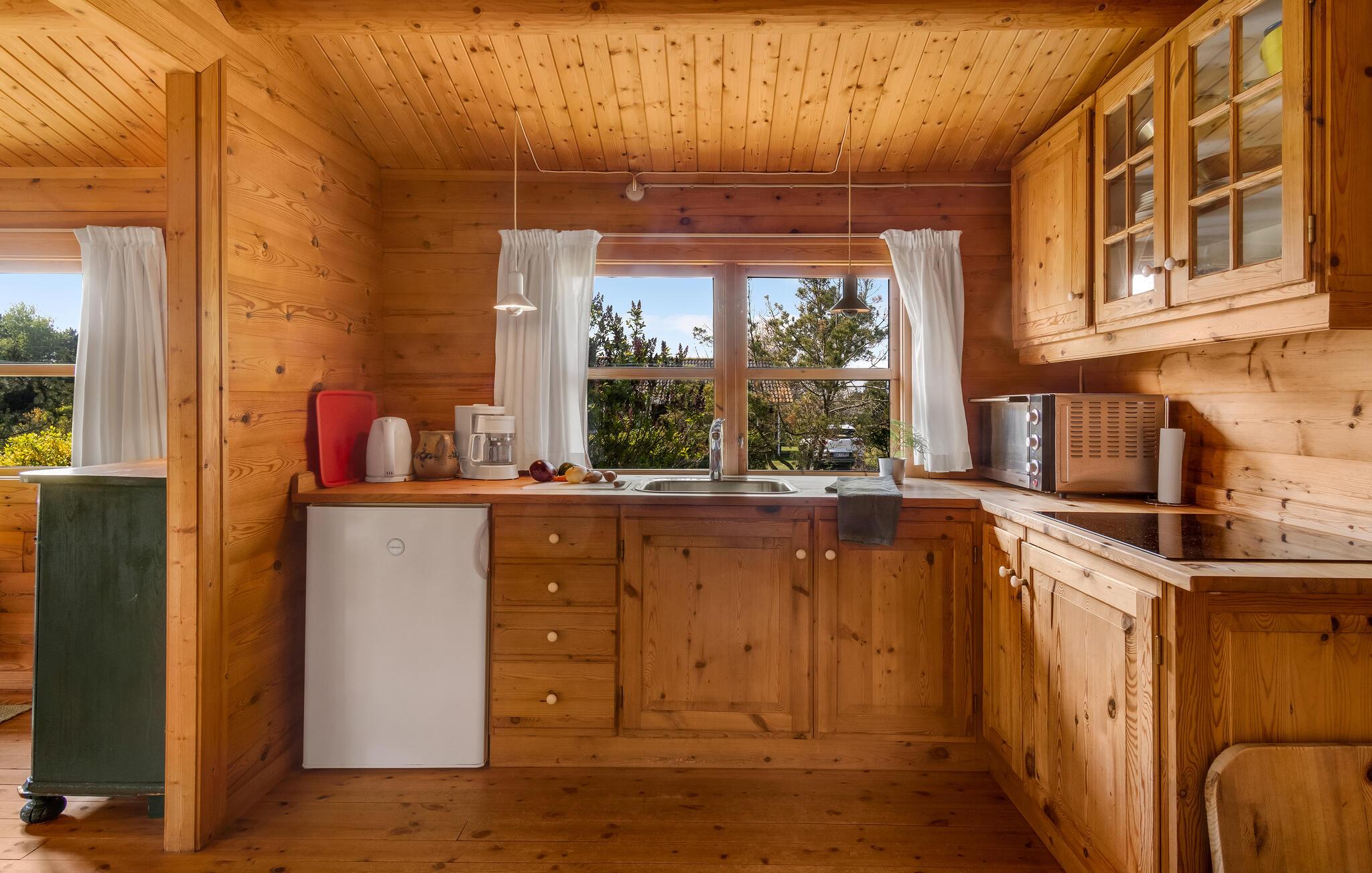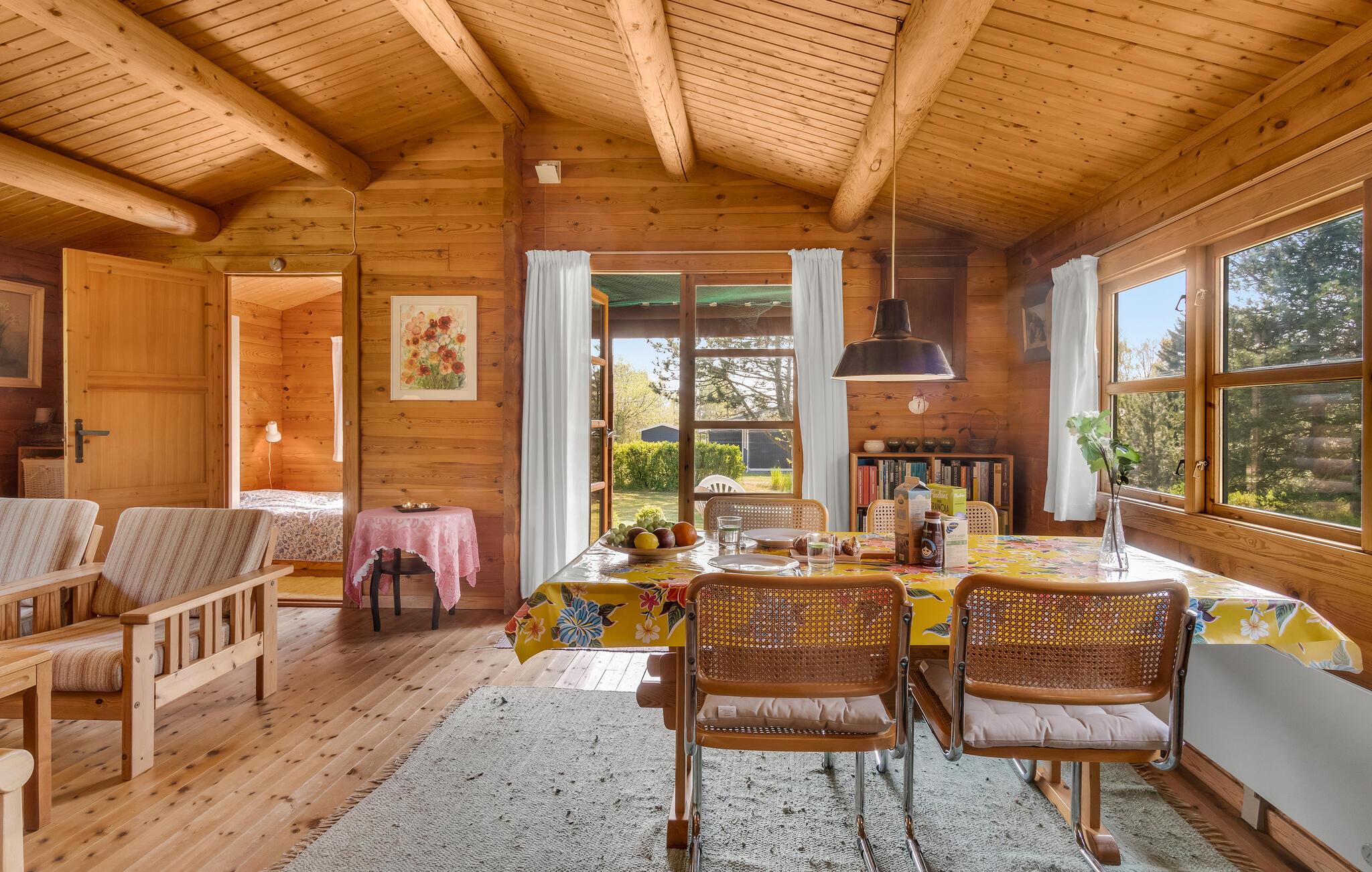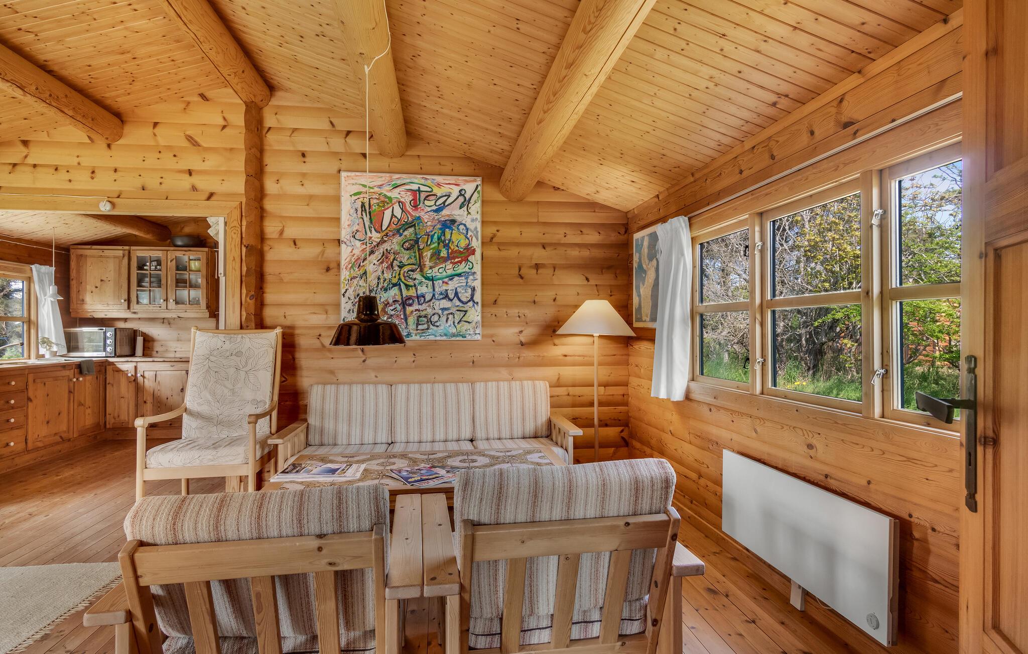 Huset emmer af hygge med sit karakteristiske græstag og varme træ-look. Indvendigt prydes indretningen af træ over hele linjen, og med sin enkle komfort får I her de helt perfekte rammer for at slappe af og glemme hverdagens hektik.