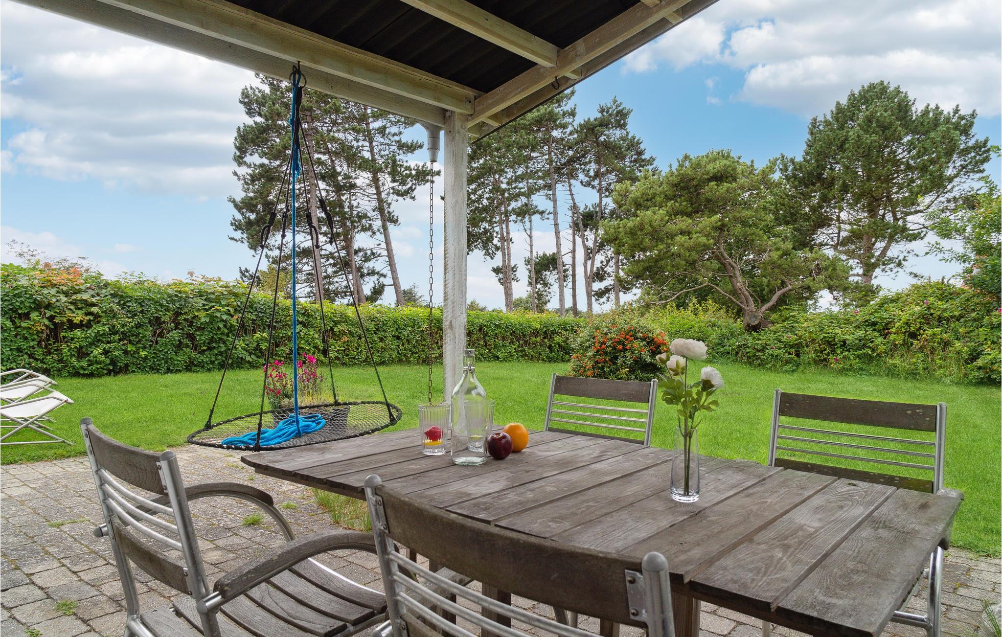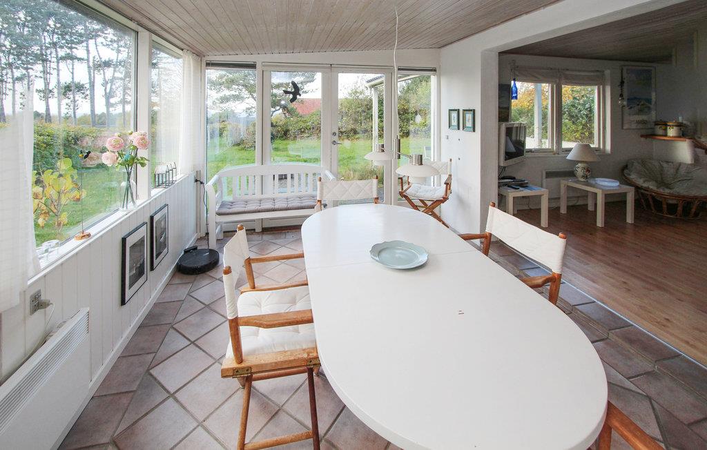 I naturskønne omgivelser byder dette hus hele familien velkommen. Spis jeres måltider sammen i den lyse spisekrog med de store vinduespartier, som giver jer en dejligt udsigt til haven. Efter en aktiv dag med vandreture eller cykelture på øen kan I læne jer tilbage i den komfortable sofa og se en god film, mens brændeovnen knitrer i baggrunden. Tilbring også hyggelige stunder udenfor på husets terrasse, hvor I også finder et godt sted at slutte dagen af med en kølig drink.