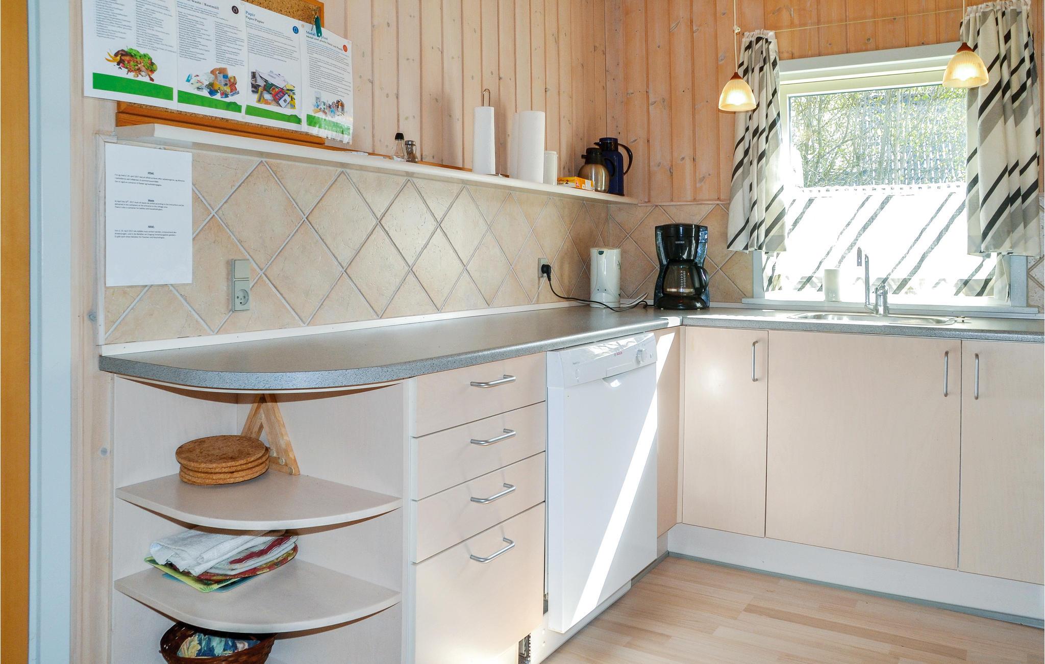 Rigtig hyggeligt sommerhus i to plan, hvor to af husets tre soveværelser er at finde på 1. salen, og hvor der i det ene soveværelse findes bordfodbold. Huset indeholder desuden et godt køkken/alrum med spiseplads samt et hyggehjørne med sofa i stueetagen. Badeværelset med spabad og adgang til saunaen ligger ligeledes i stueetagen.