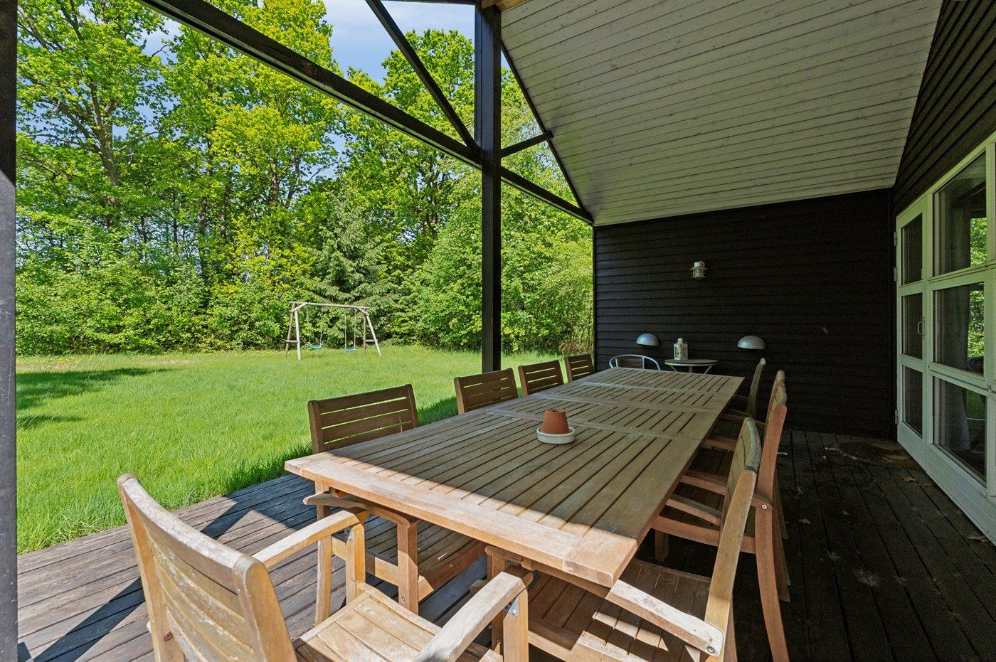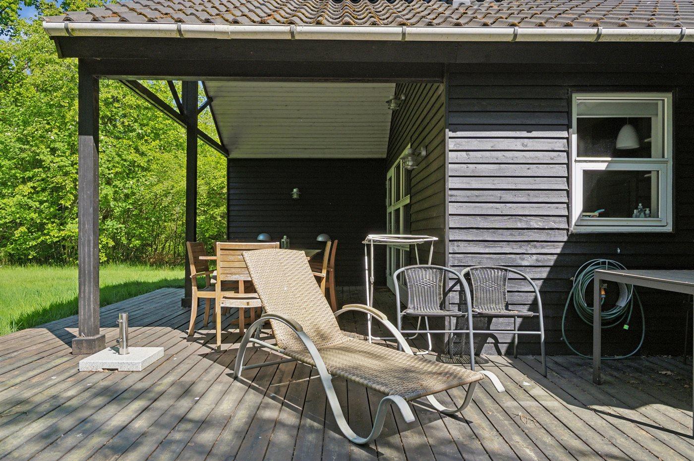 Ferieboligen er beliggende på en 1069 m² stor naturgrund. Der er 35000 m til havet. Der er 40000 m til fjorden. Der er en sø i en afstand af 3000 m. Nærmeste forretning er beliggende i en afstand af 5000 m. Til ferieboligen hører 16 m² terrasseareal. Desuden er der 16 m² overdækket terrasse. Der er redskabsrum. Gynge. Fodboldmål. Bålsted. Grill til rådighed. Parkering ved ferieboligen.