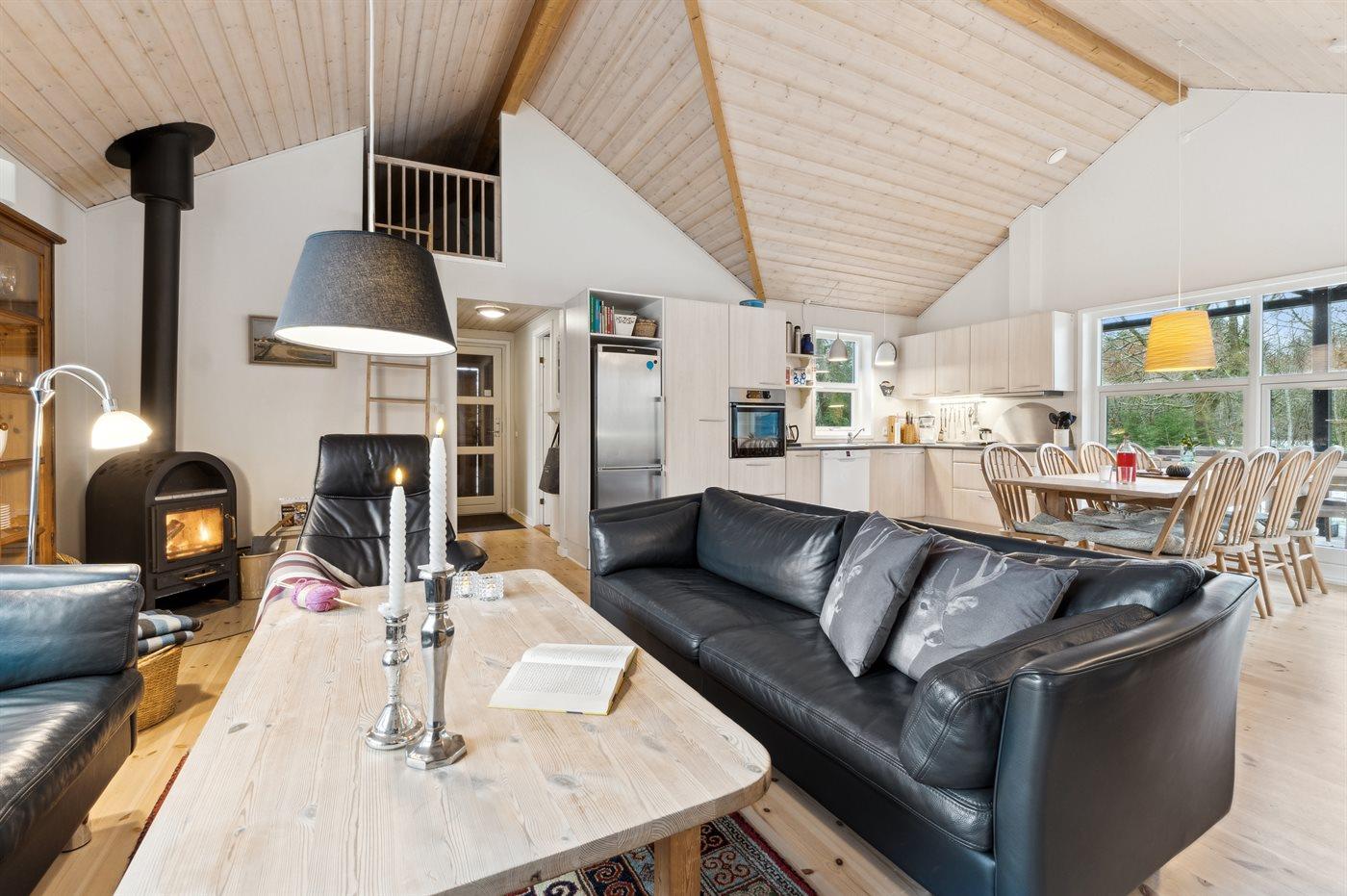 Indvendigt fremstår sommerhuset lyst og moderne med en rigtig god planløsning, så boligen er oplagt til f.eks. en familie med 2-3 børn. Husets hjerte er den store åbne stue med køkken-alrum, som er et dejligt sted at samle familien til feriehygge, hvis vejret skulle svigte.
