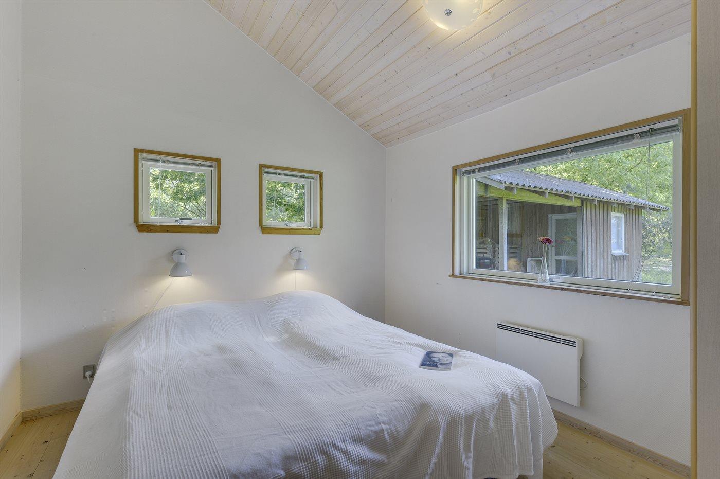 Der er i alt 3 soveværelser. Sovepladserne fordeler sig på: 2 sovepladser i dobbeltseng. 3 sovepladser i enkeltsenge. Børn kan også lege eller sove på hemsen i børneværelset. Derudover er der 1 stk. barneseng.
