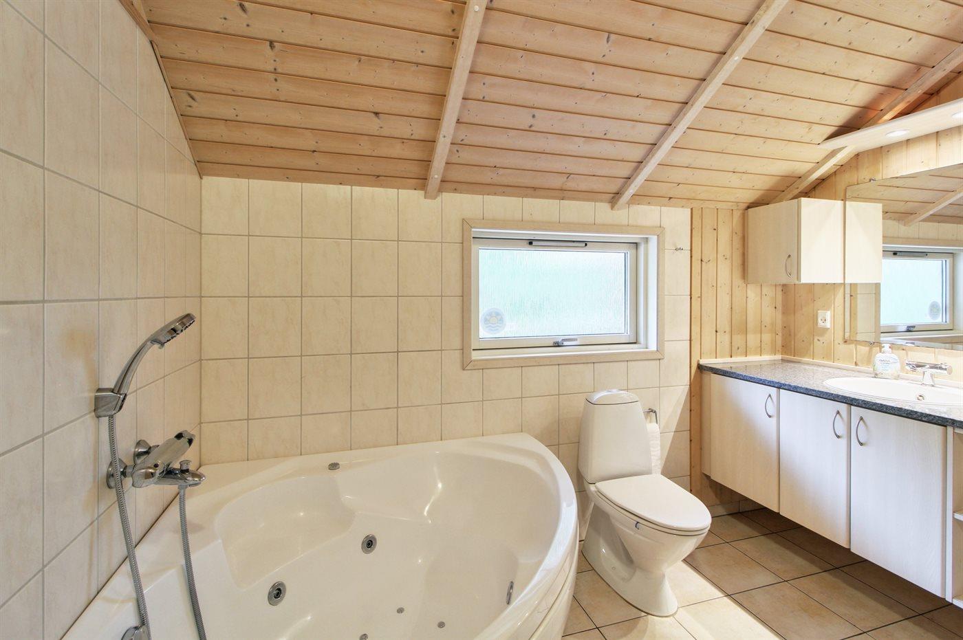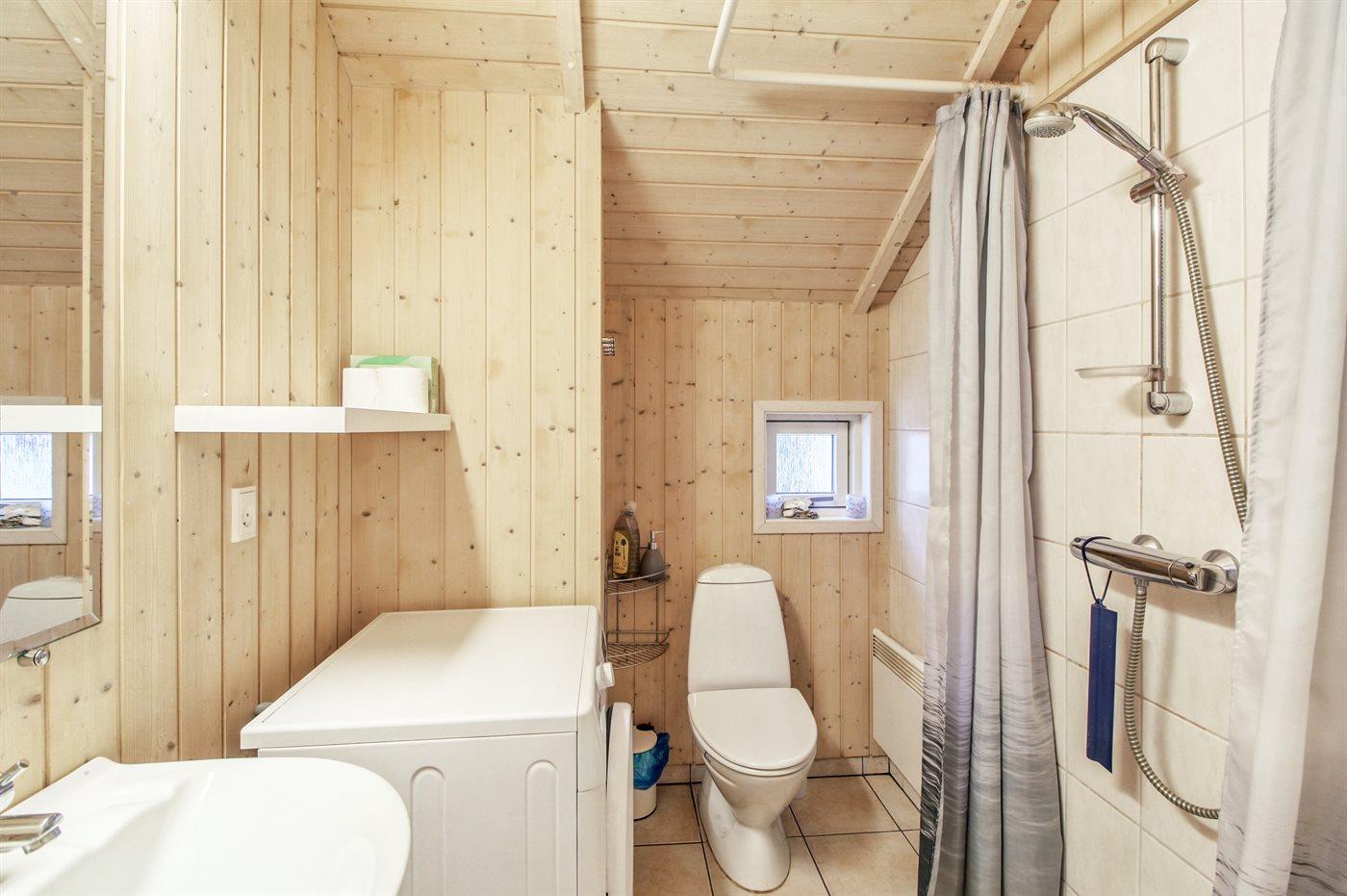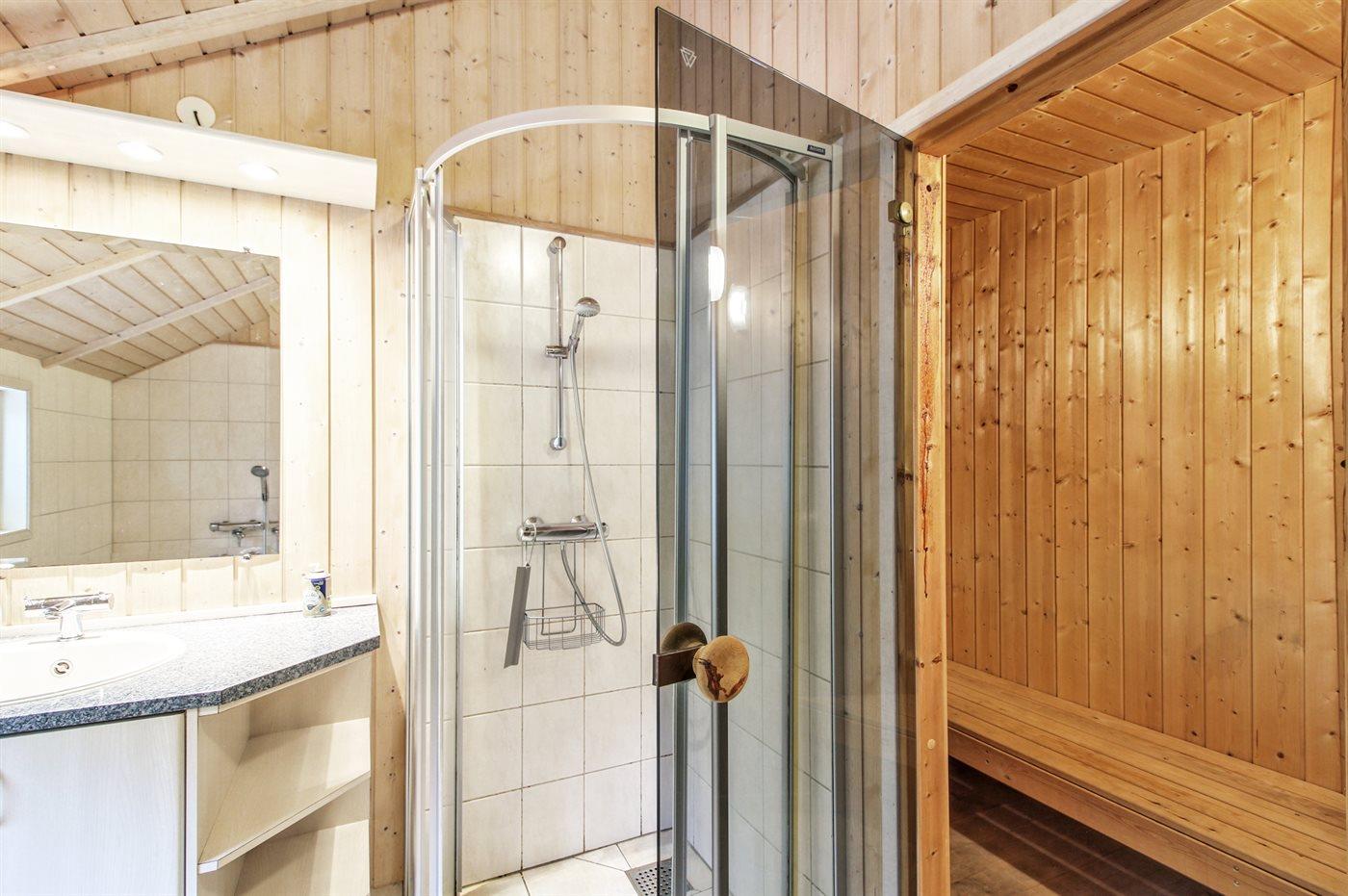 Der er 2 badeværelser med bruseniche og 2 toiletter. Der er gulvvarme på 1 badeværelse. I saunaen er der mulighed for afslapning.