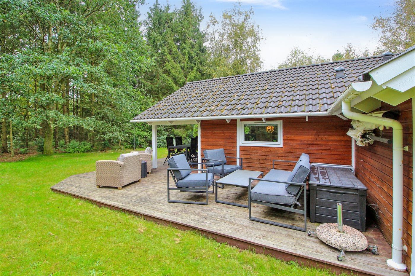 Dejligt sommerhus beliggende i naturskønne omgivelser i et skovområde med høje træer i den smukke midtjyske natur, tæt ved Rørbæk Sø og flere Put and Take fiskesøer.